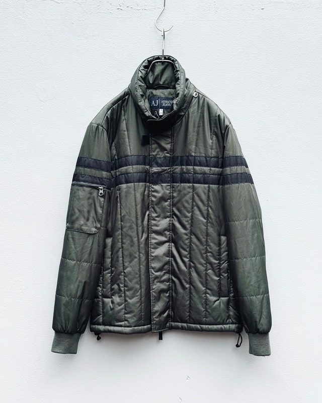 ARMANI JEANSらしい機能美が前面に出たラインデザインジャケット。 身頃と袖に走る配色ラインが全体を引き締め、スポーティさと都会的なムードを両立しています。 中綿入りのボディに、首元はボリュームのあるスタンドカラー仕様。 リブ付きの袖口、裾のドローコードなど、実用性を意識したディテールも的確です。 デザイン性と日常性のバランスが取れた、ARMANI JEANSらしい一着です◎ . 【size】 : USA XS (men's S・ladie's M程) shoulder width (肩幅) 45cm body width (身幅) 54cm sleeve length (袖丈) 65.5cm body length (着丈) 67cm 【material】 : polyester 【condition】 : 6 (10) 新品、未使用品、デッドストック (8)ダメージや汚れが見当たらない良好な状態 (6)多少の使用感のみの状態 (平均的な古着の状態) (4)一部にダメージや汚れが見受けられる状態 (2)全体的にダメージや汚れが見受けられる状態 . No.GH