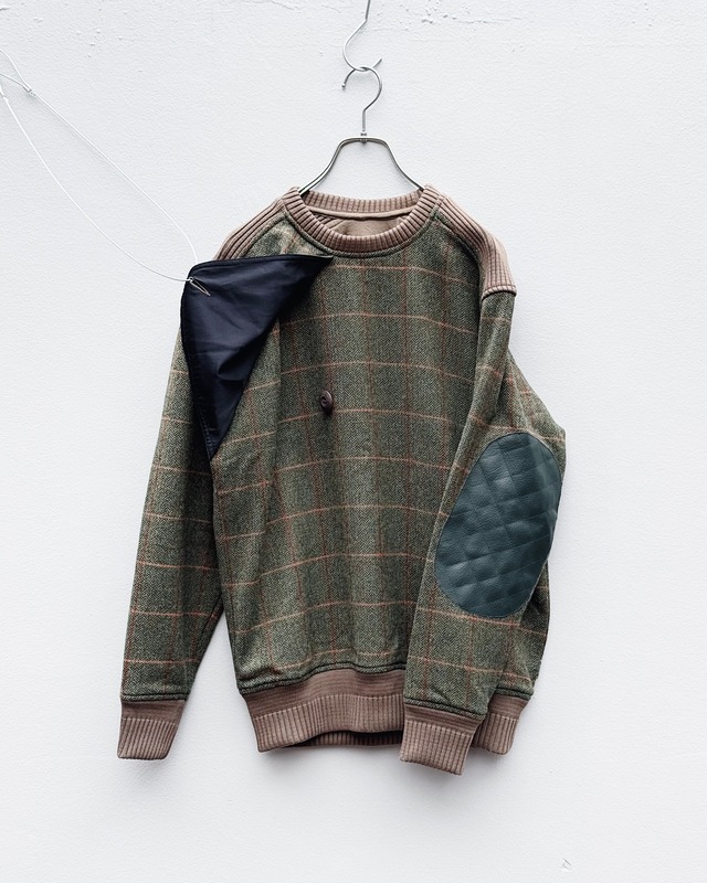英国老舗ファブリックメーカー〈MOON〉のツイードを用いた、maharishi別注プロダクト。 柔らかく奥行きのあるツイードとニットリブのスイッチングが、クラシックとミリタリーの境界を曖昧にする構成。 エルボーには大振りなレザーパッチを配置し、右肩にはガンパッチを思わせるディテールを付加。 素材・パターン・ディテール、そのすべてに両ブランドらしい思想が落とし込まれた一着。 スタイルの主軸としても、静かなアクセントとしても機能する完成度の高いプロダクトです◎ . 【size】 : S (men's S~M・ladie's L程 ) shoulder width (肩幅) 54cm body width (身幅) 58cm sleeve length (袖丈) 61cm body length (着丈) 69cm 【material】 : wool . 【condition】 : 8 (10) 新品、未使用品、デッドストック (8)ダメージや汚れが見当たらない良好な状態 (6)多少の使用感のみの状態 (平均的な古着の状態) (4)一部にダメージや汚れが見受けられる状態 (2)全体的にダメージや汚れが見受けられる状態 . No.GH