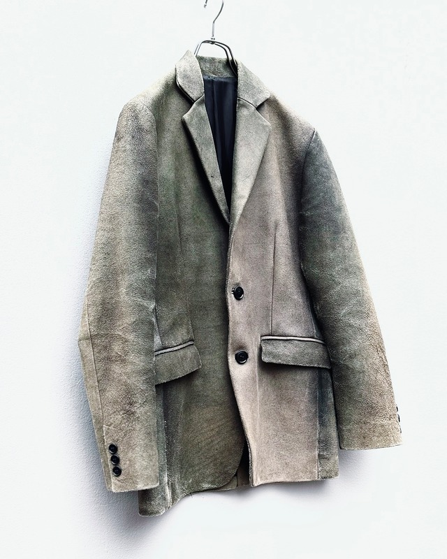 model 174cm ツギハギレザーによる独特の表情を持つ、パデッド仕様のテーラードジャケット。 ランダムなカッティングが生む立体的な陰影と、クラシックなテーラードの構造が交差する1着。 中綿入りでしっかりと防寒性を確保しつつ、軽量設計のためレザー特有の負荷が少なく、長時間の着用でもストレスを感じにくい点も特徴。 上品さと無骨さが同居する、冬場の主役アウターとして成立するアイテムです◎ . 【size】 : L (men's L~XL程) shoulder width (肩幅) 50cm body width (身幅) 63cm sleeve length (袖丈) 61cm body length (着丈) 79cm . 【material】 : leather . 【condition】 : 6 ※細かなスレ等の多少の使用感がございます。 (10) 新品、未使用品、デッドストック (8)ダメージや汚れが見当たらない良好な状態 (6)多少の使用感のみの状態 (平均的な古着の状態) (4)一部にダメージや汚れが見受けられる状態 (2)全体的にダメージや汚れが見受けられる状態 . No.FM