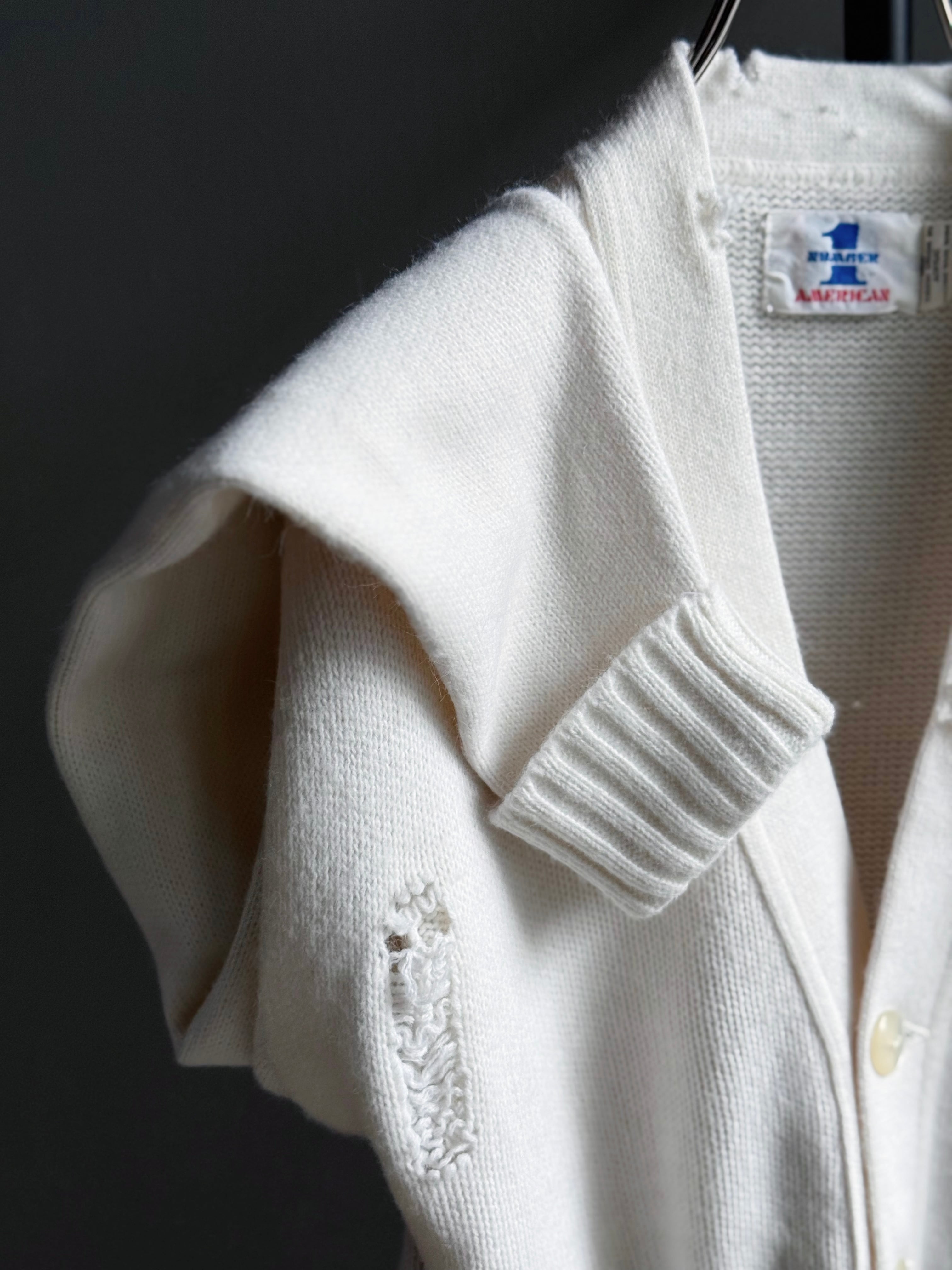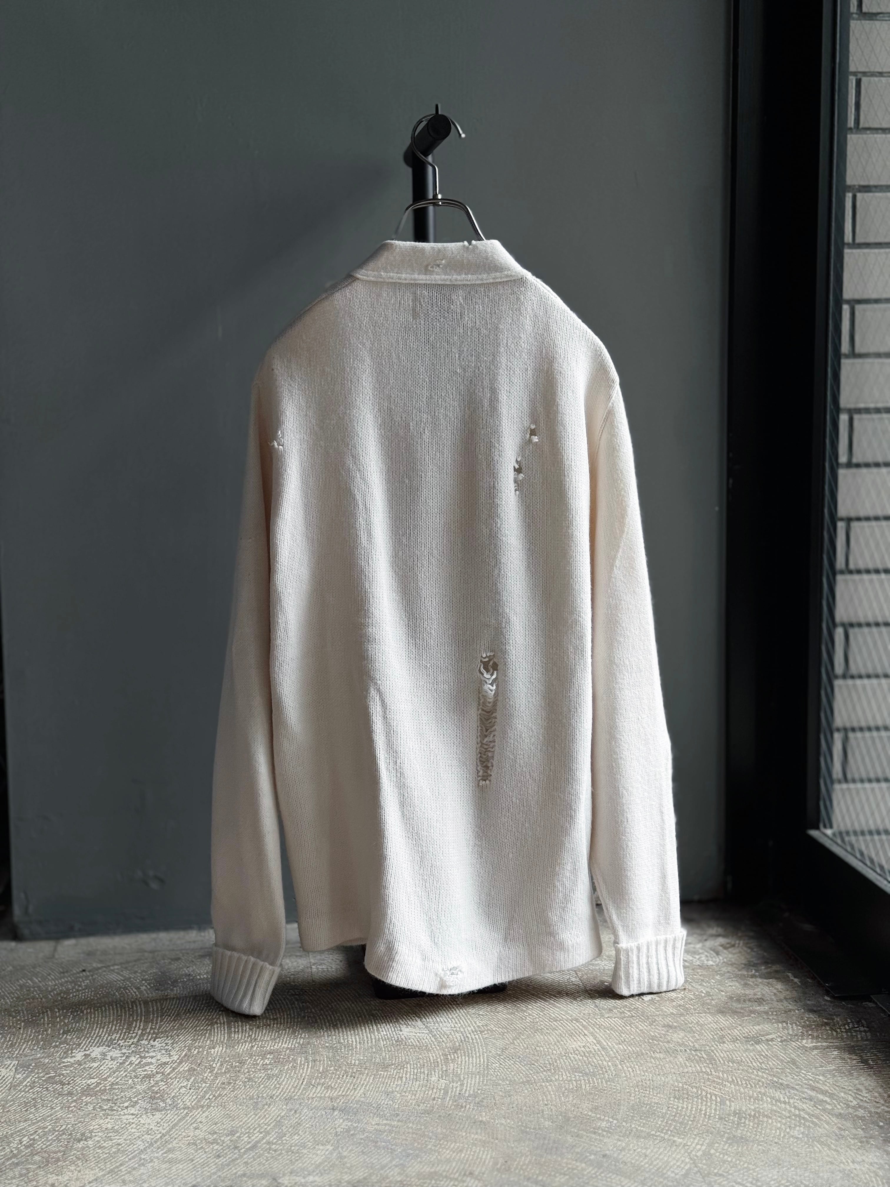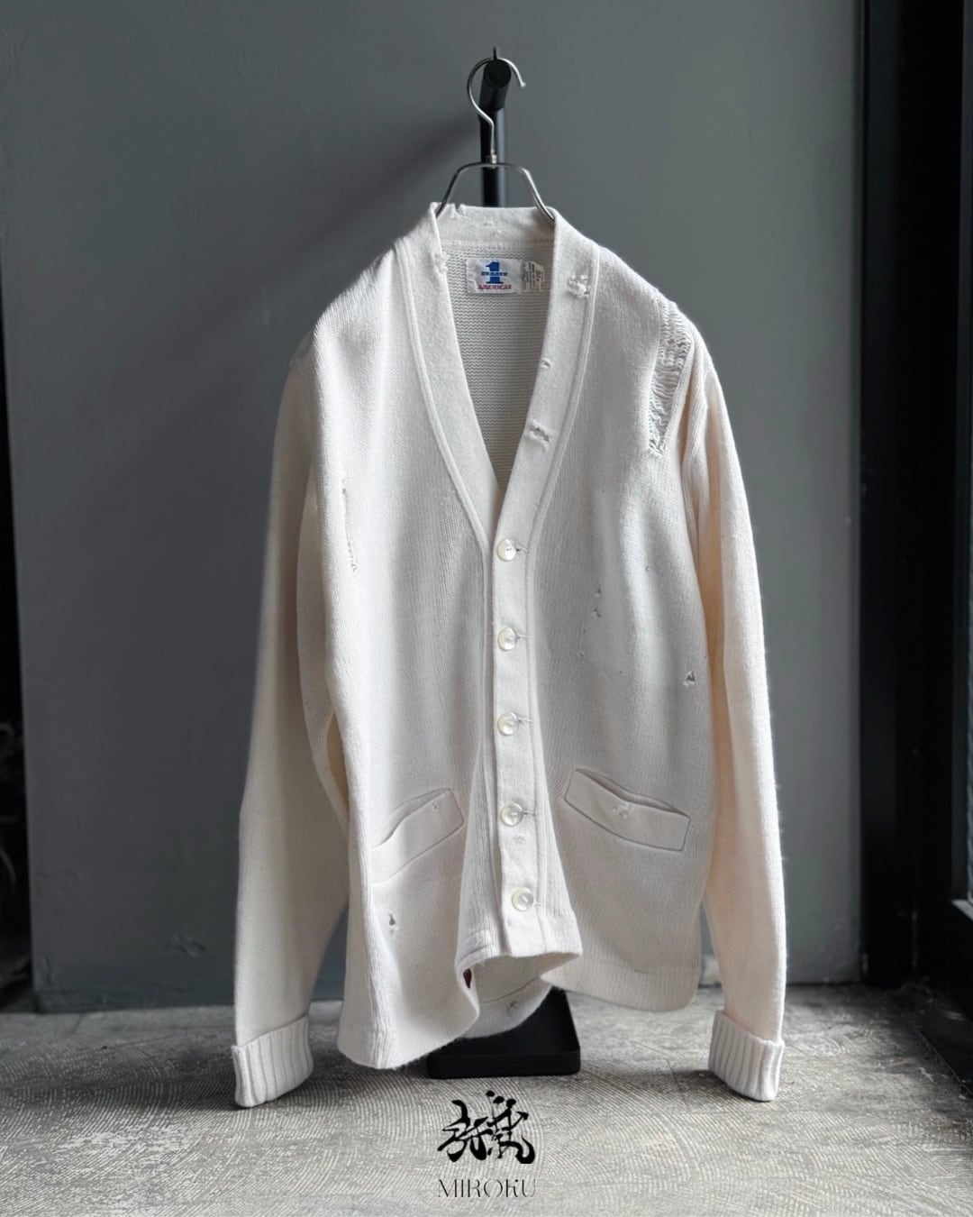 ダメージ加減とワッペン剥がれの廃退的な雰囲気と純白で清楚なイメージが絶妙なマッチング。