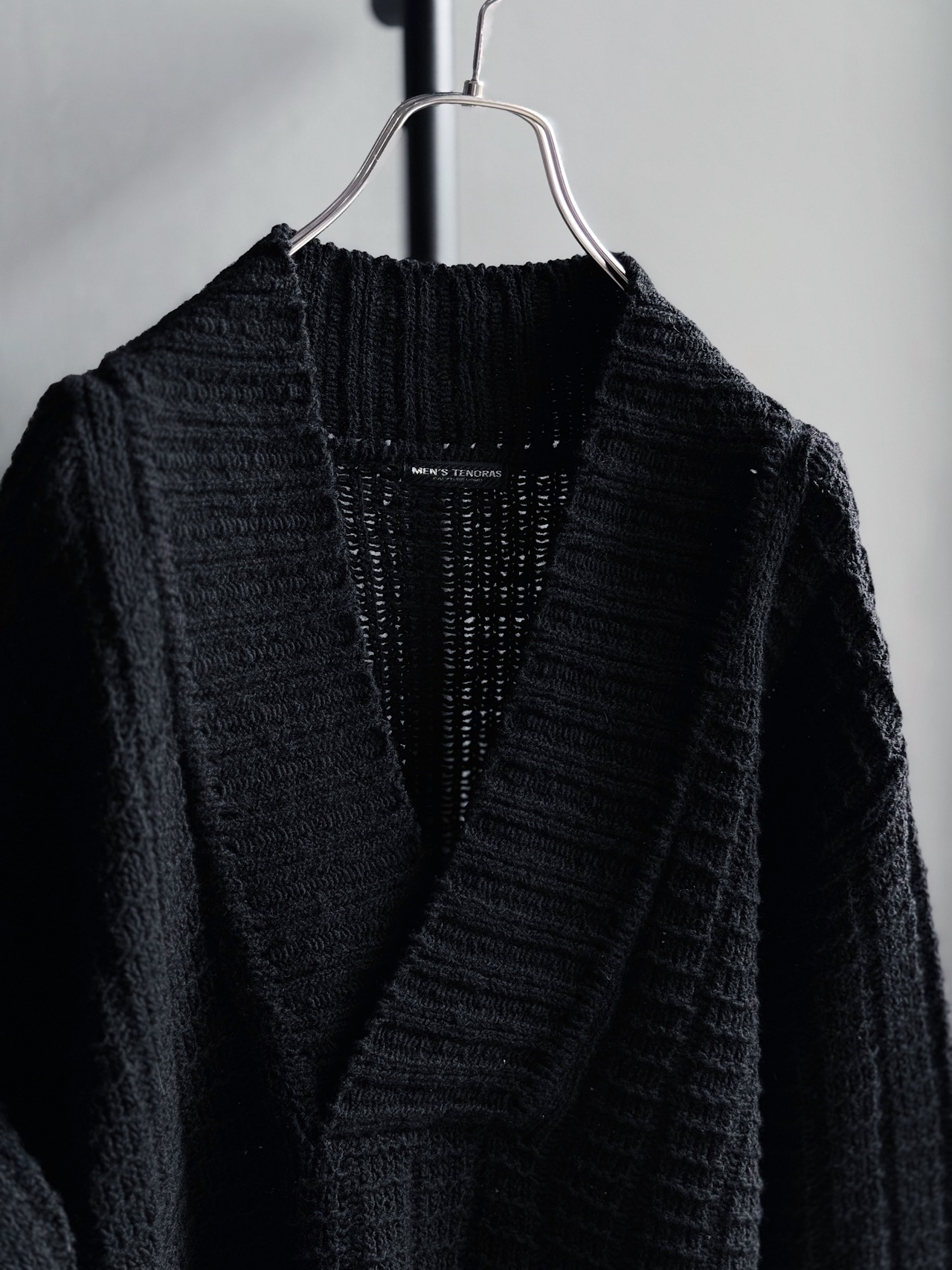 独特な編み地とどこか和なテイストを感じる深めかつワイドなリブのVネックタイプ。