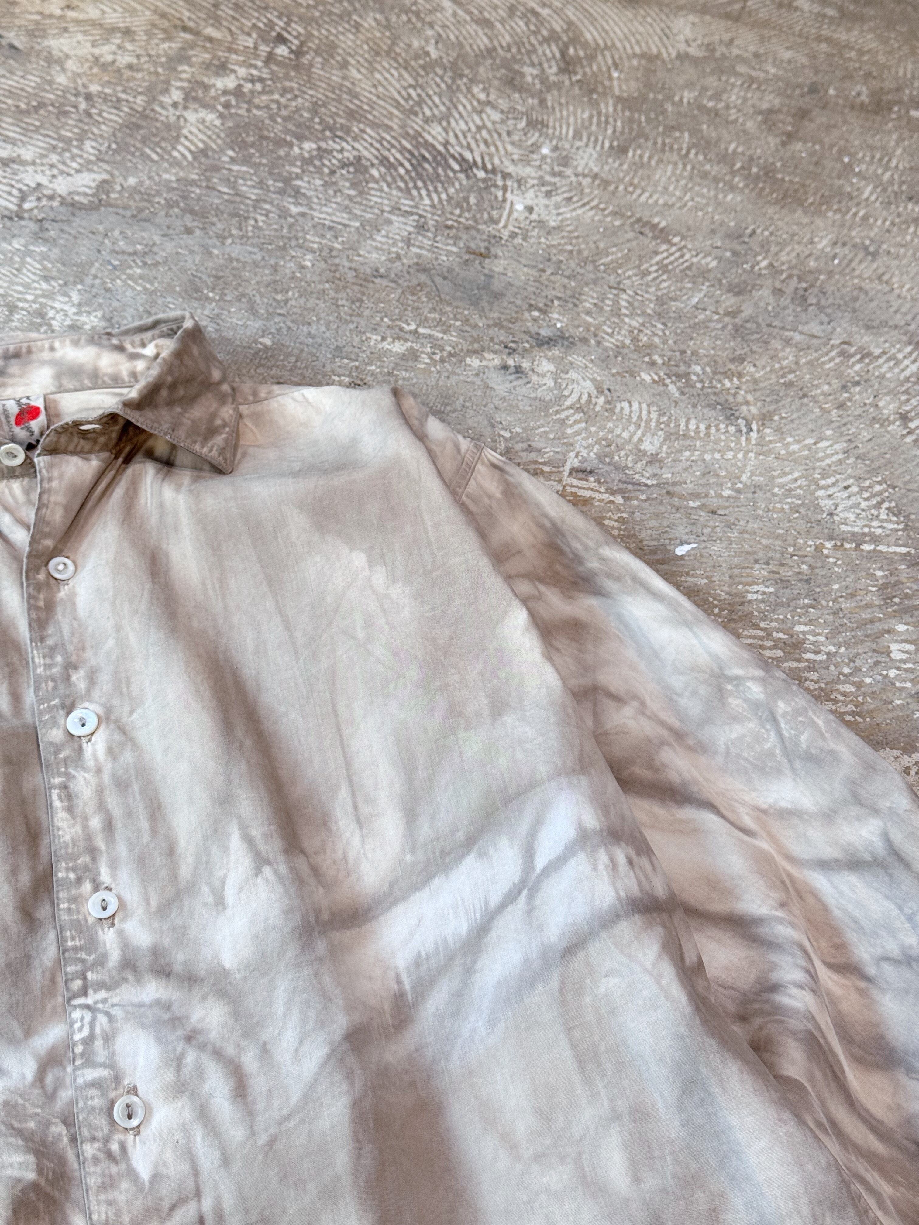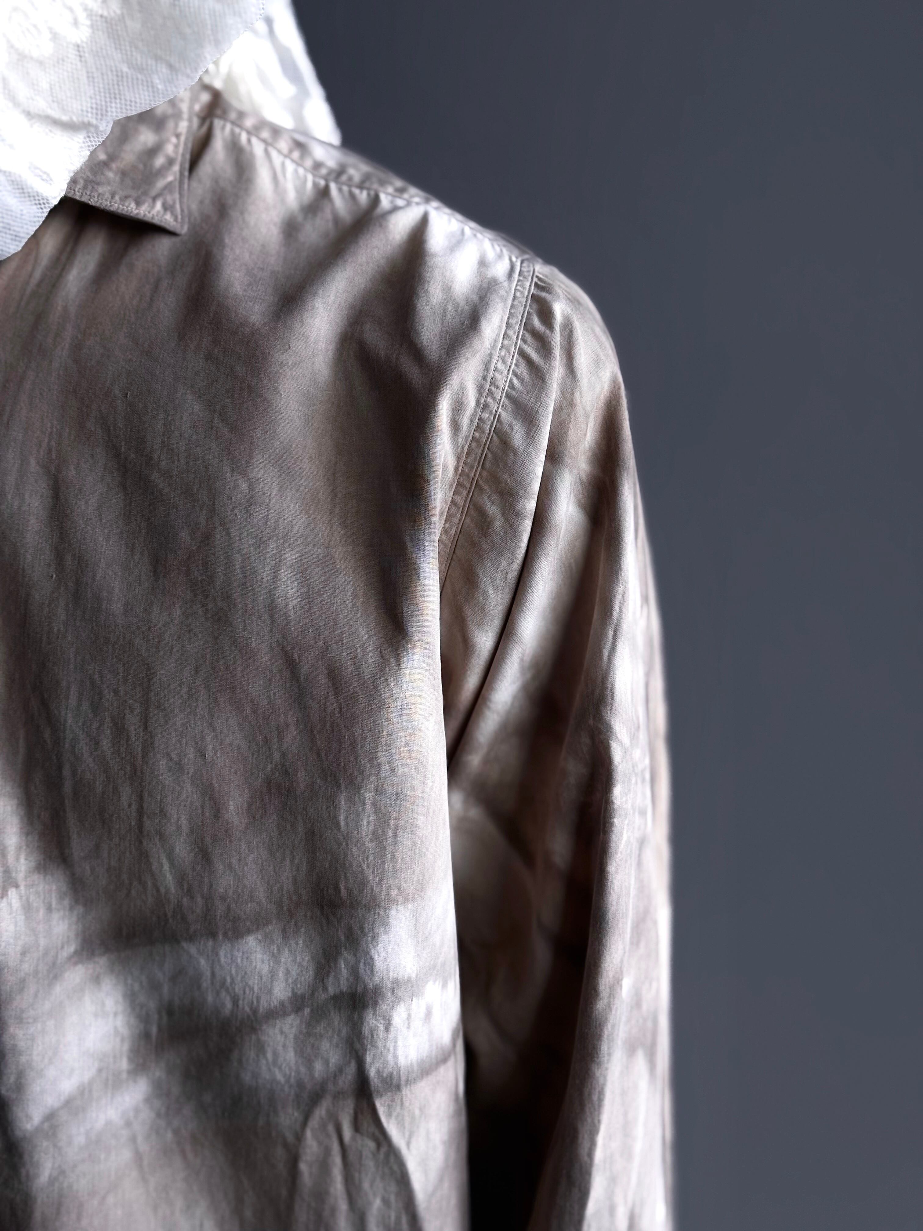 シャリ感のあるコットン地に、経年によるフェードと泥染め特有のムラが溶け合い、絶妙な表情に。