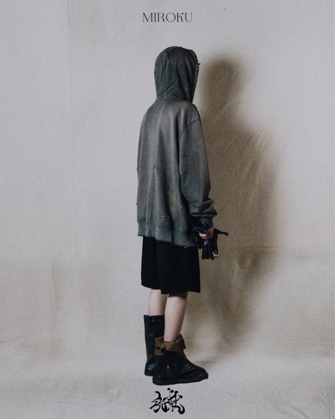 厚手のラバー素材による防水性・耐久性を備え、側面にはレースアップのディテールを採用。