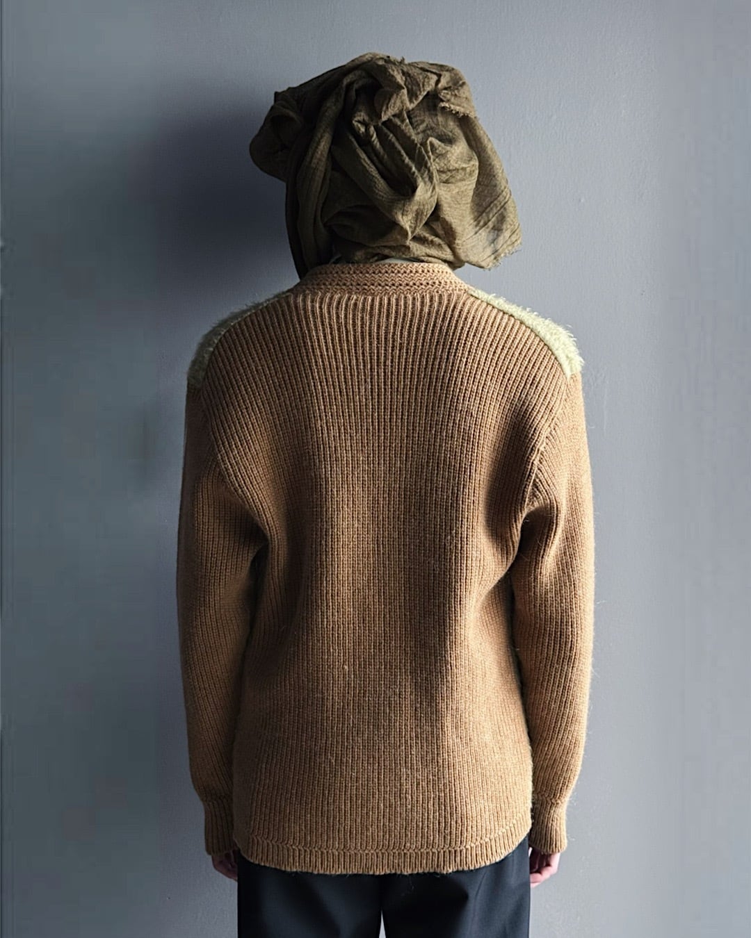 フロントには毛足の長い上質モヘアを、スリーブと背面には肉厚なウールニットを使用した切り替えデザイン。