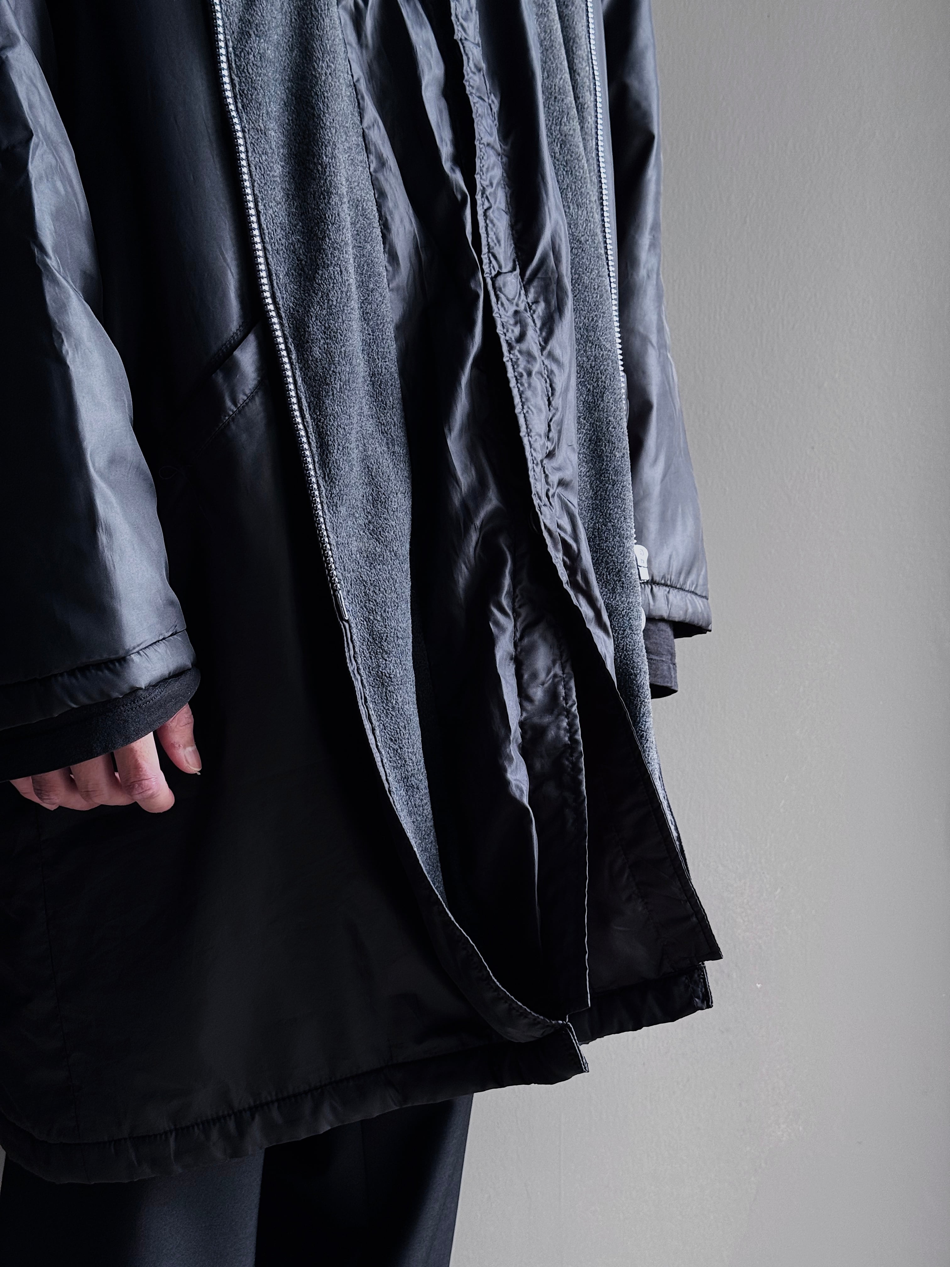 フロントジップを開けると、内側にはスナップボタン式のレイヤードデザインが施されており、機能性とデザイン性を兼ね備えております。