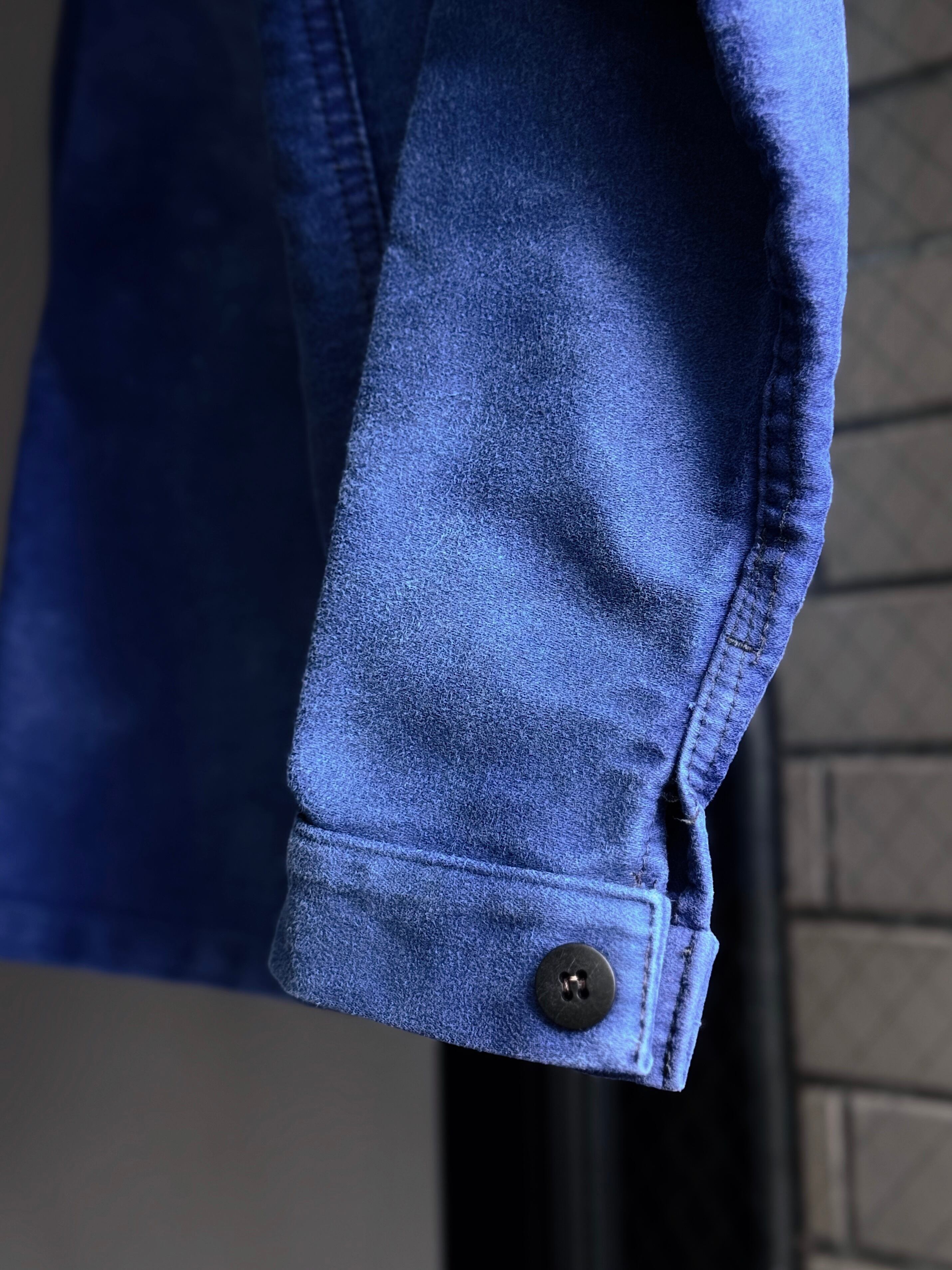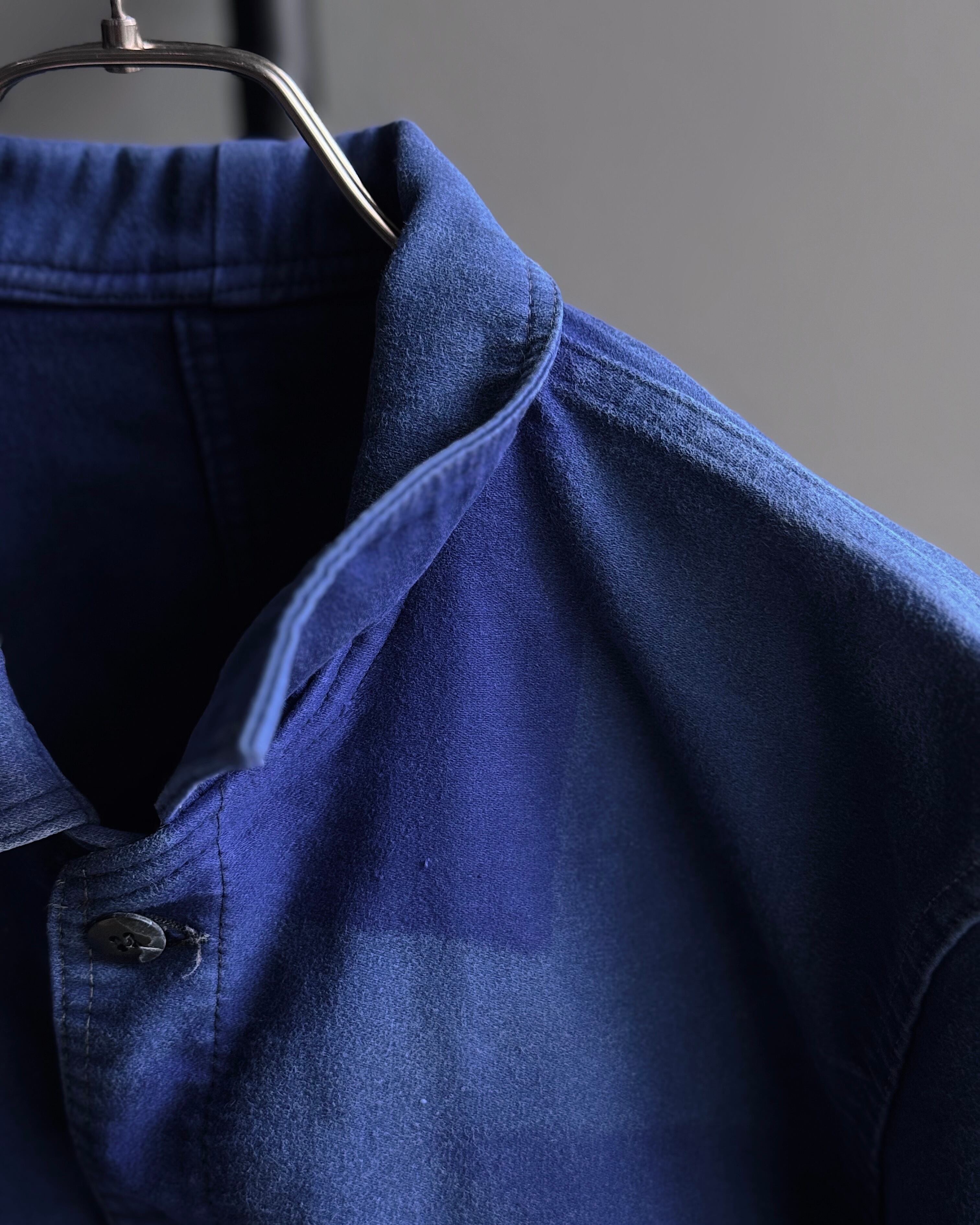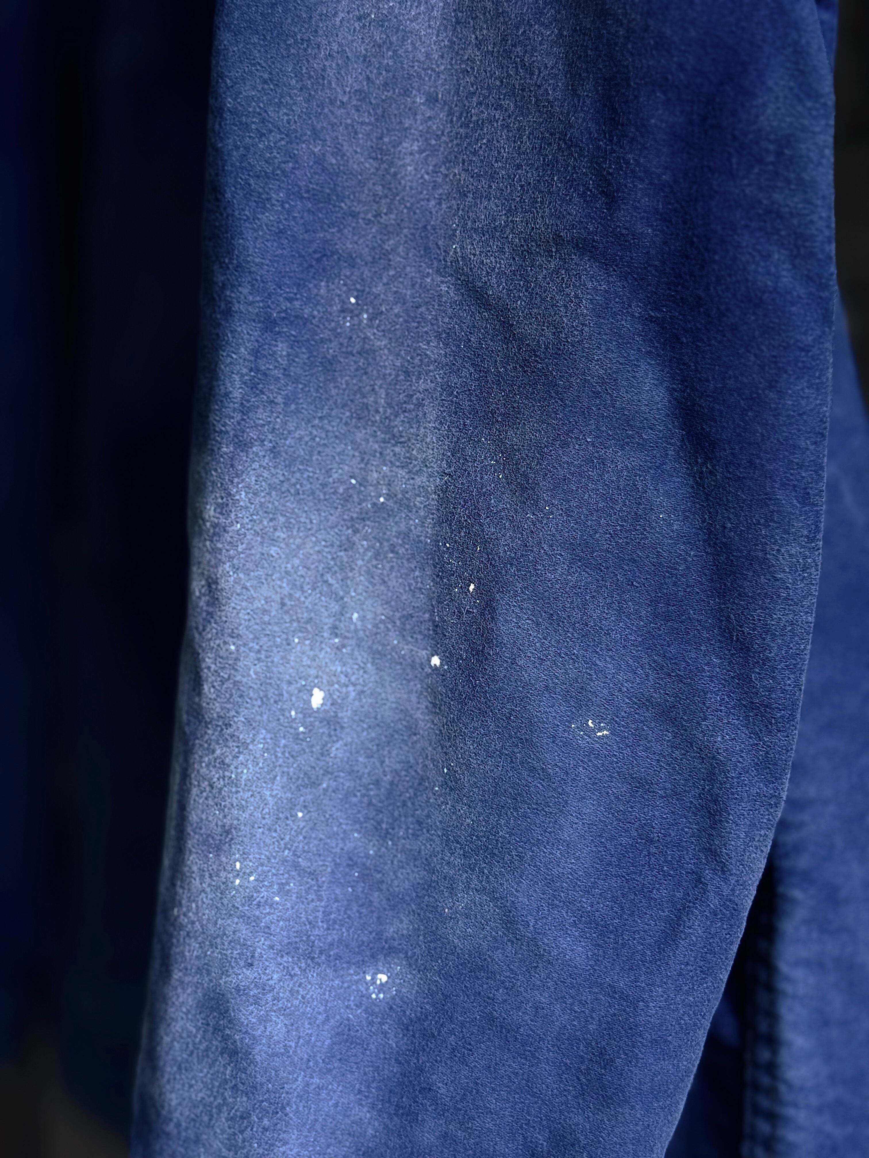 ピグメント染めのような美しいムラ感と、経年による色落ちが味わい深い一着。