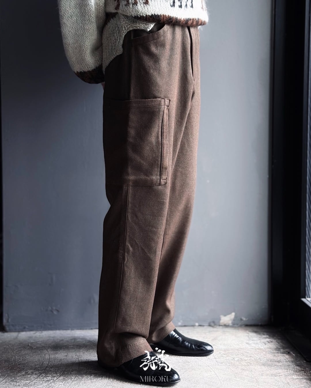 奥行きのあるあるブラウンカラーが印象的なウールワークパンツ。