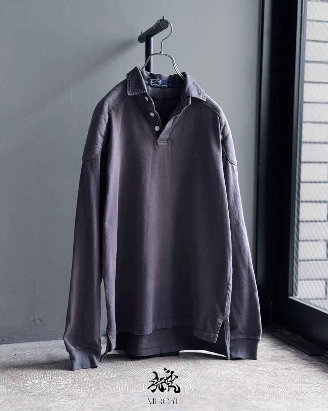 クラシックなラガーシャツをベースに、ショルダーとエルボー部分にパディング切り替えを施したフェード感とアタリの風合いが絶妙な一枚。