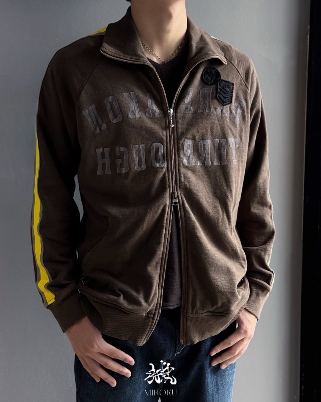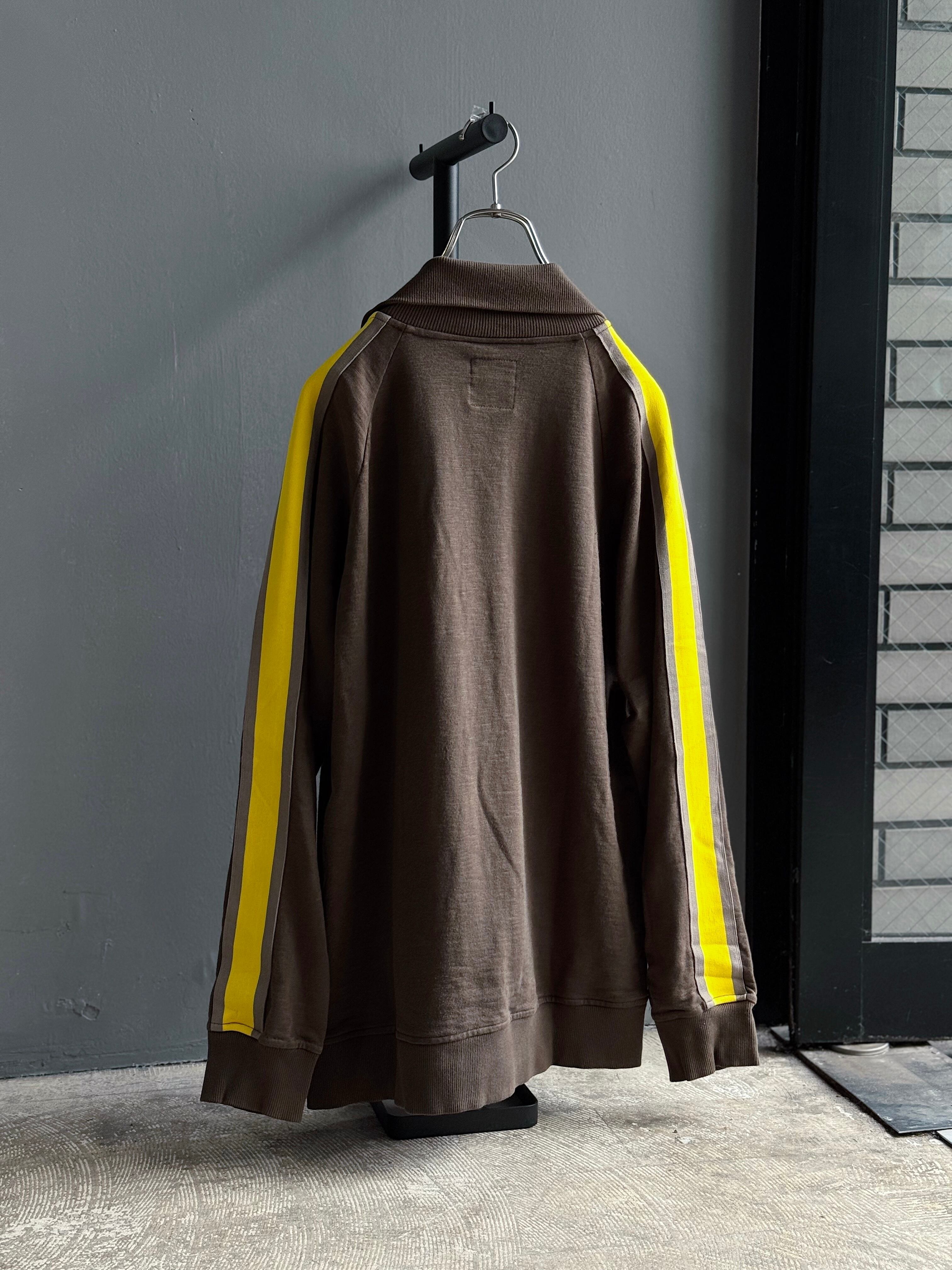軽やかなブラウンボディに、イエロー×グレーストライプが映えるトラックジャケット。