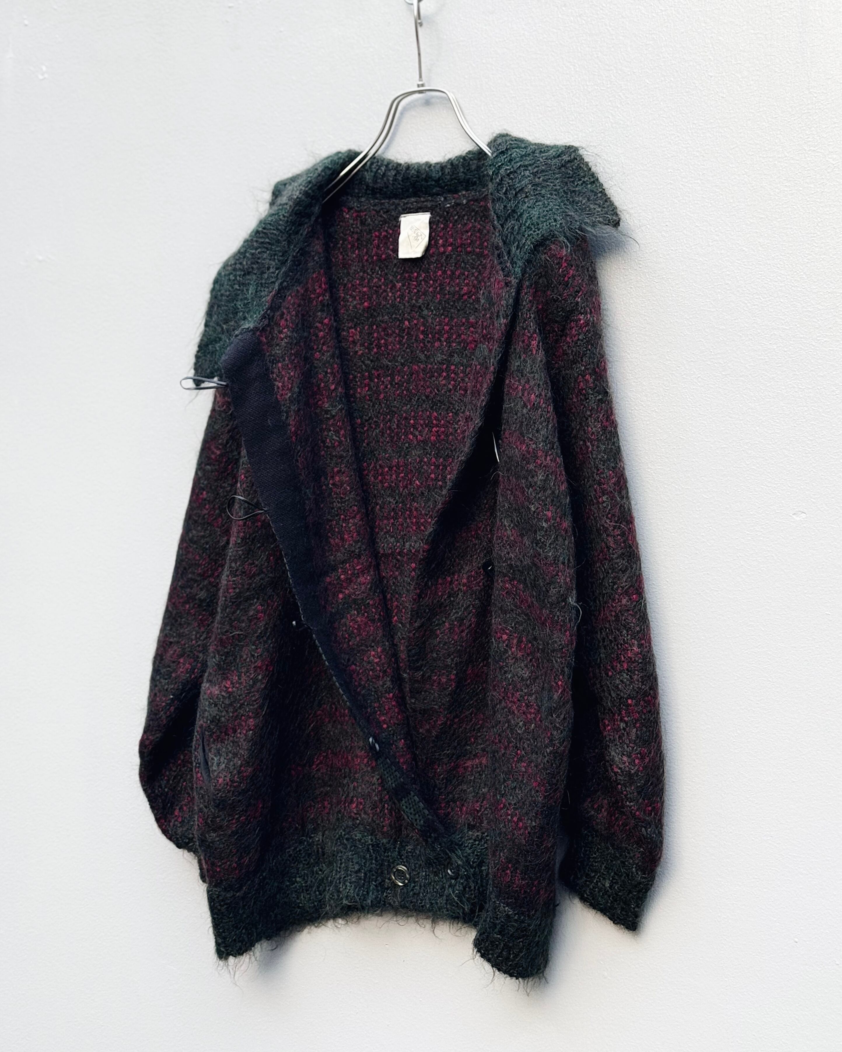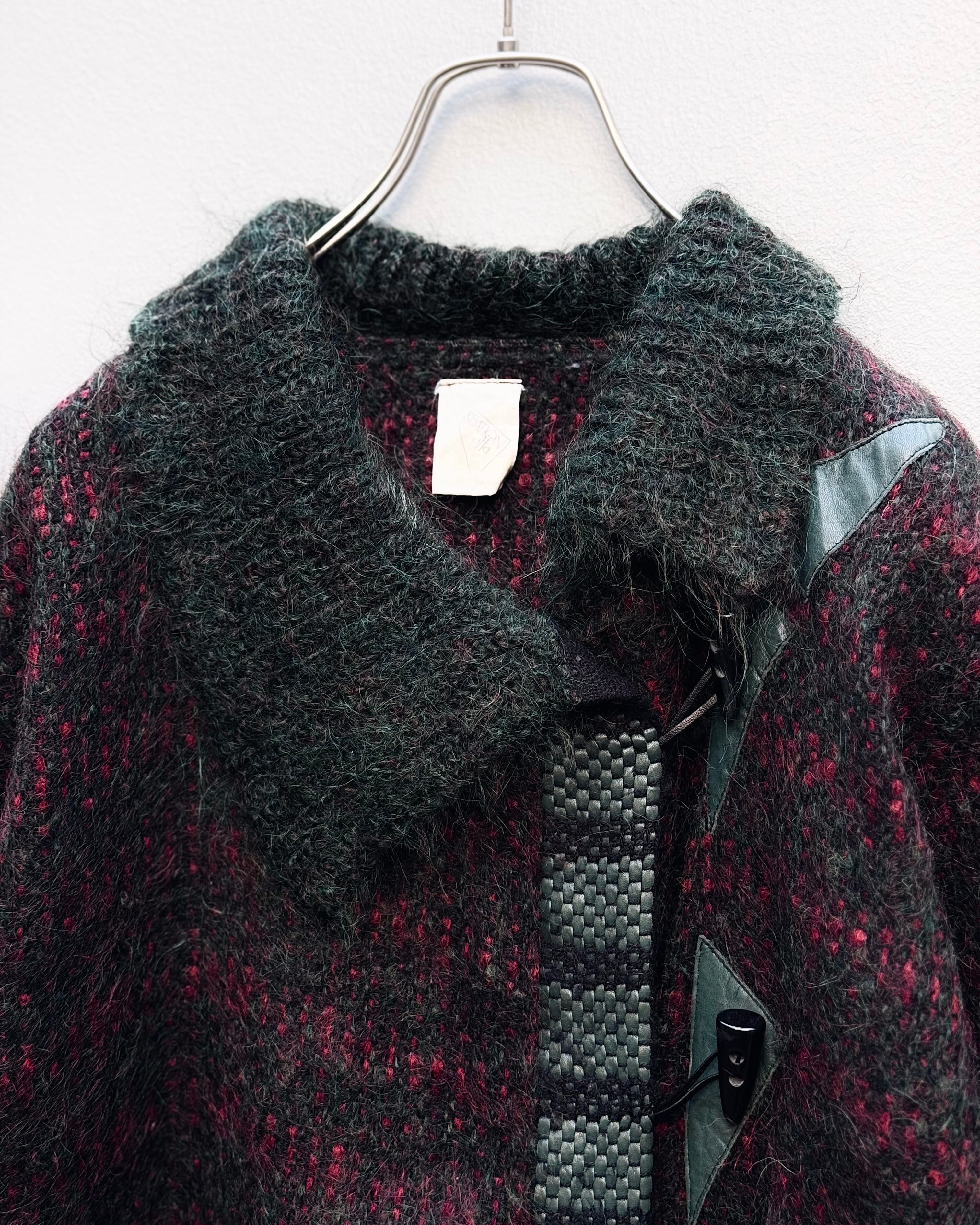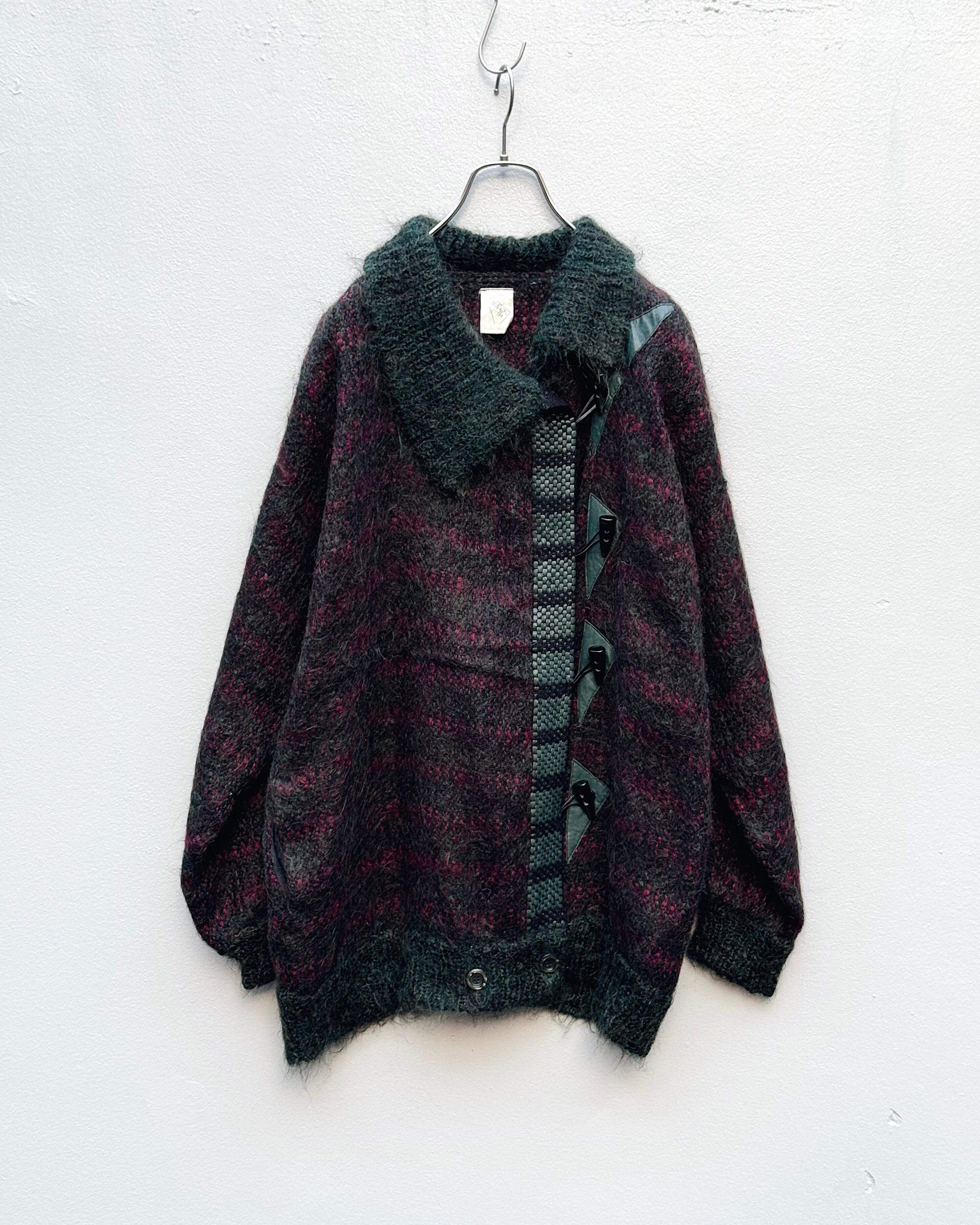 70's mohair × leather toggle type cardigan