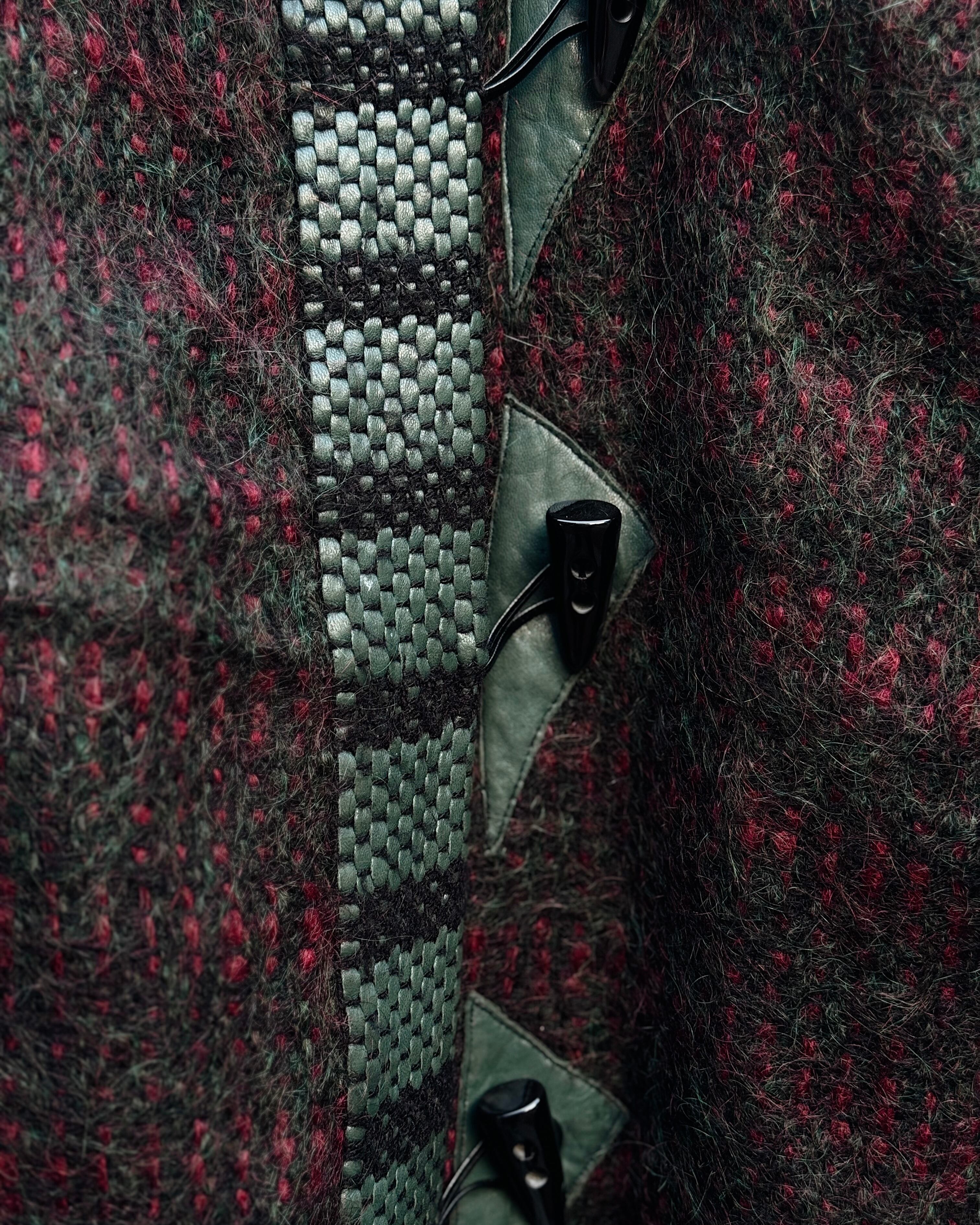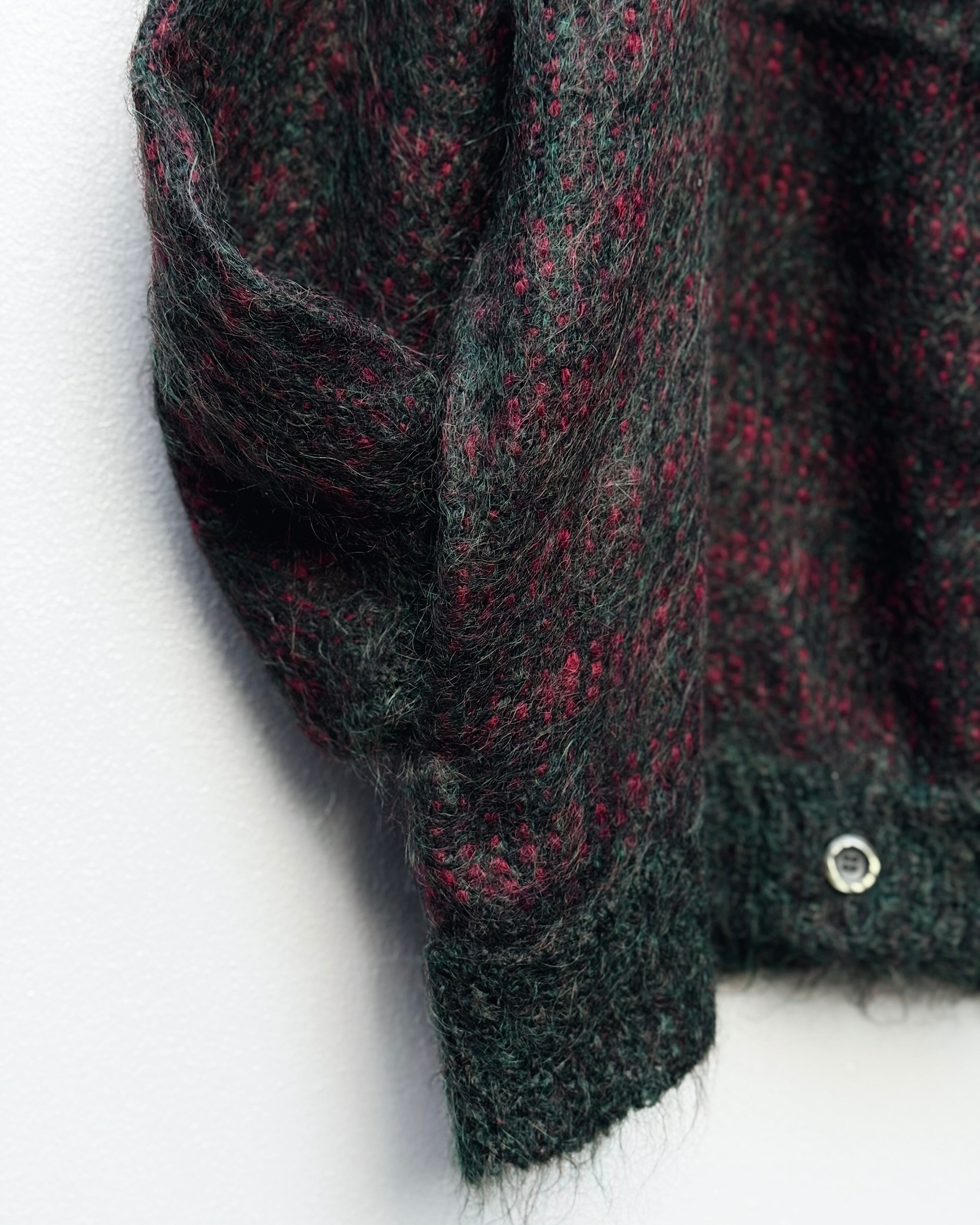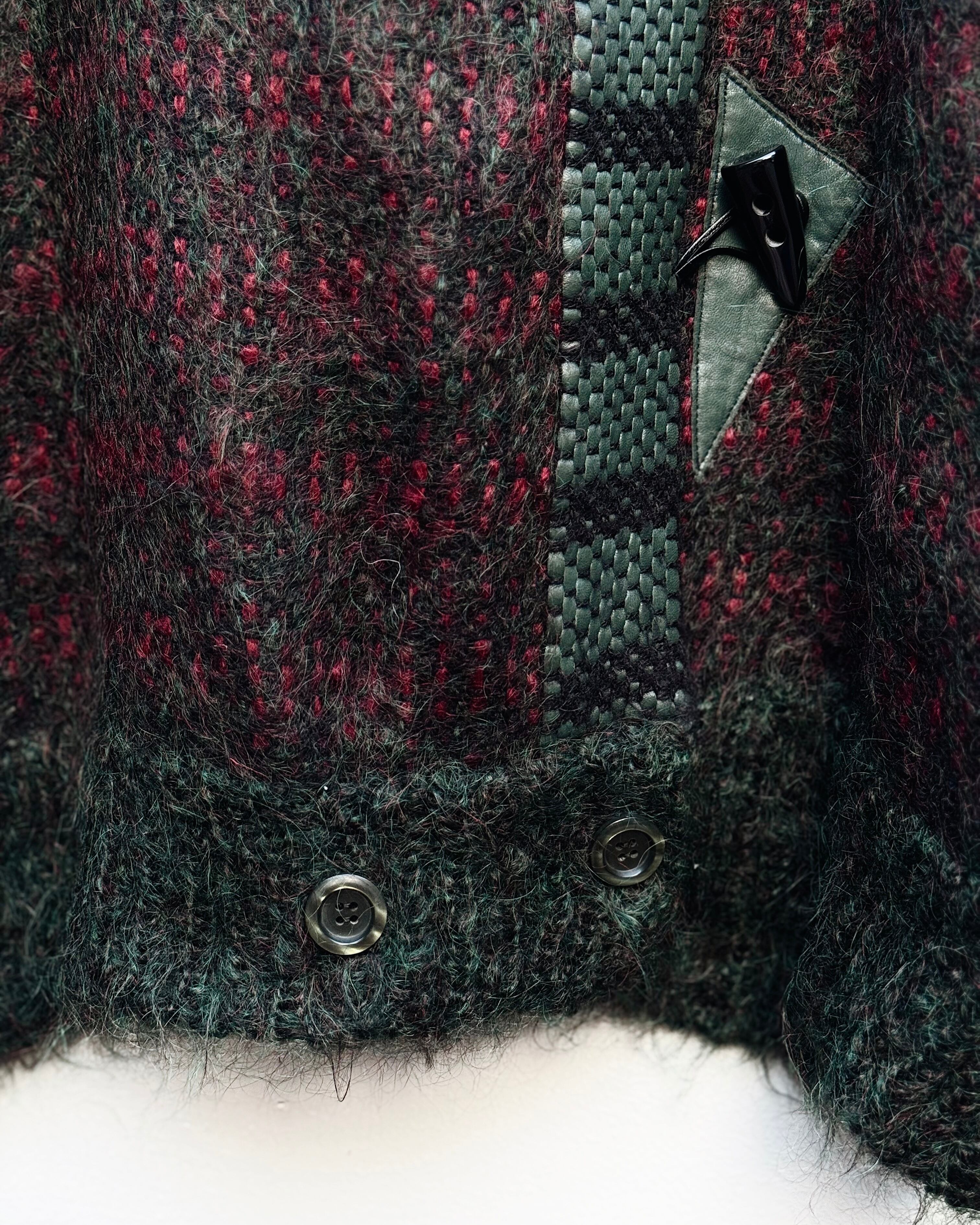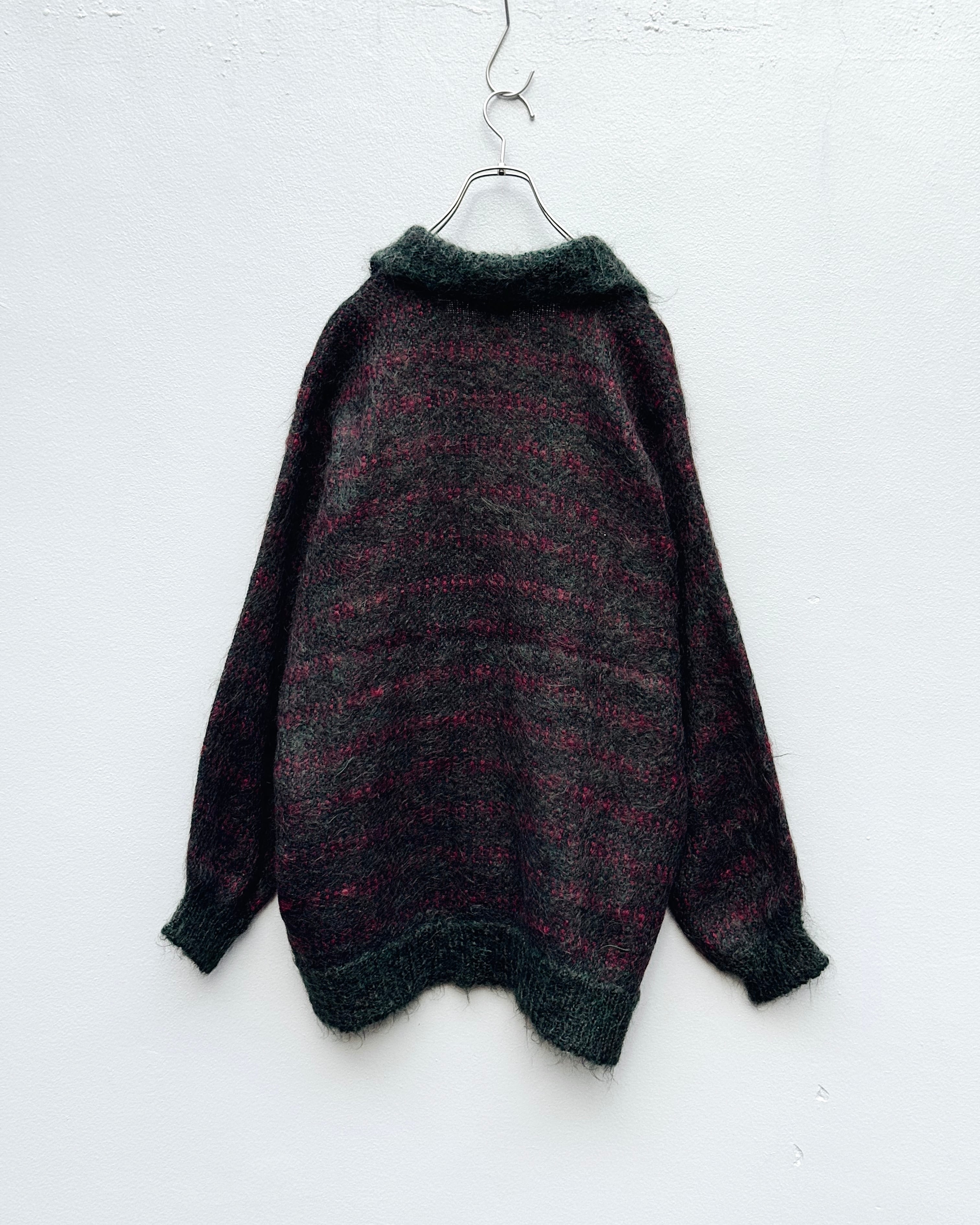 70's mohair × leather toggle type cardigan