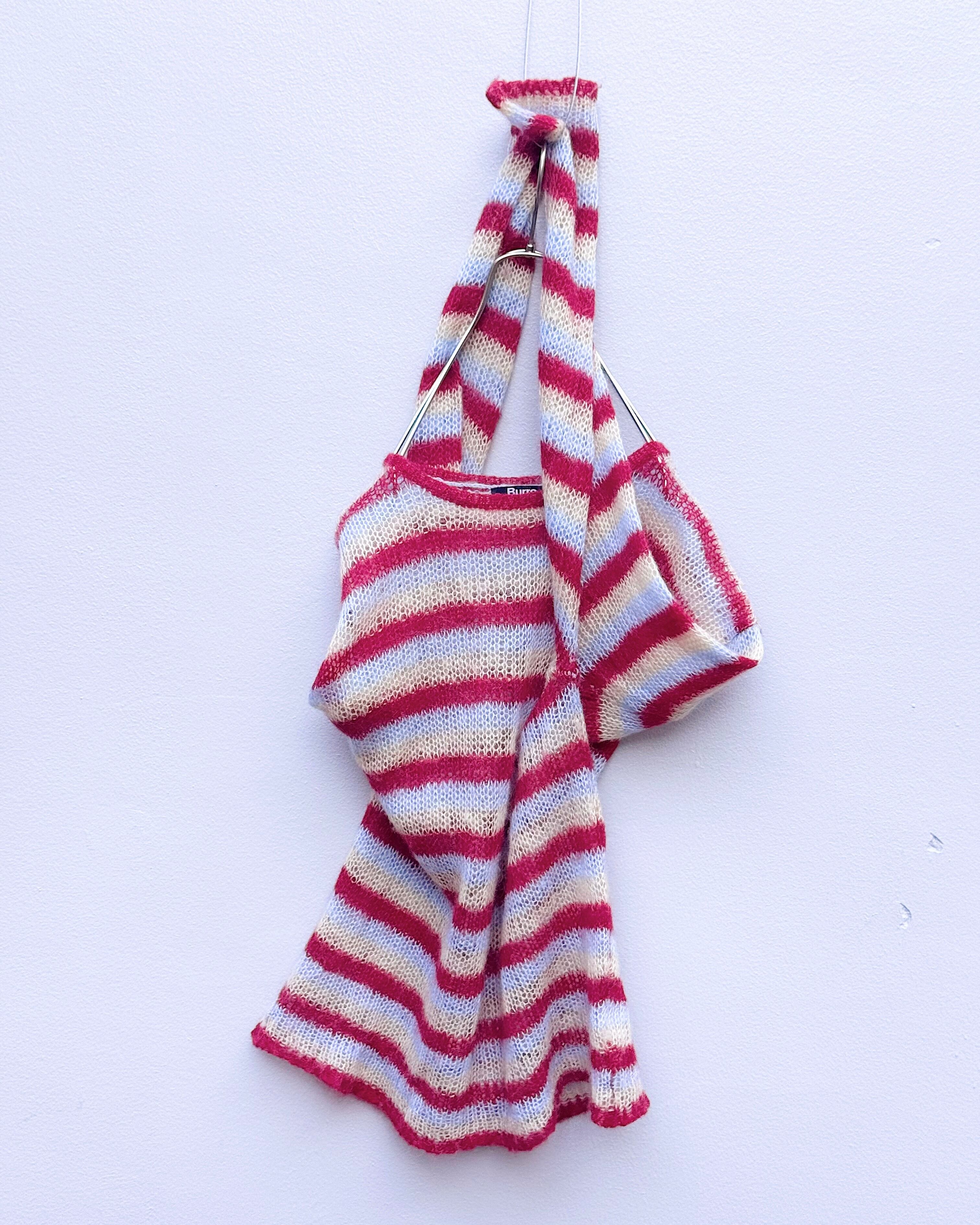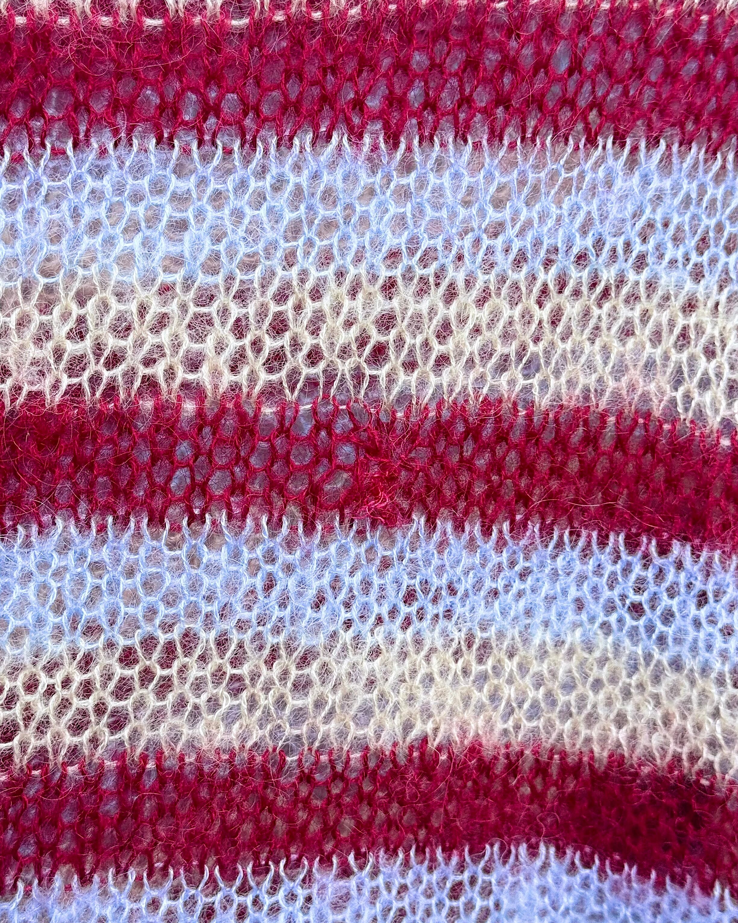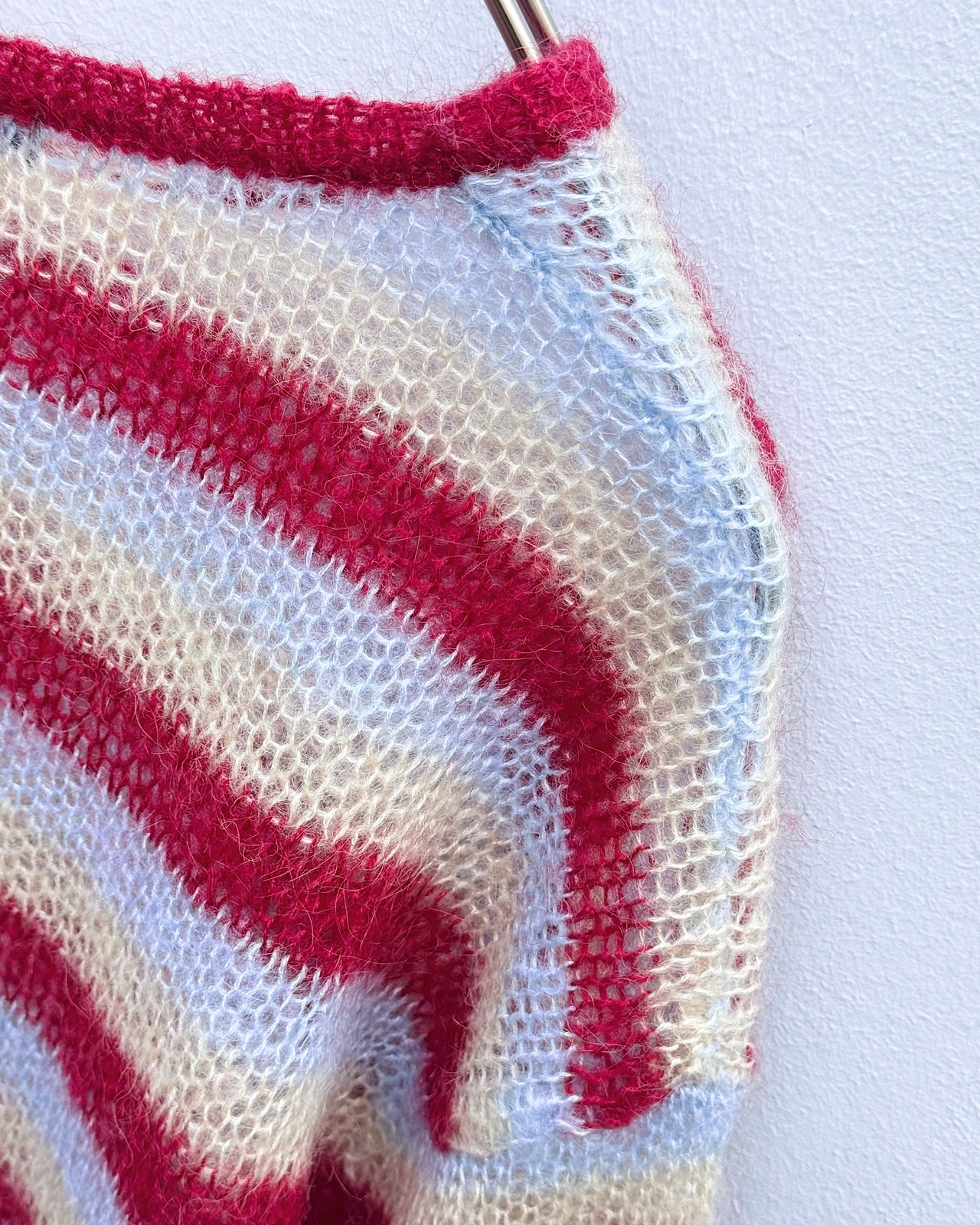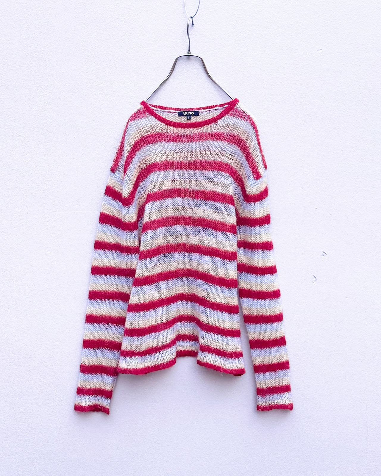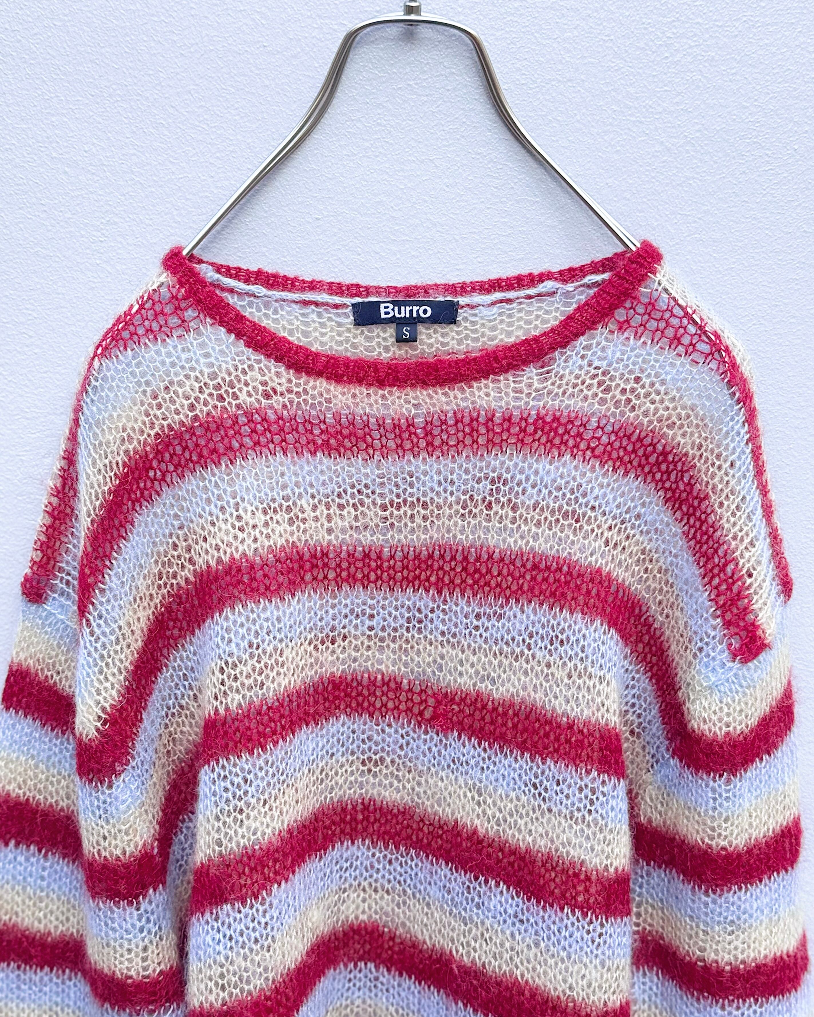 ローゲージで編まれたマルチカラーボーダーモヘアニット。