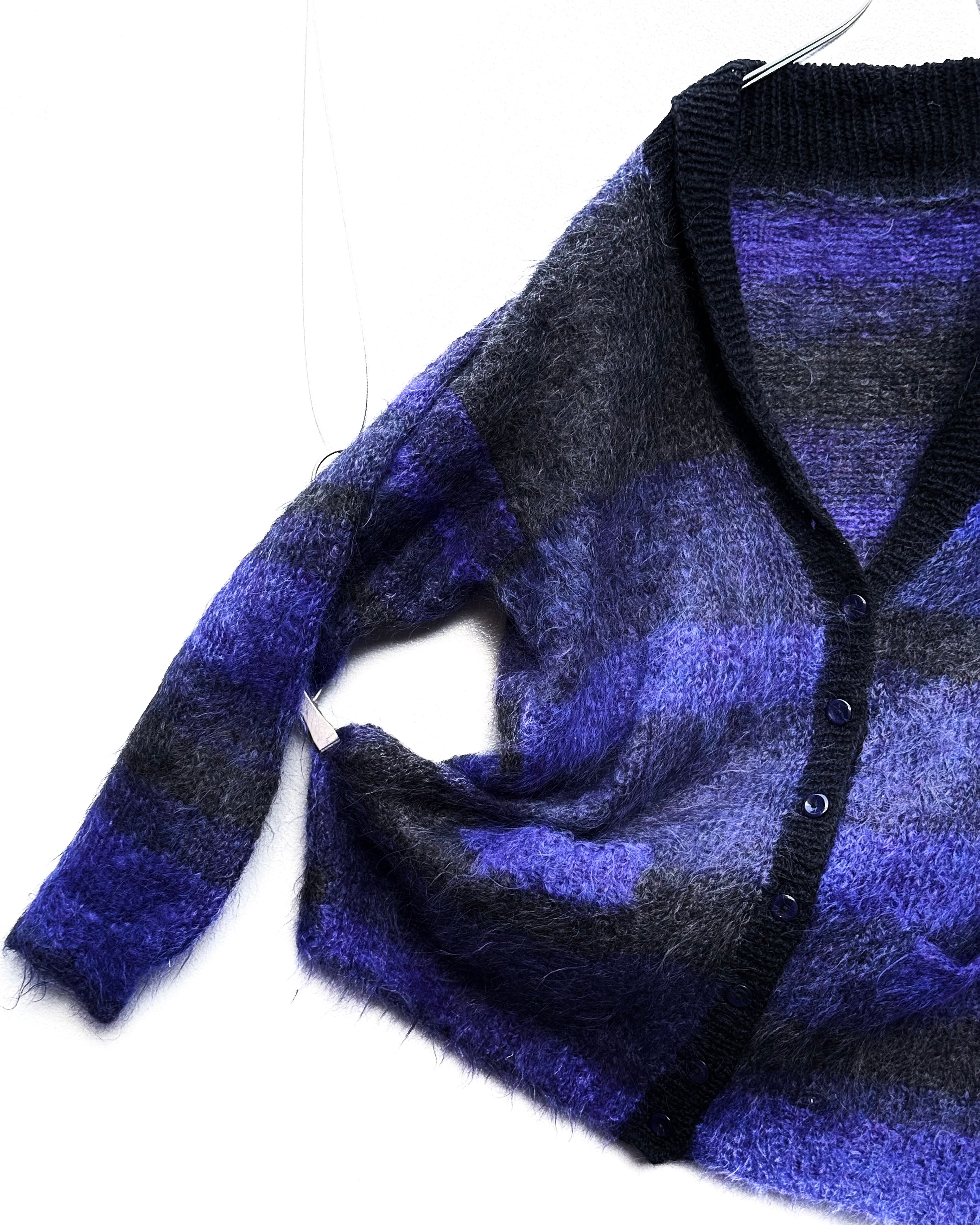 色使い、毛足の表情、サイズ感、いずれも完成度が高く、スタイリングの主役として成立するモヘアカーディガンです◎