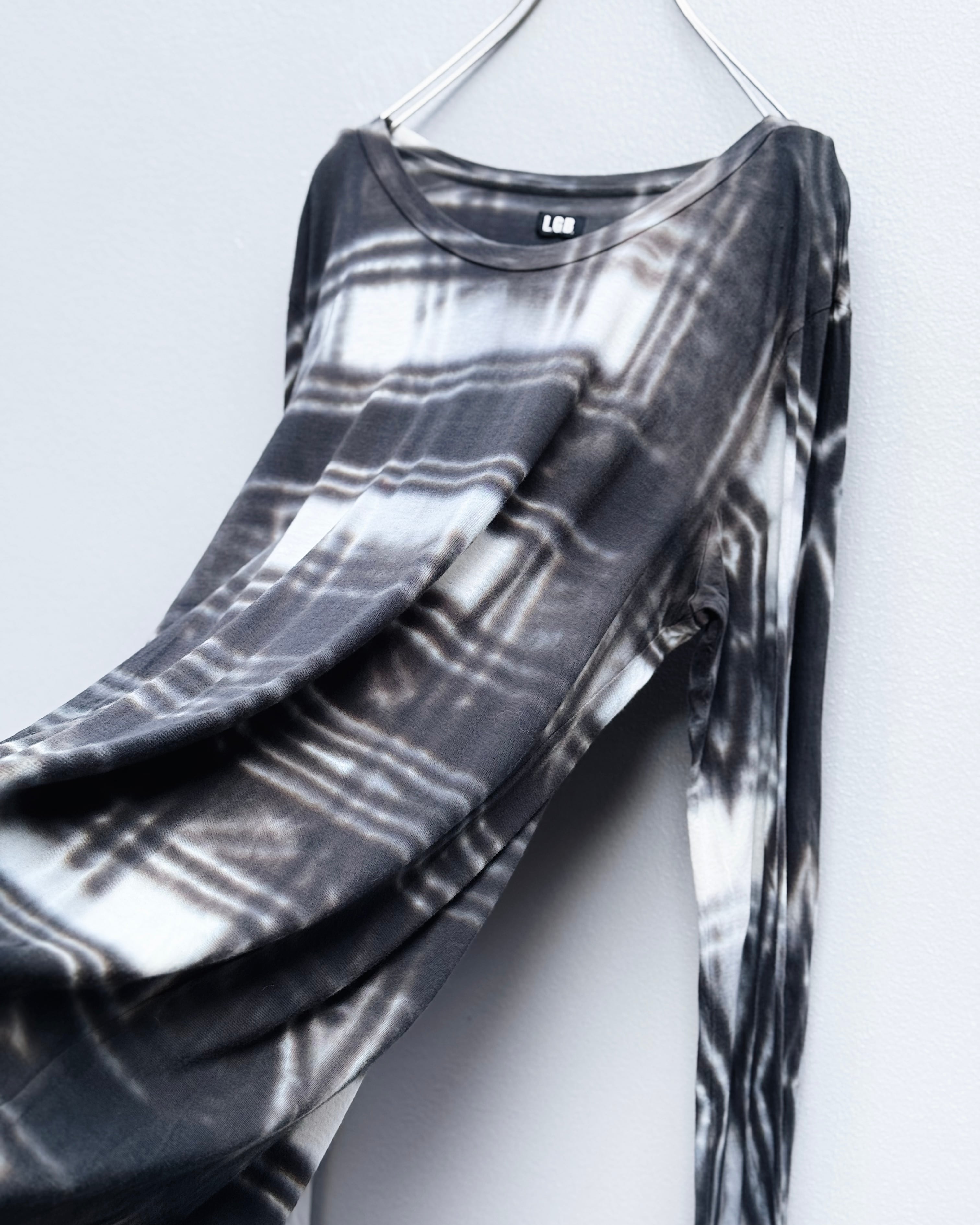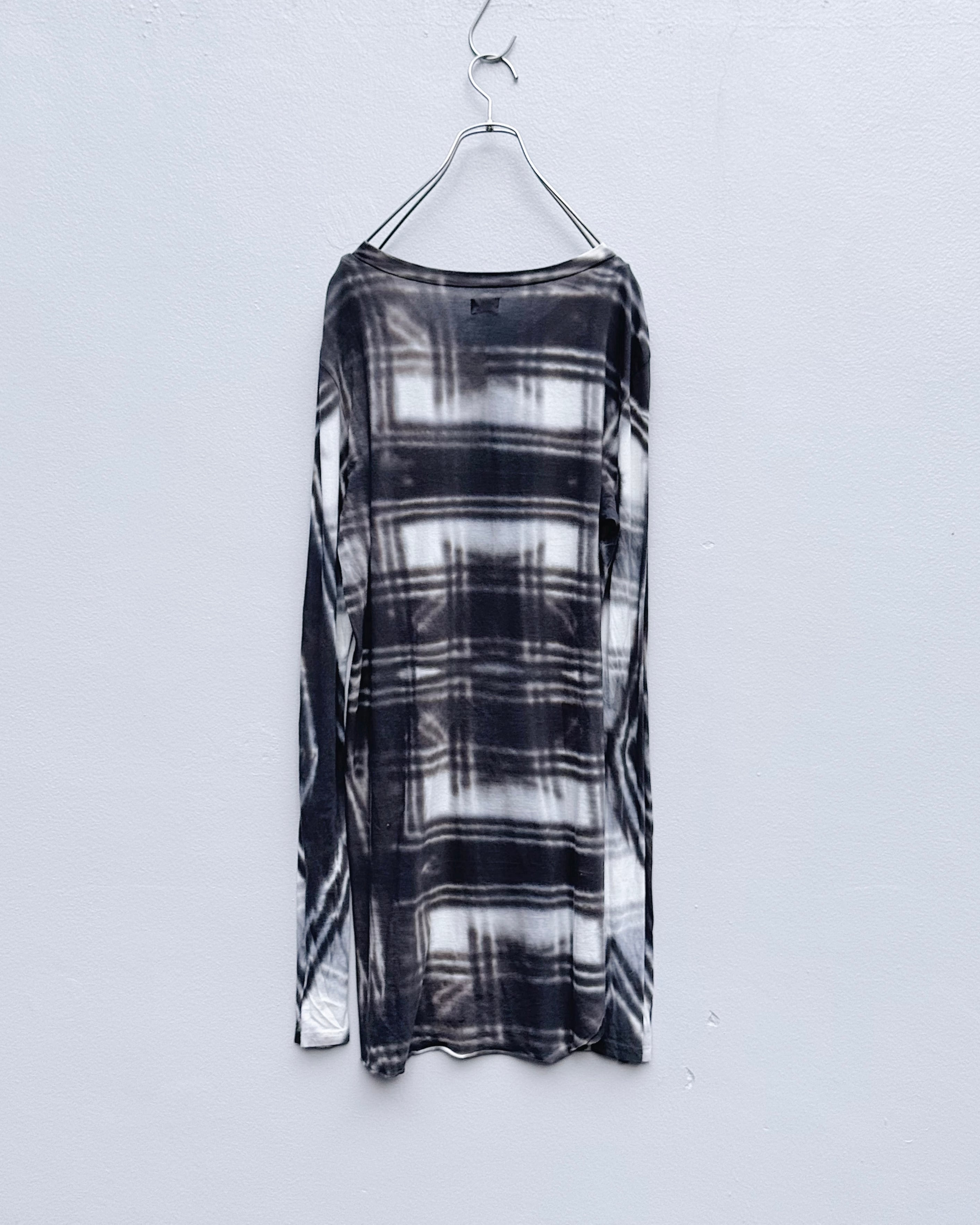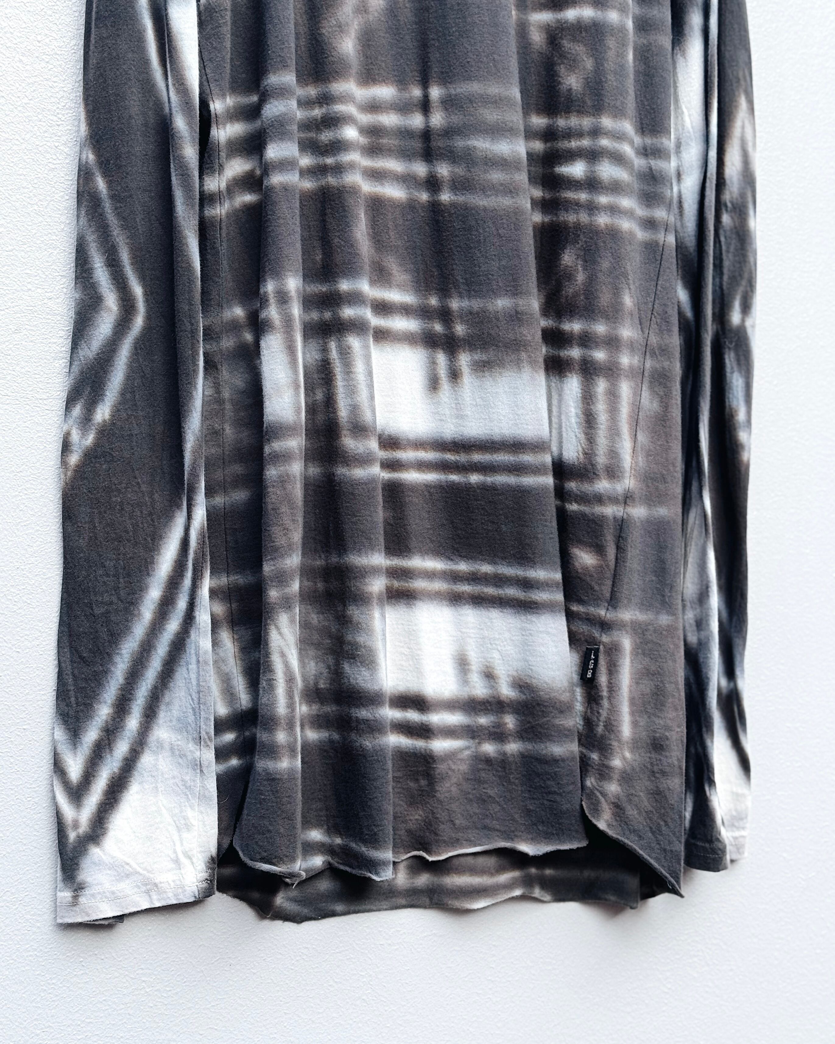 チェックを思わせる抽象的なグラフィックは、柄として主張しすぎず、レイヤード時に奥行きを生む設計。