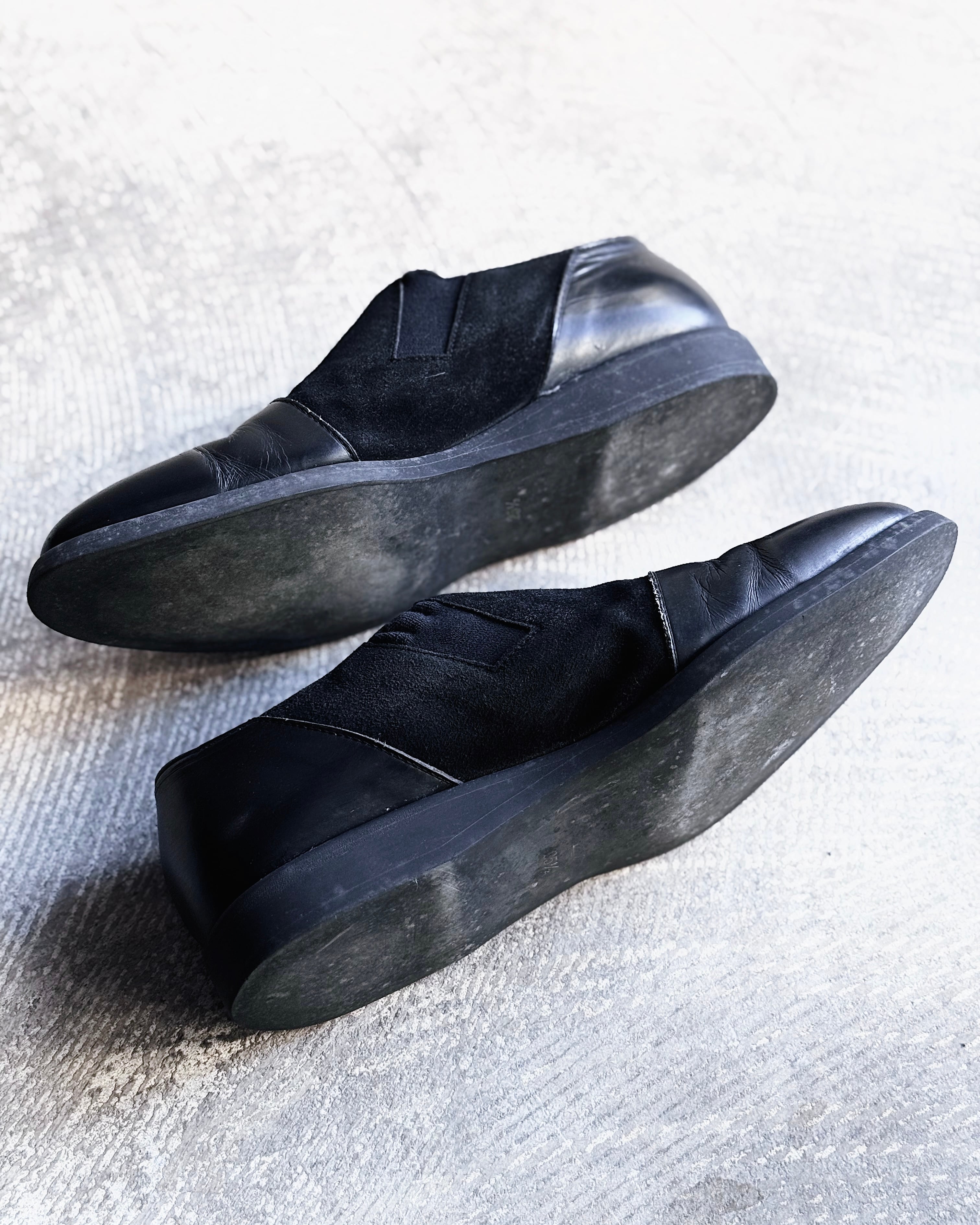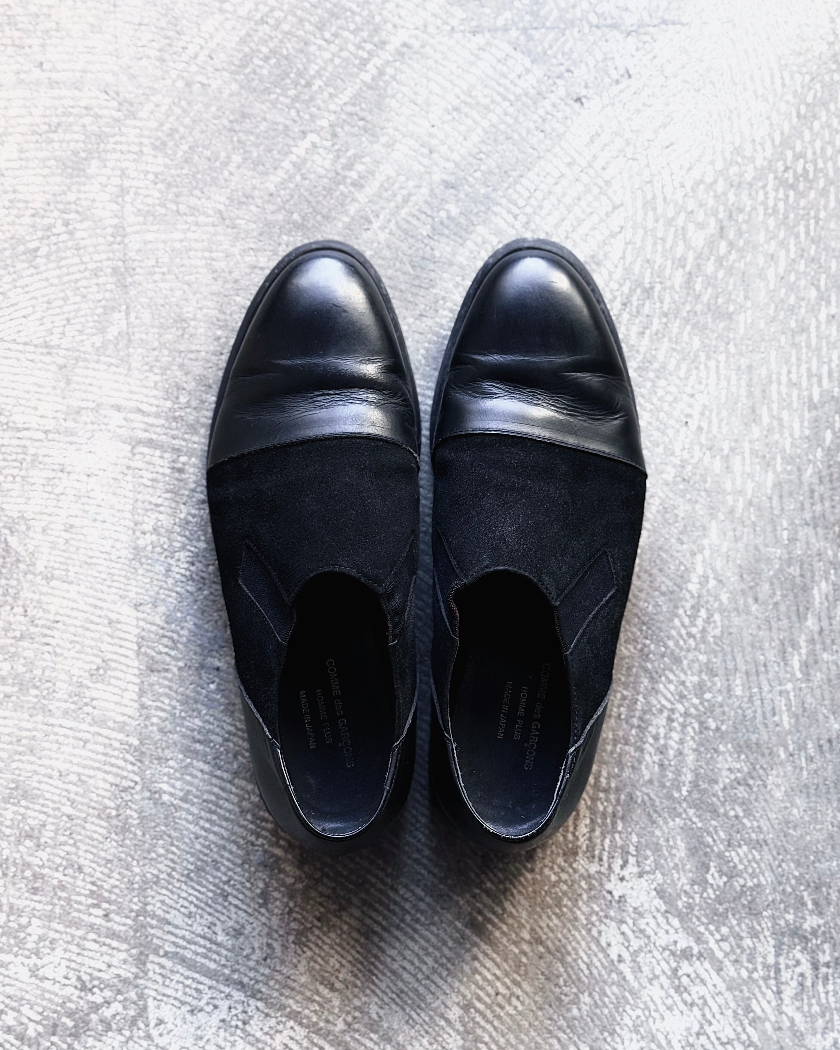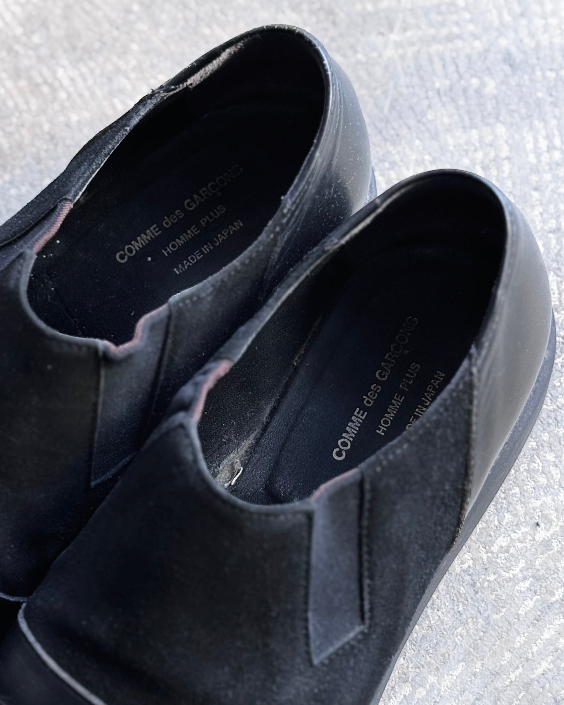 レザーとスエードを切り替えた、ギャルソンオムプリュスらしい構築的な一足。