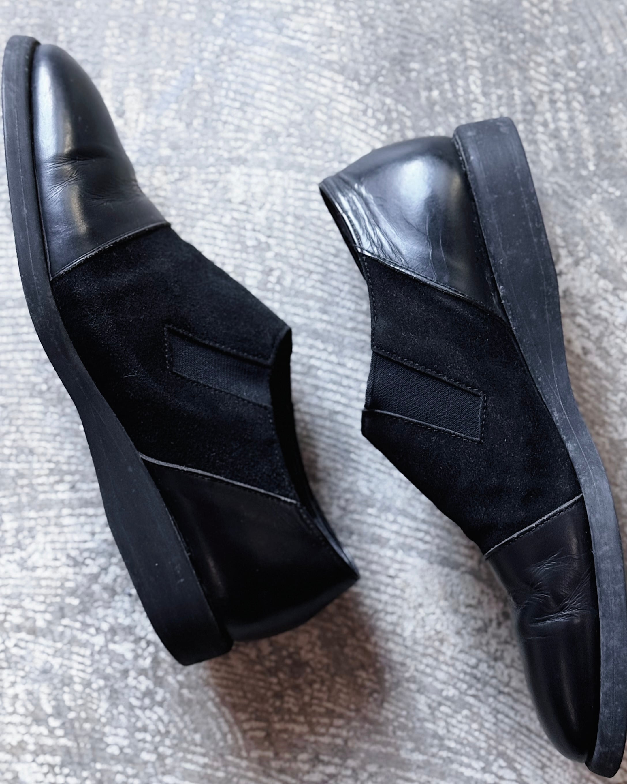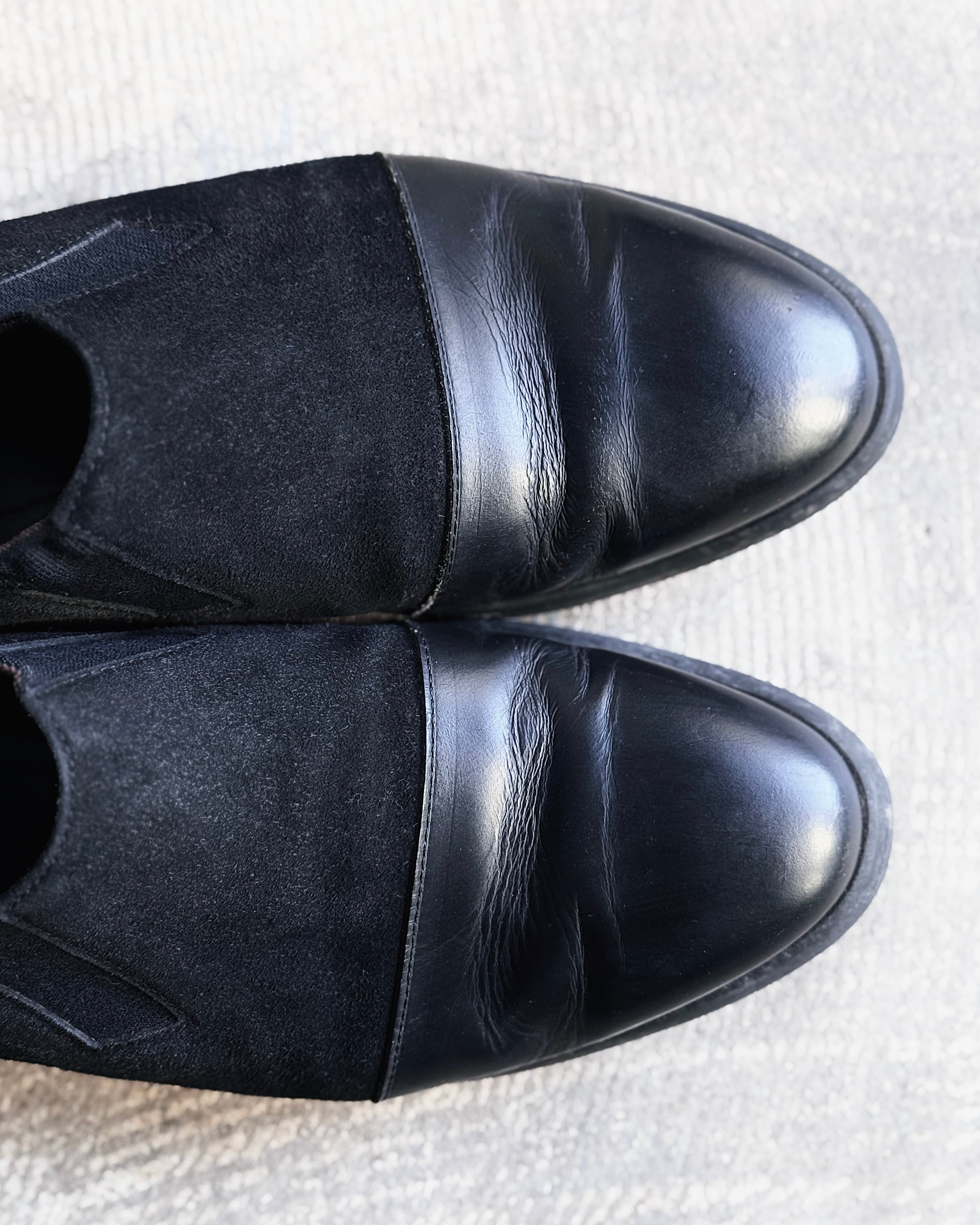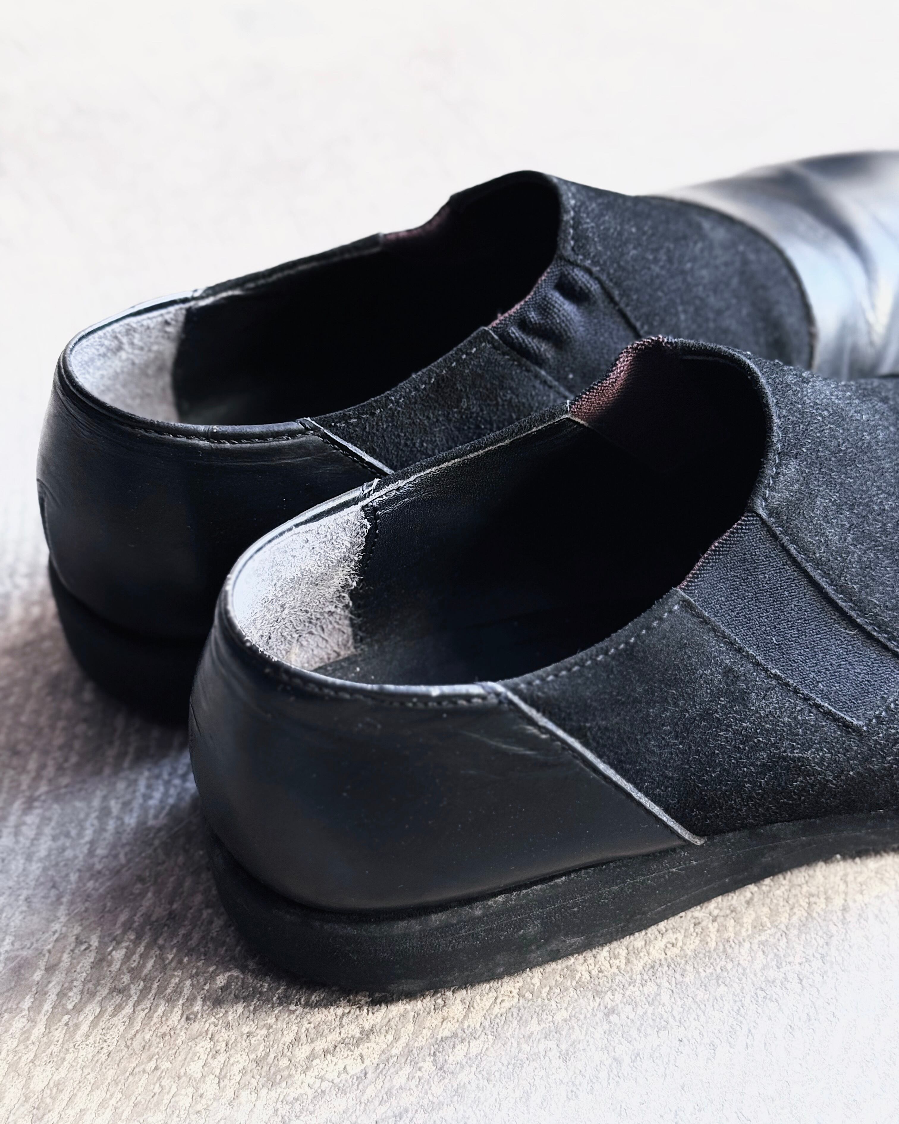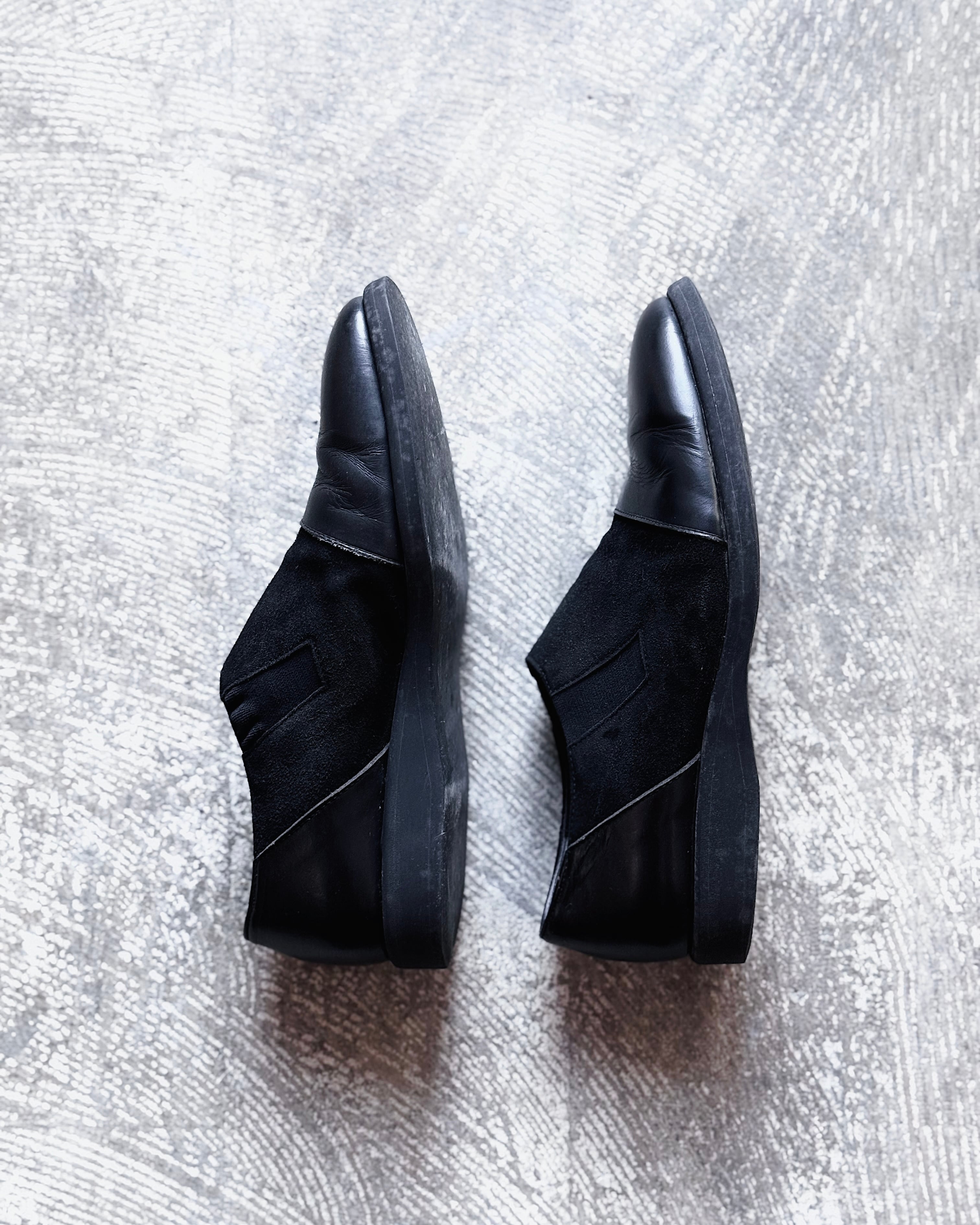 レザーとスエードを切り替えた、ギャルソンオムプリュスらしい構築的な一足。