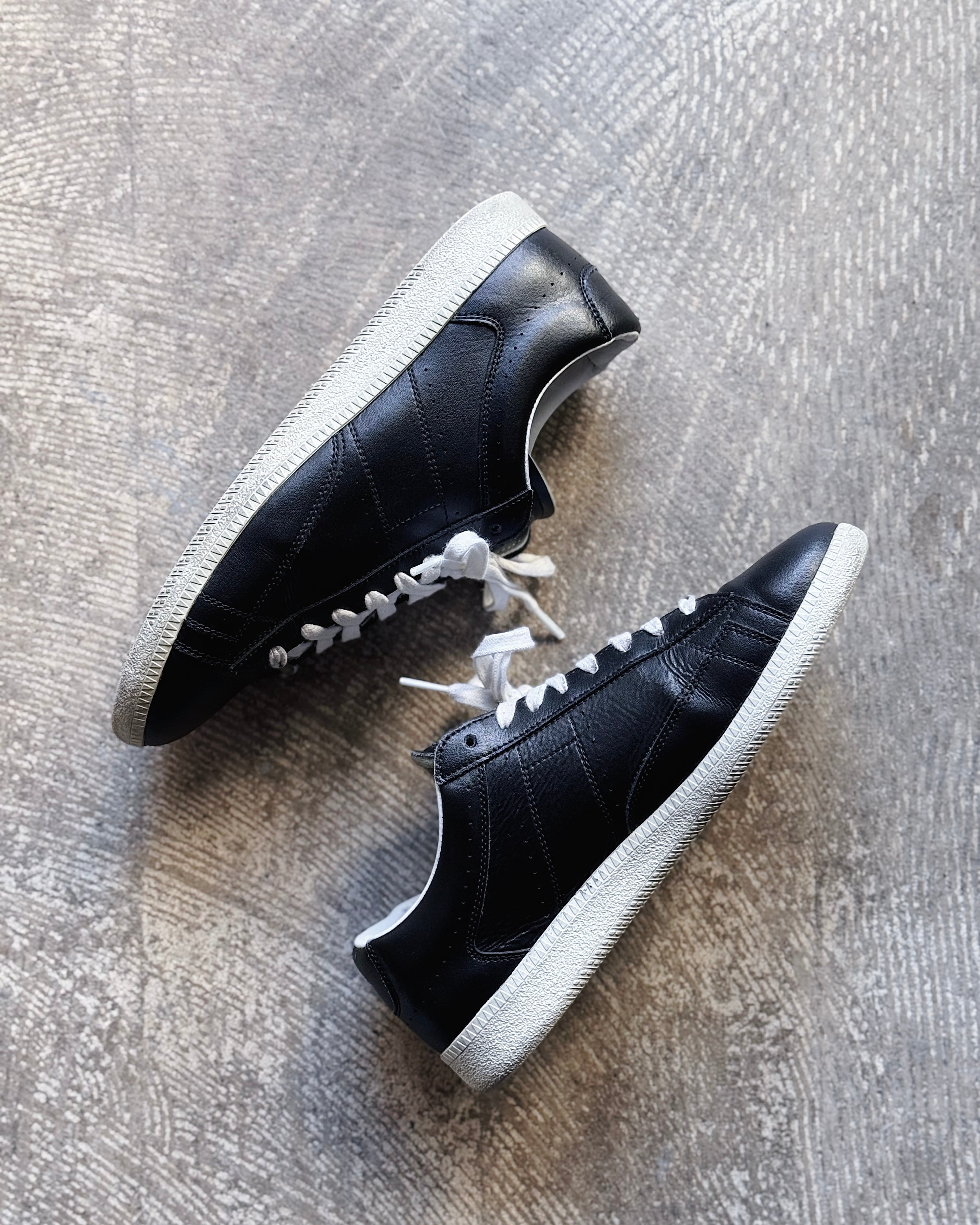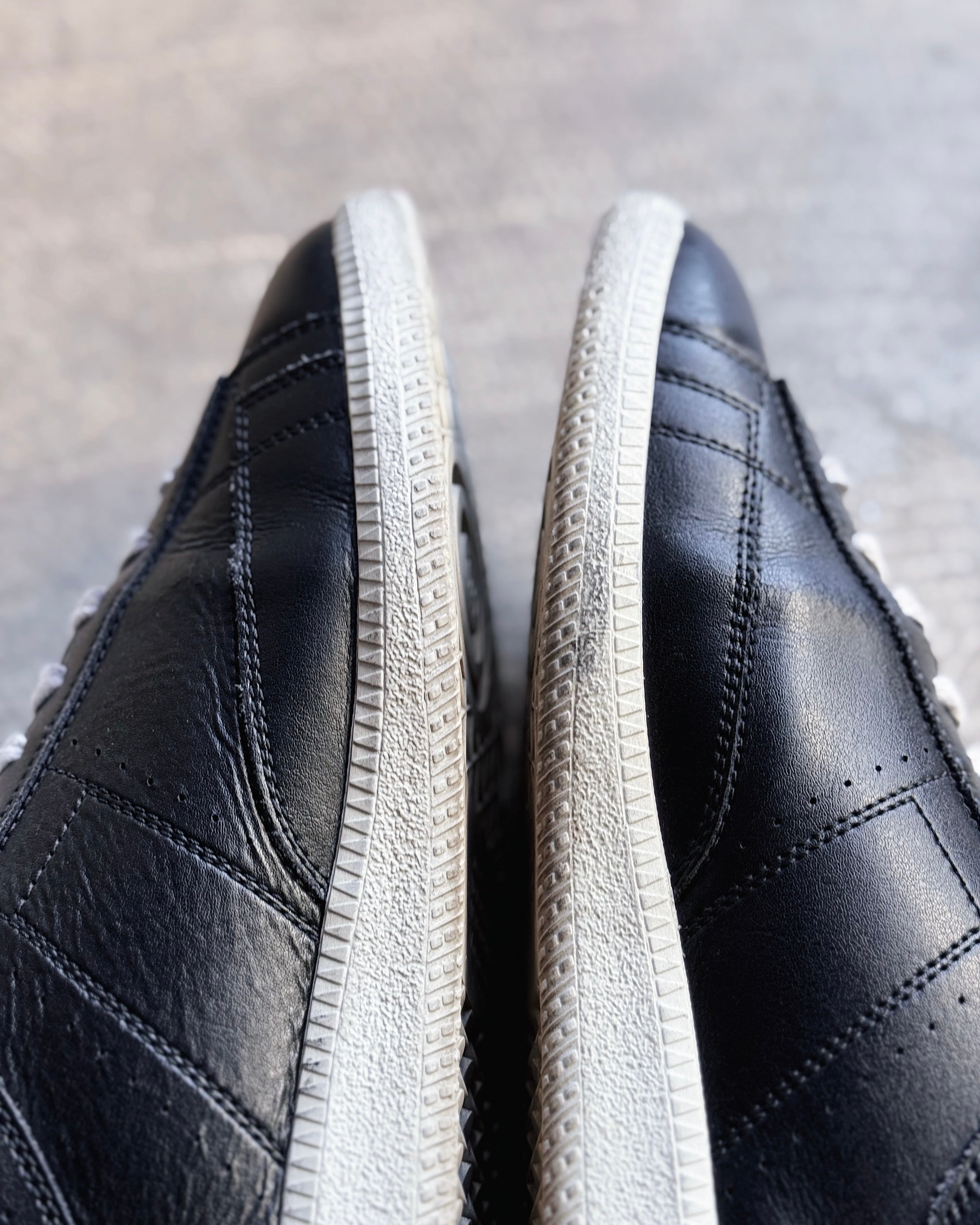 上質なブラックレザーを全面に使用し、ミニマルな配色とシャープなフォルムが際立つ一足です。