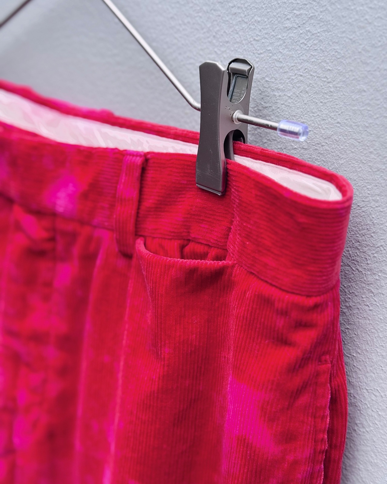 カシミヤ混の細畝コーデュロイが持つ圧倒的な肌触りと、鮮烈なブリーチによる表情が共存する稀有なバランス。