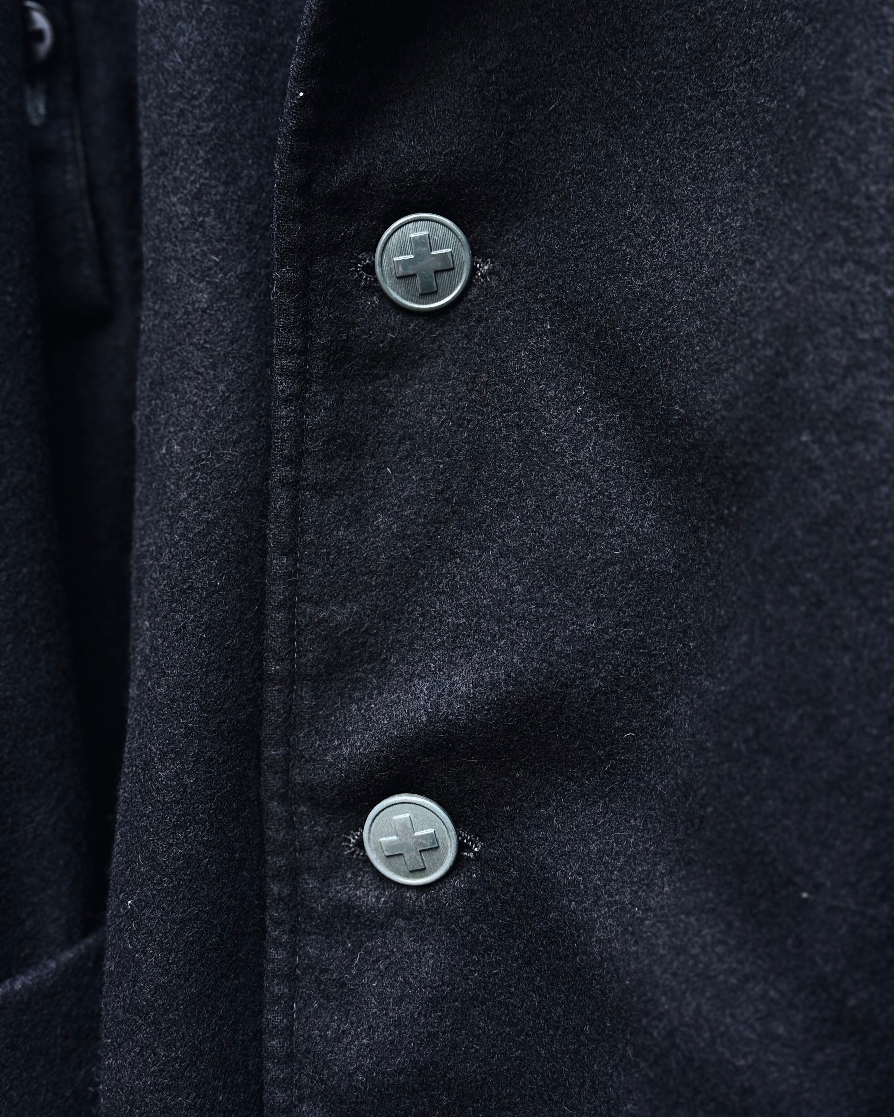 クロス刻印のボタンや緻密なステッチワークなど、当時の軍用品ならではの高い縫製精度が随所に見られる一着。