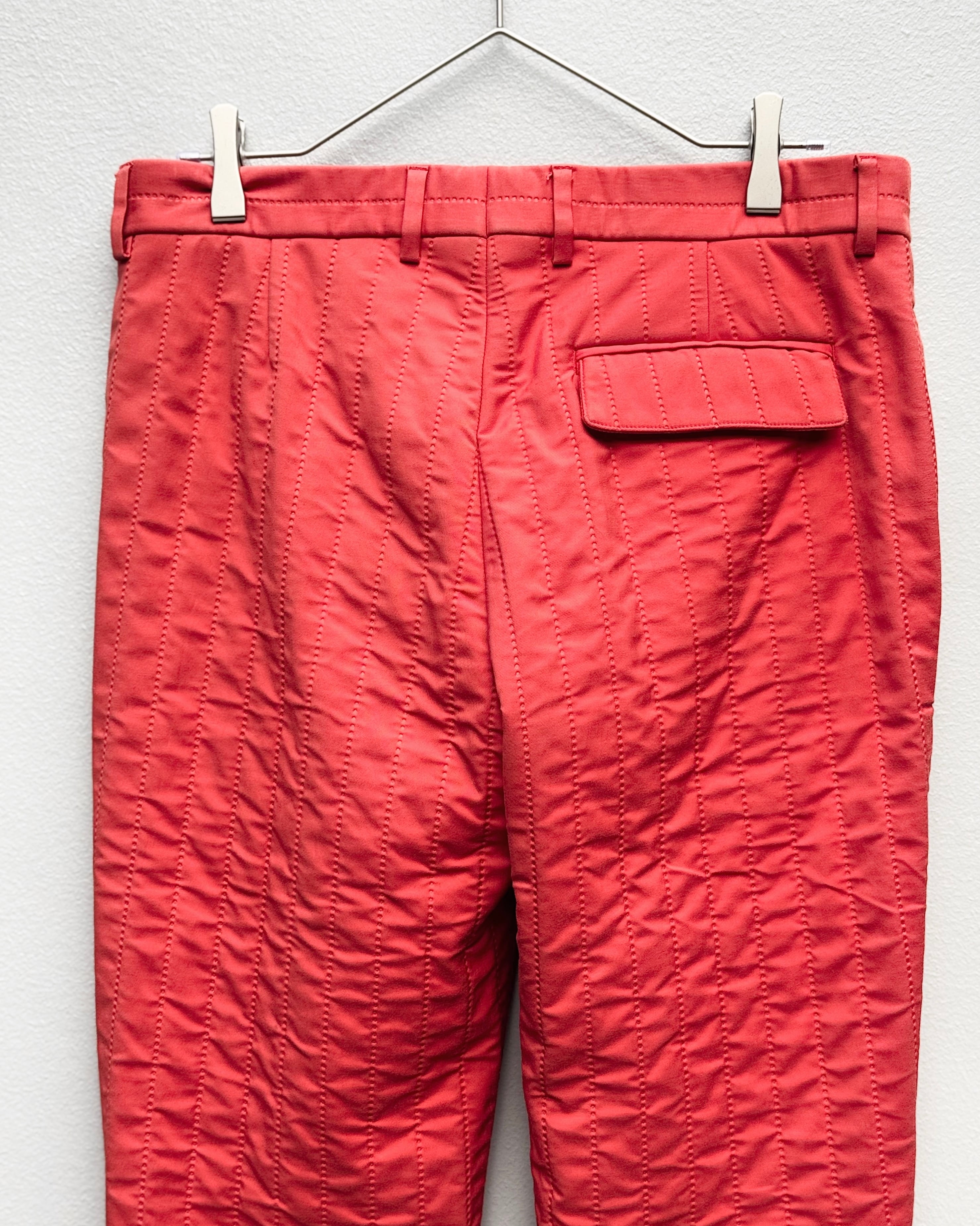 立体的な縦キルティングが全面に施された、構築性の高いトラウザーズです。