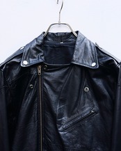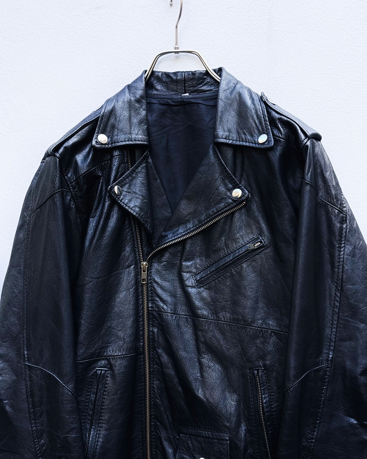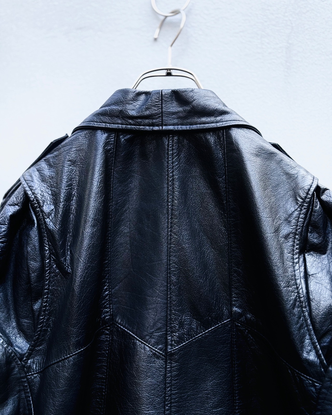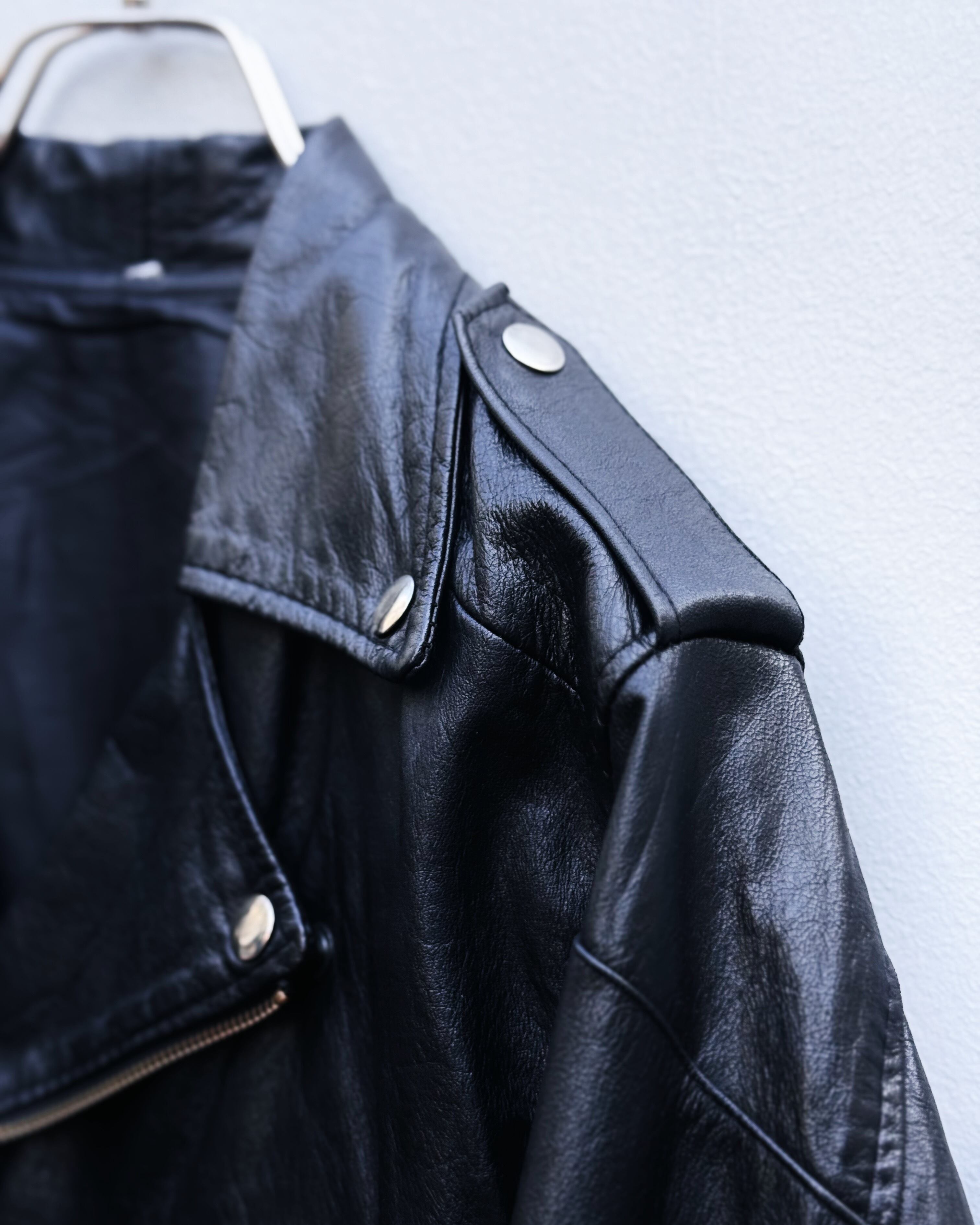 無駄のない王道ディテールながら、着用時のシルエットバランスが非常に良く、レザー特有の重さを感じさせない一着。