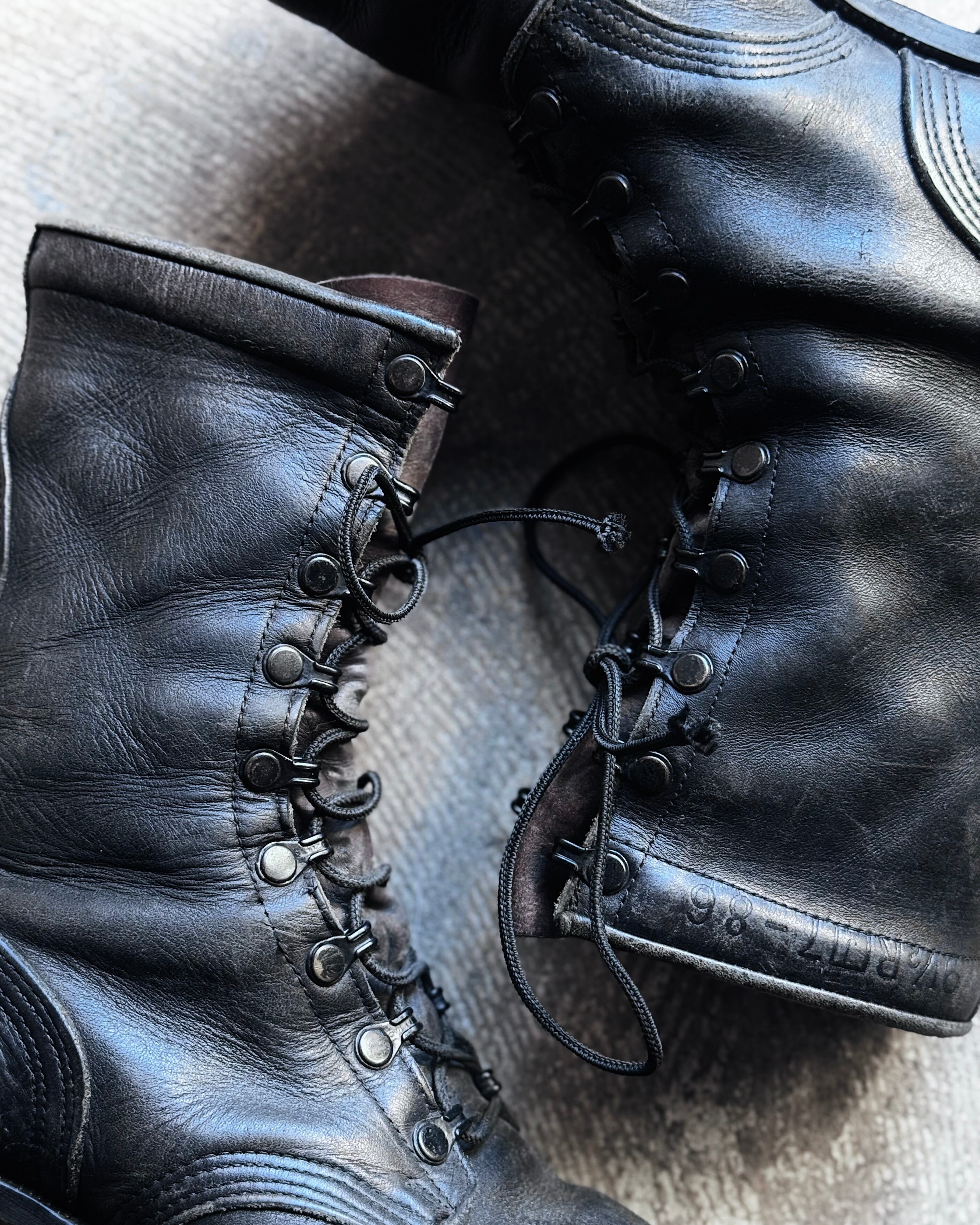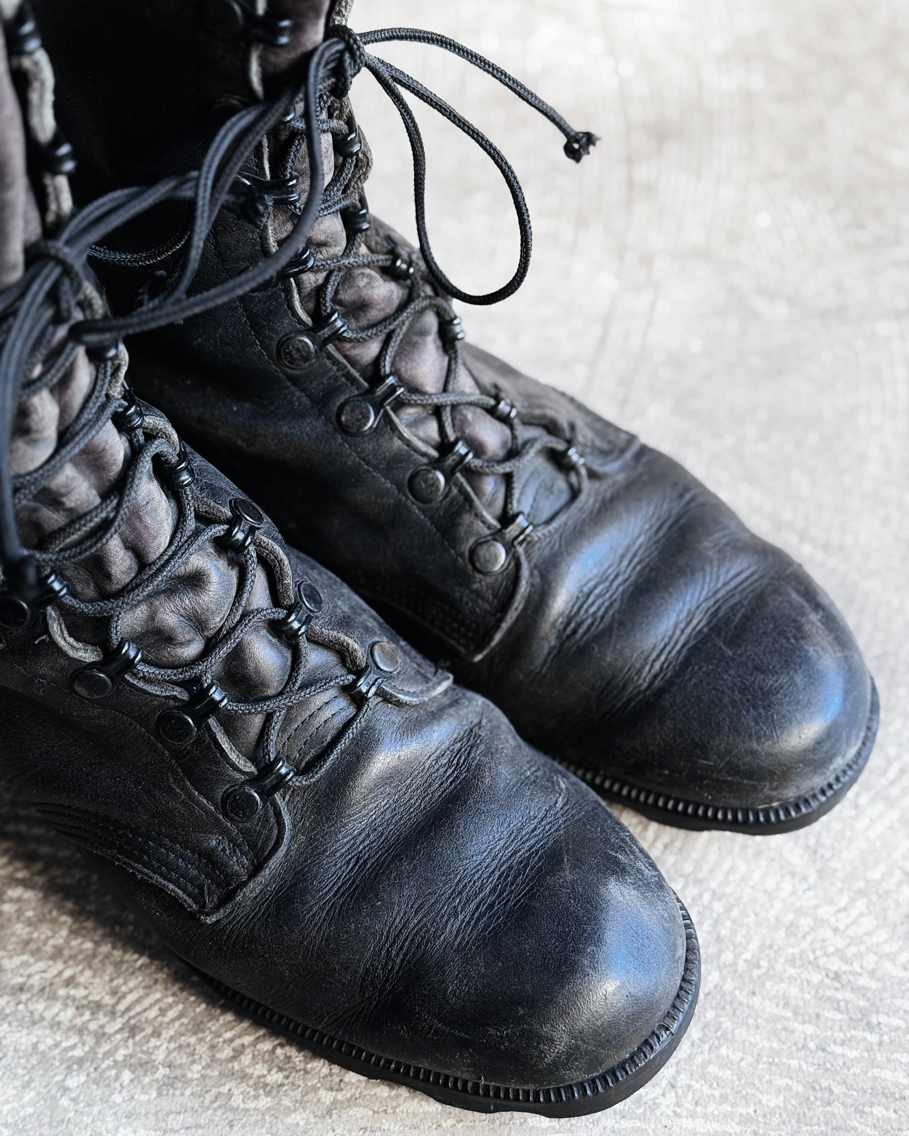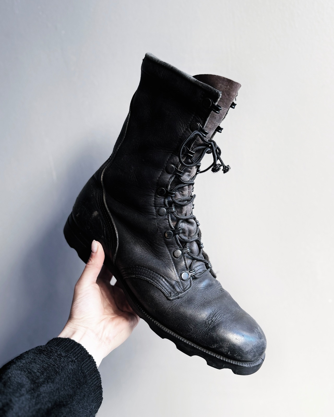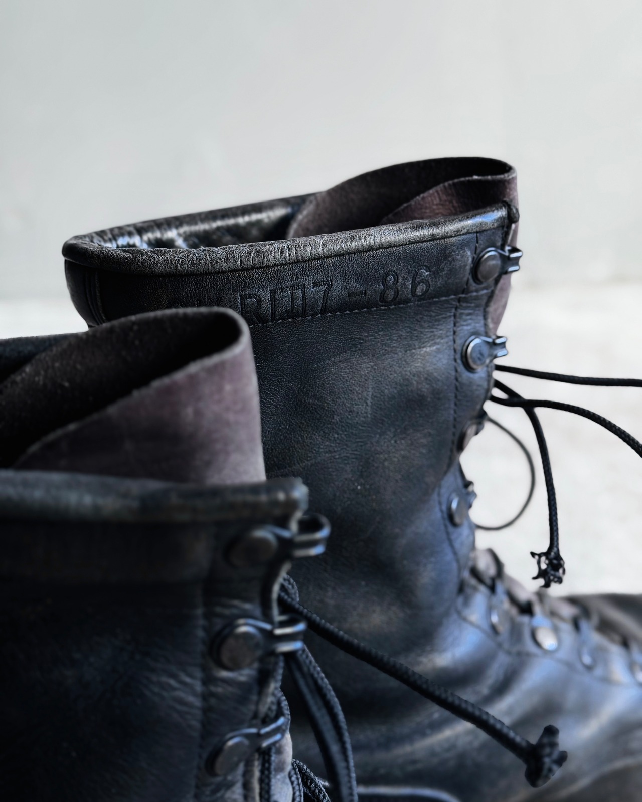 重厚なブラックレザーに、当時の軍靴らしい実用本位の構造がそのまま残る一足。