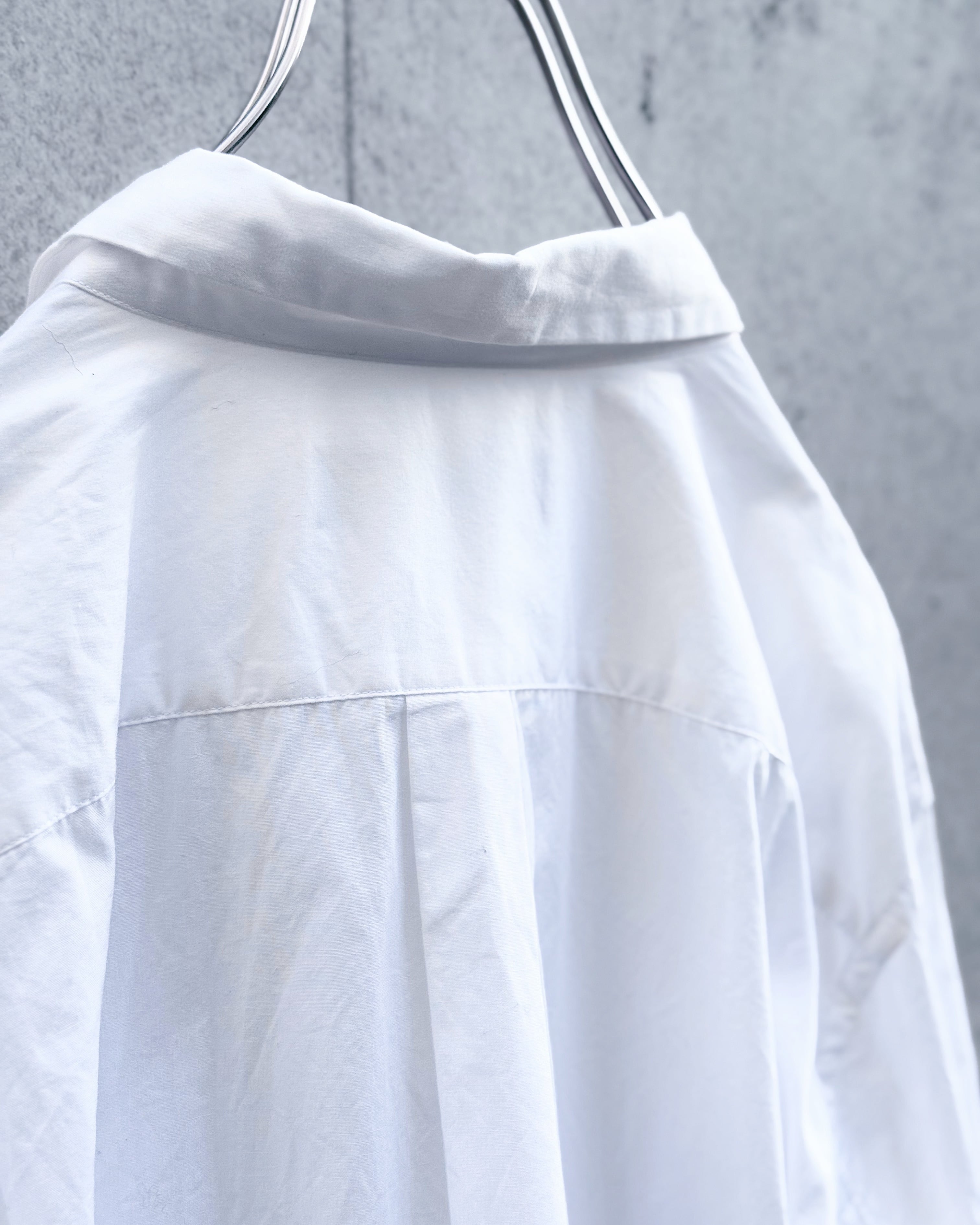 ハリのあるコットン地に、縦に落ちるストラップが立体的な表情を生み、レイヤードや着崩しにも自然に対応。