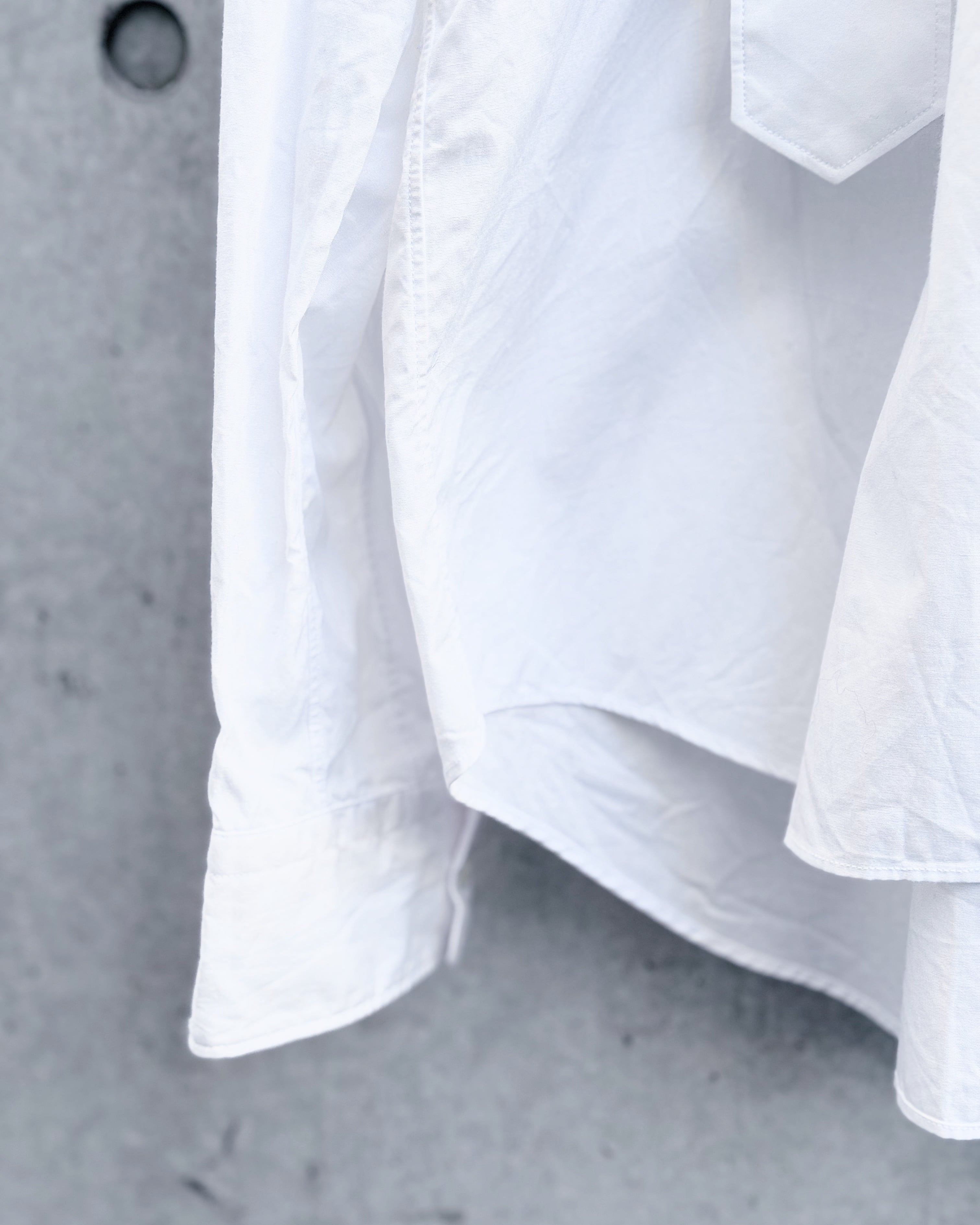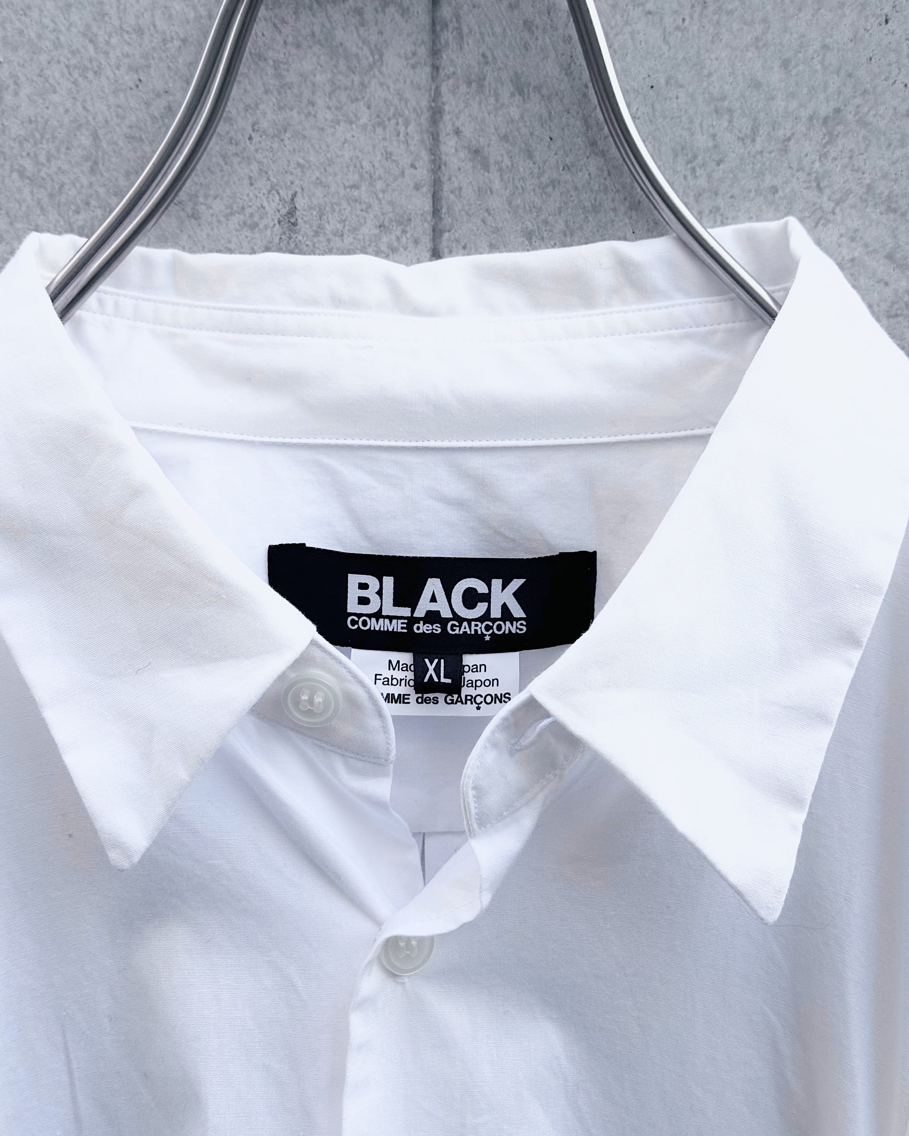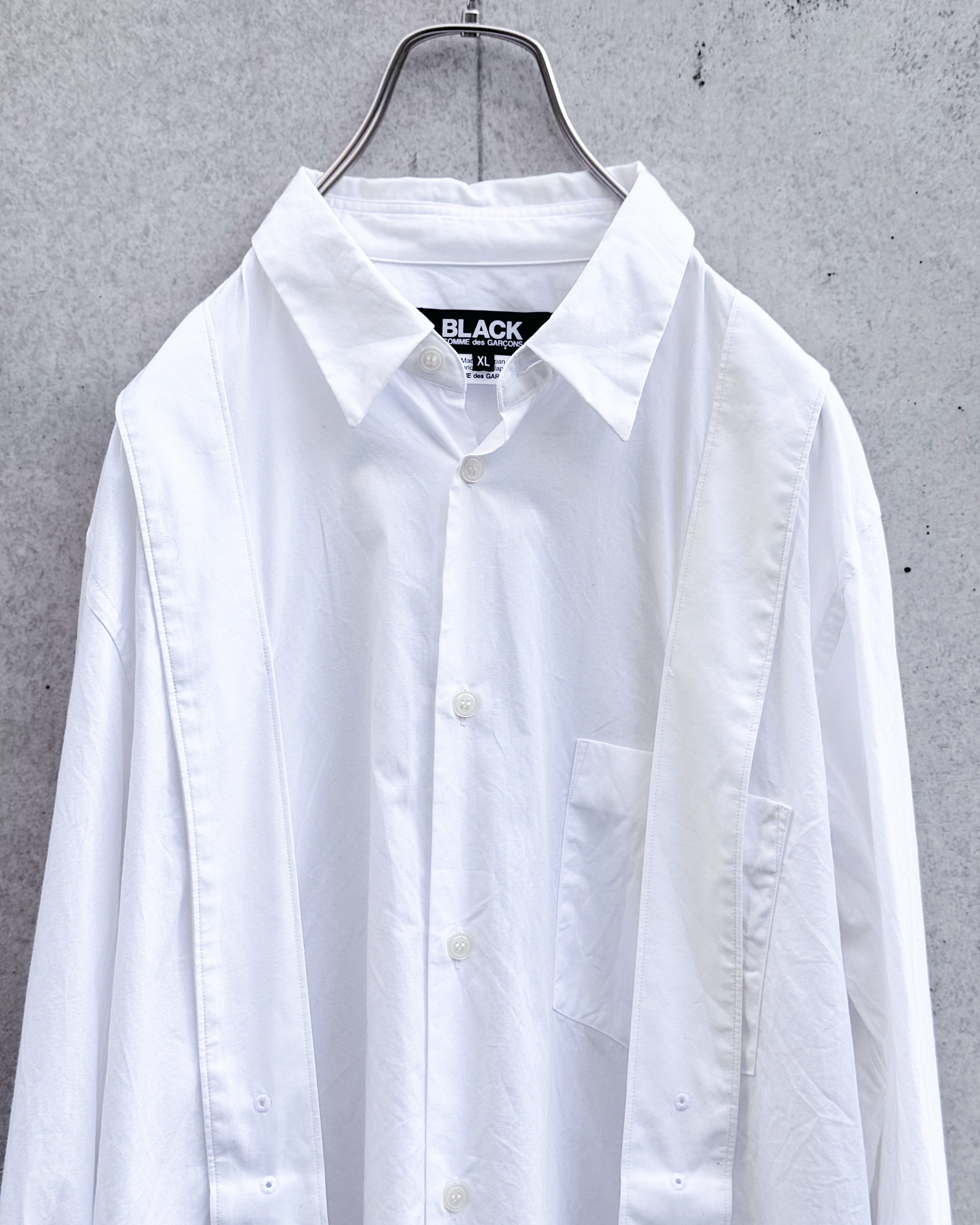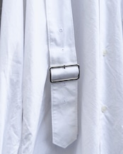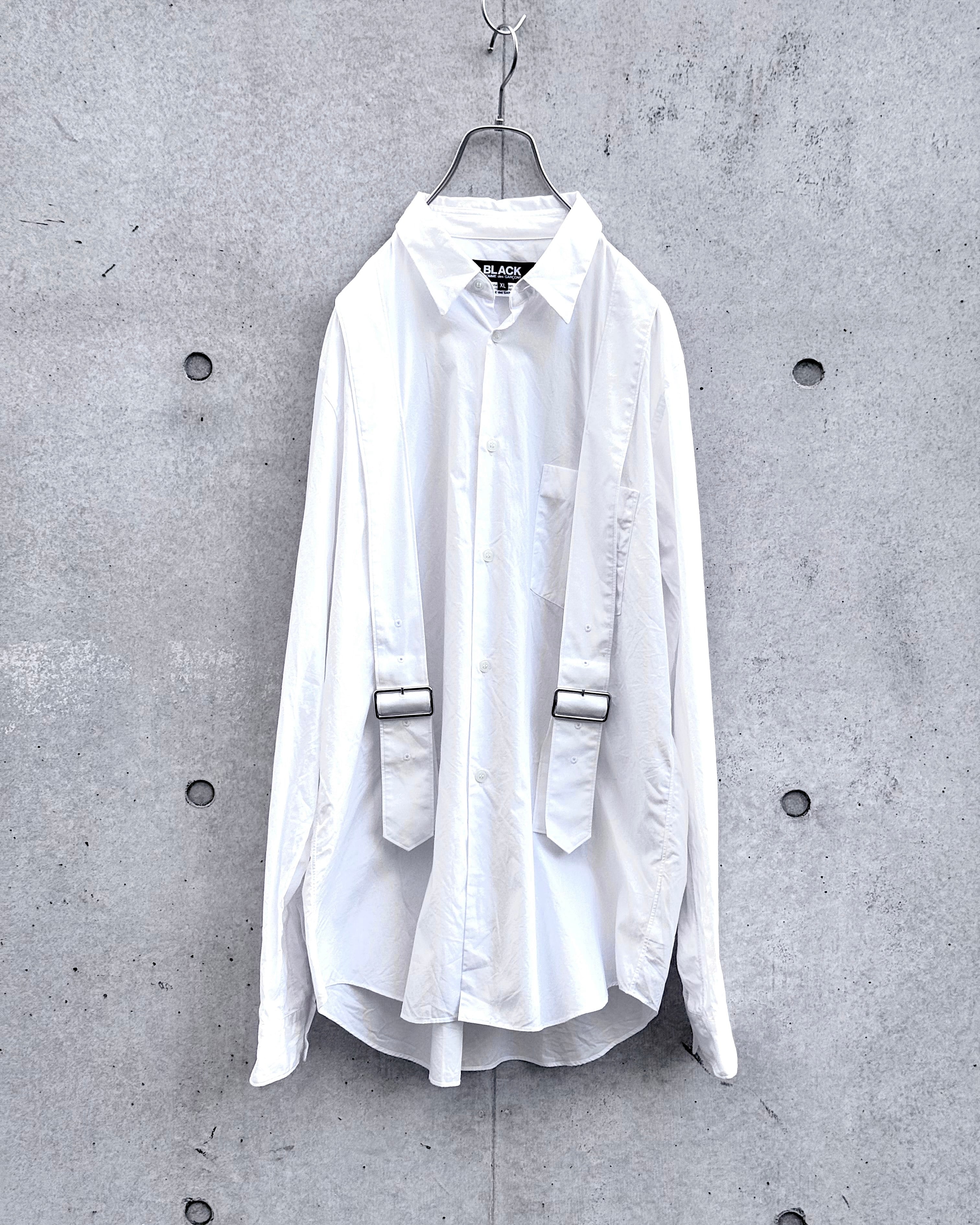 フロントに配された2本のベルトデザインが強いアクセントとなり、ミニマルなホワイトシャツに緊張感を加えたBLACK COMME des GARÇONS からの1着。