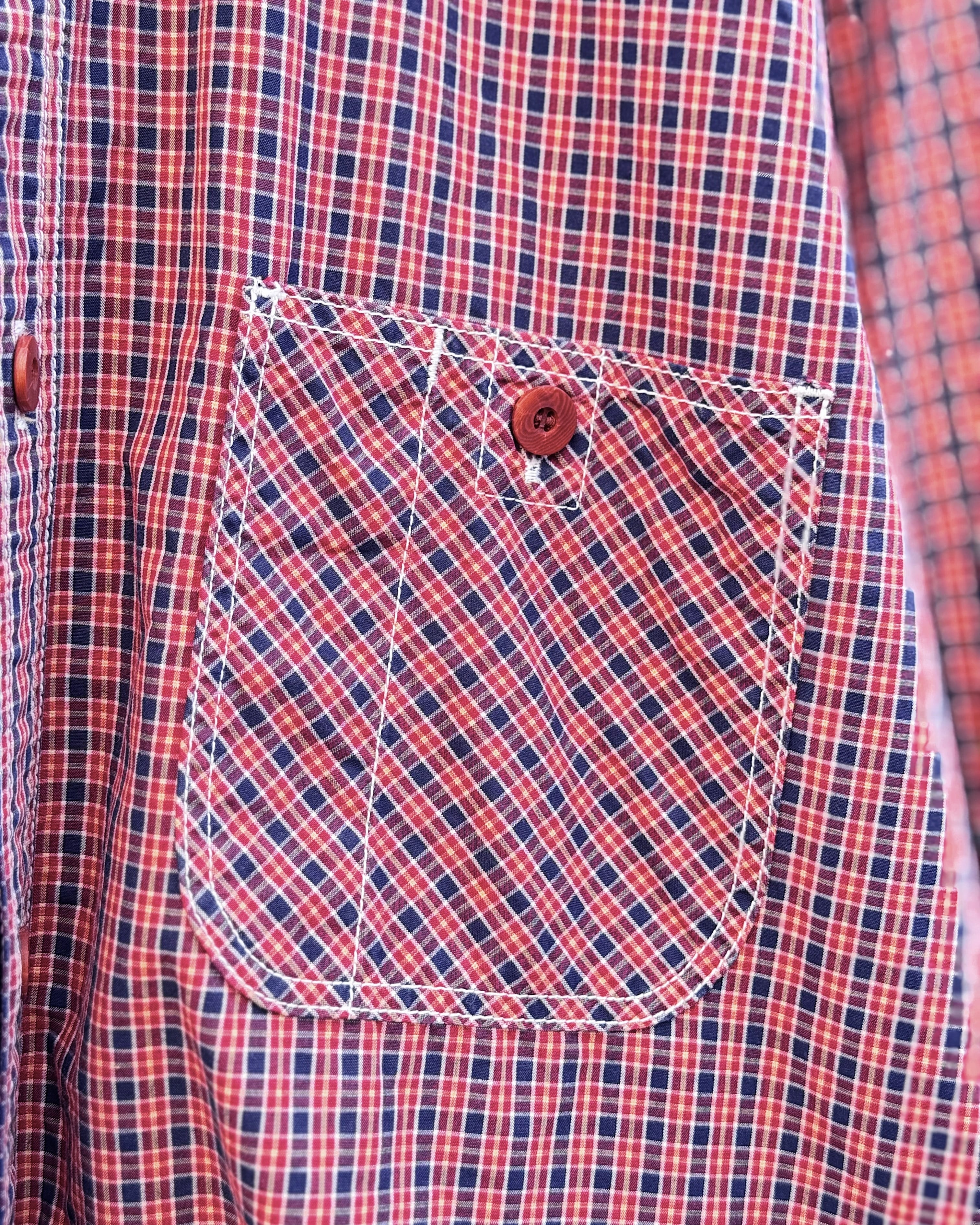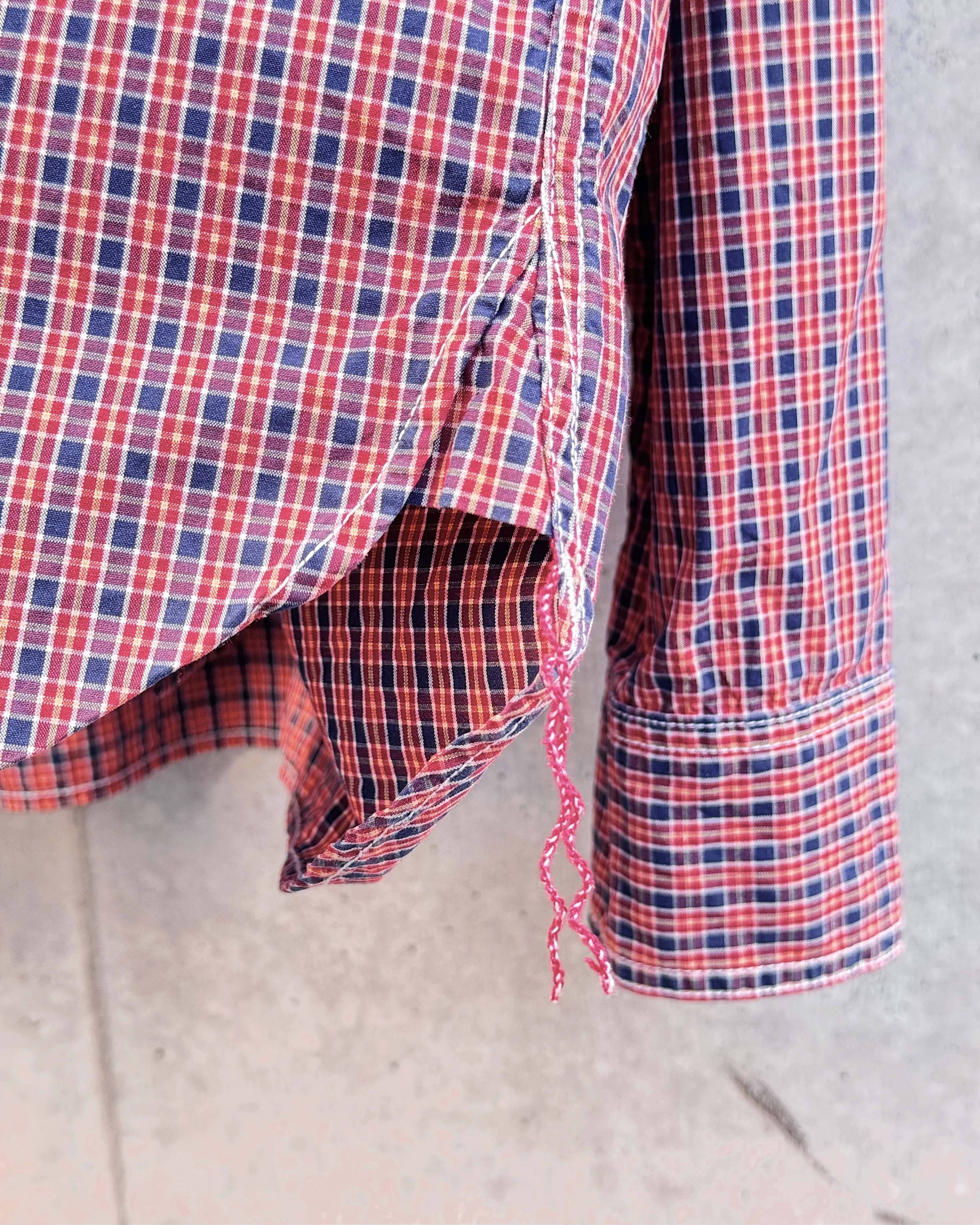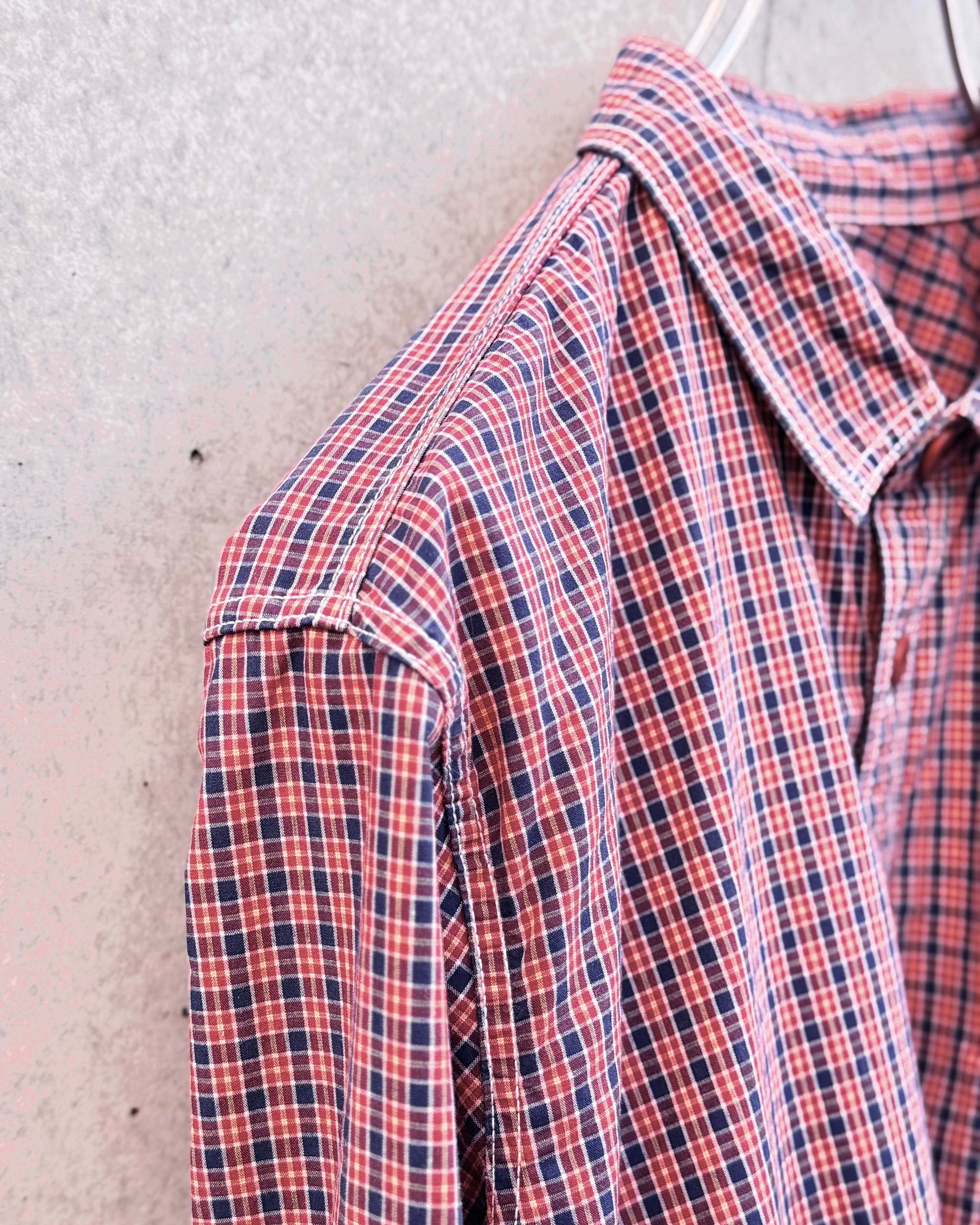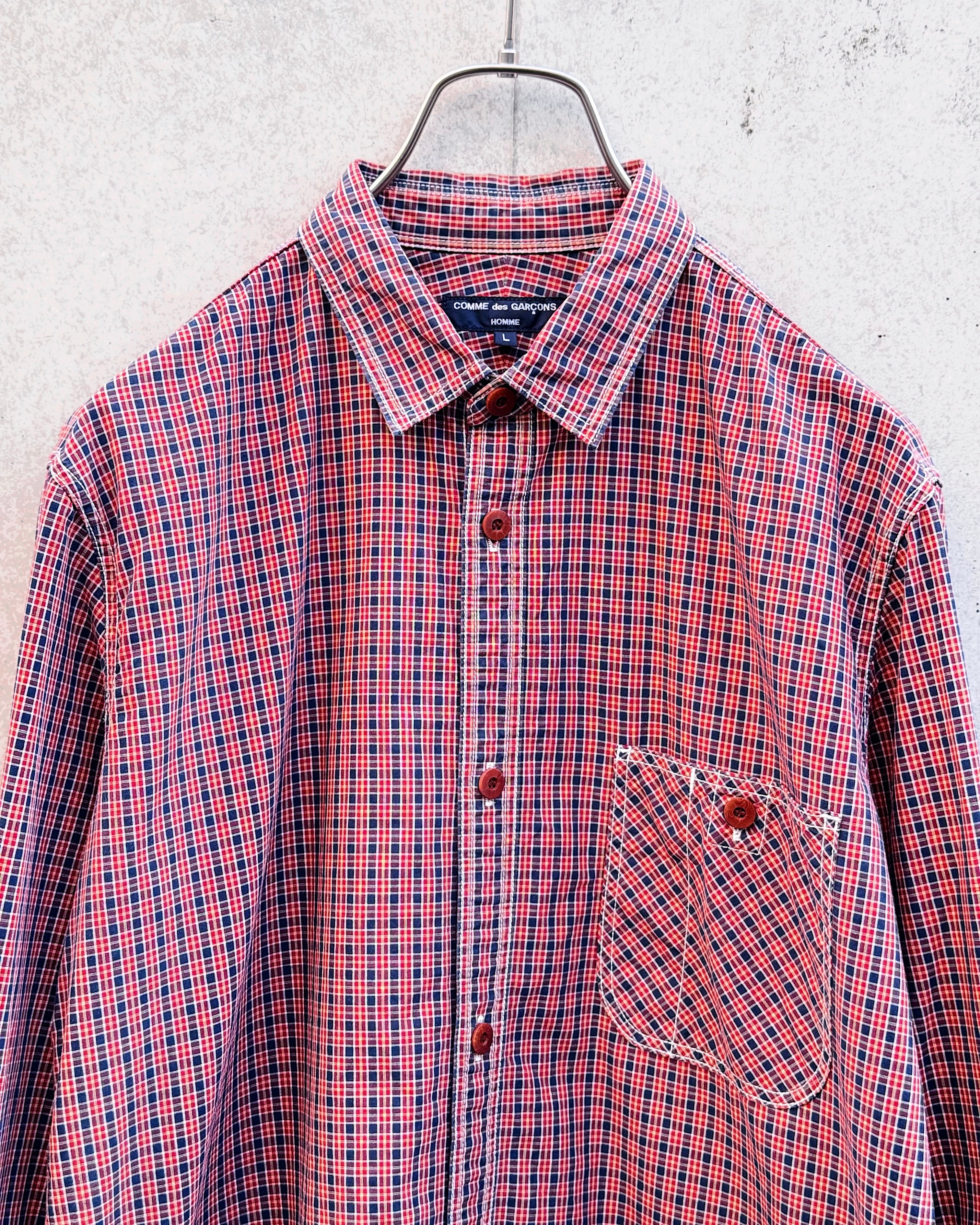 細かなチェック柄をベースに、配色・パターンの奥行きで見せるブランドらしいシャツ。