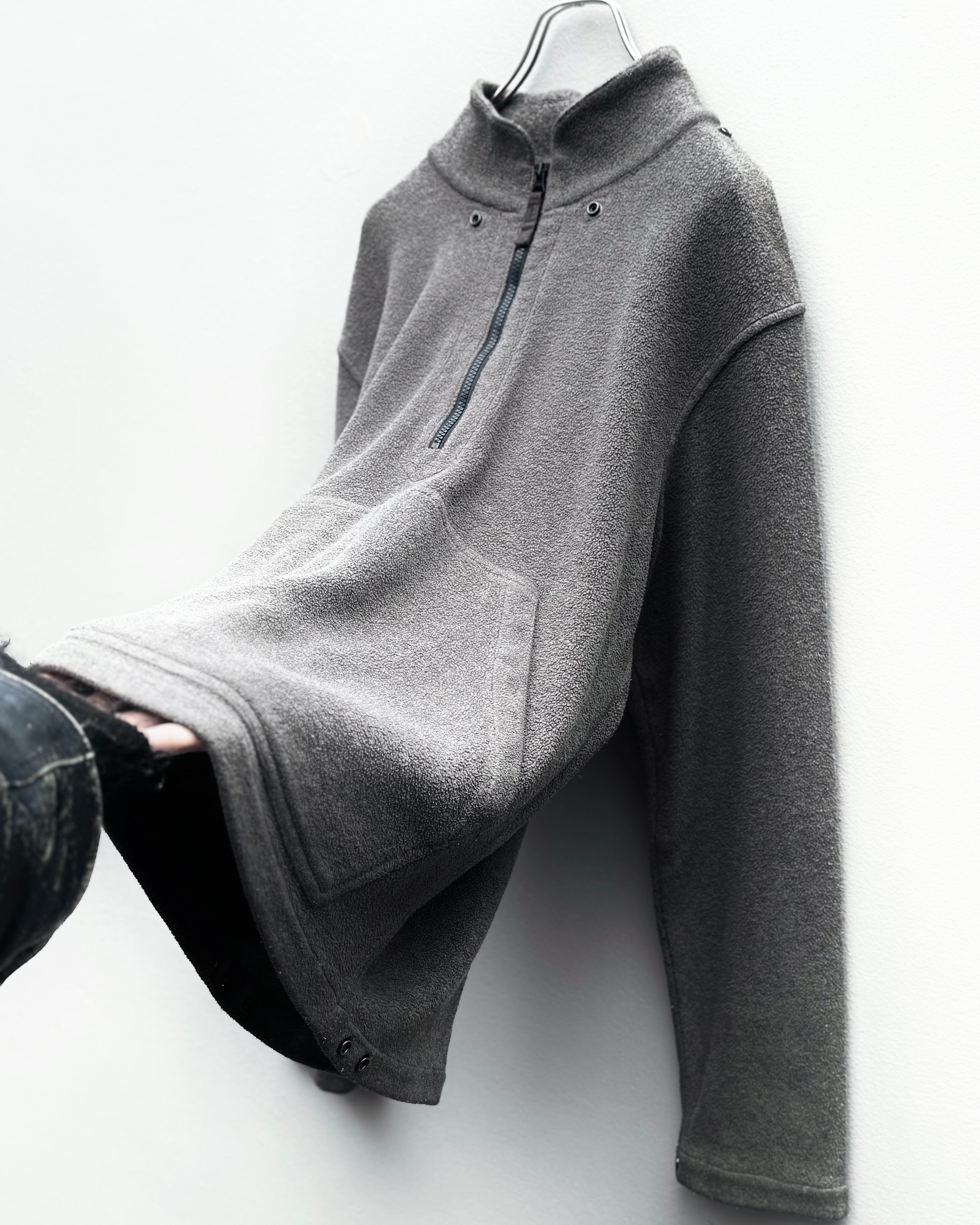 ネックの立ち上がり、ハーフジップ仕様、要所に配されたスナップディテールなど、アウトドア・ワーク由来の機能性を抑制の効いたデザインで表現。