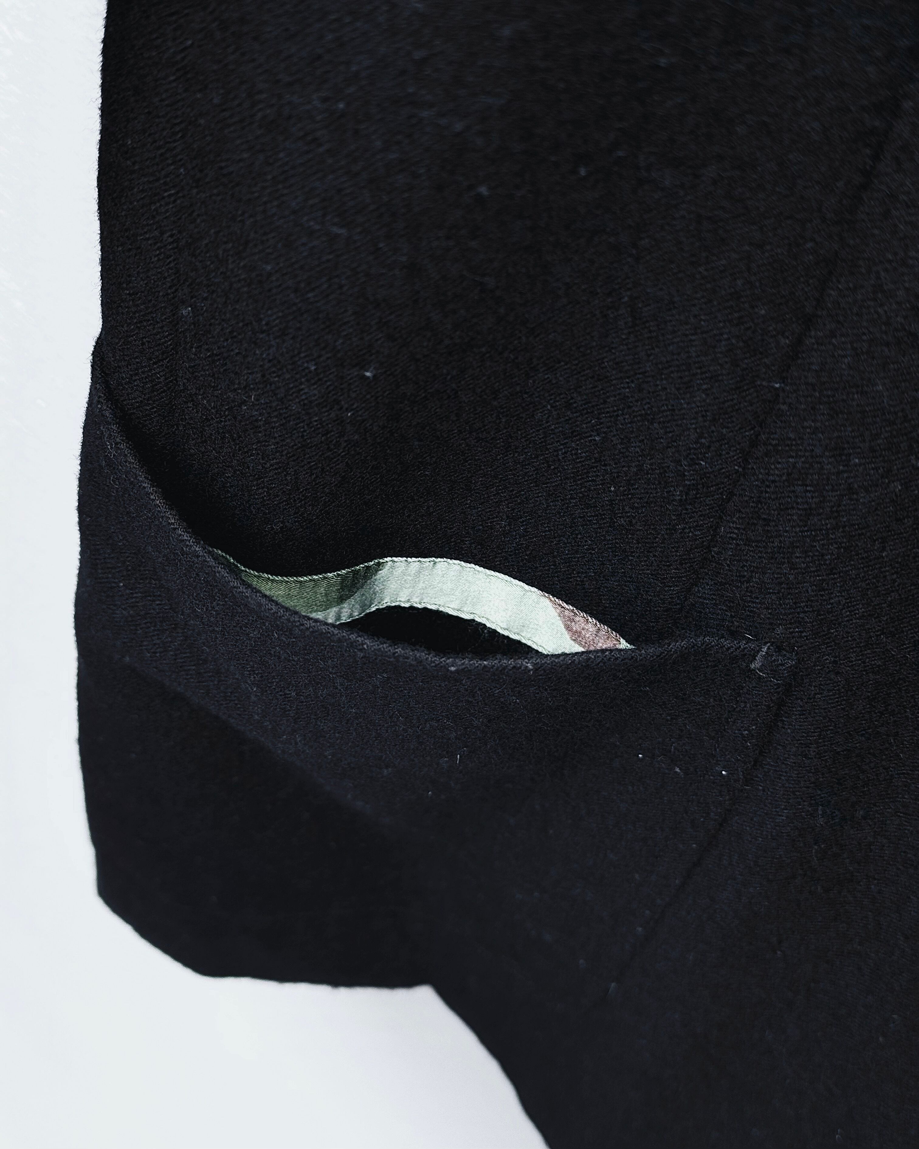 一方で、襟裏のチェック、総カモフラージュの裏地、猫目ボタン、丸みを帯びたラペルといったディテールが程よい抜けを演出。