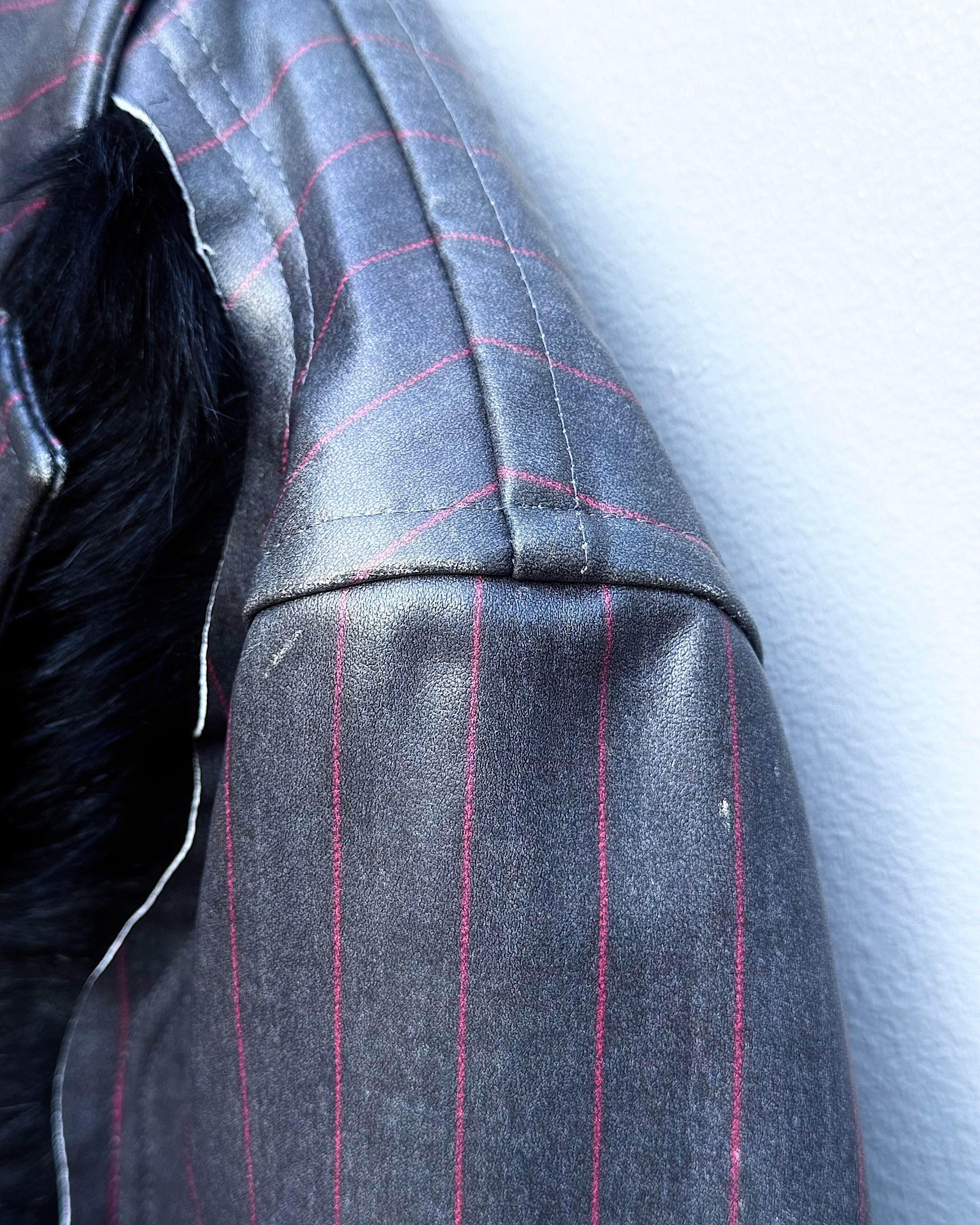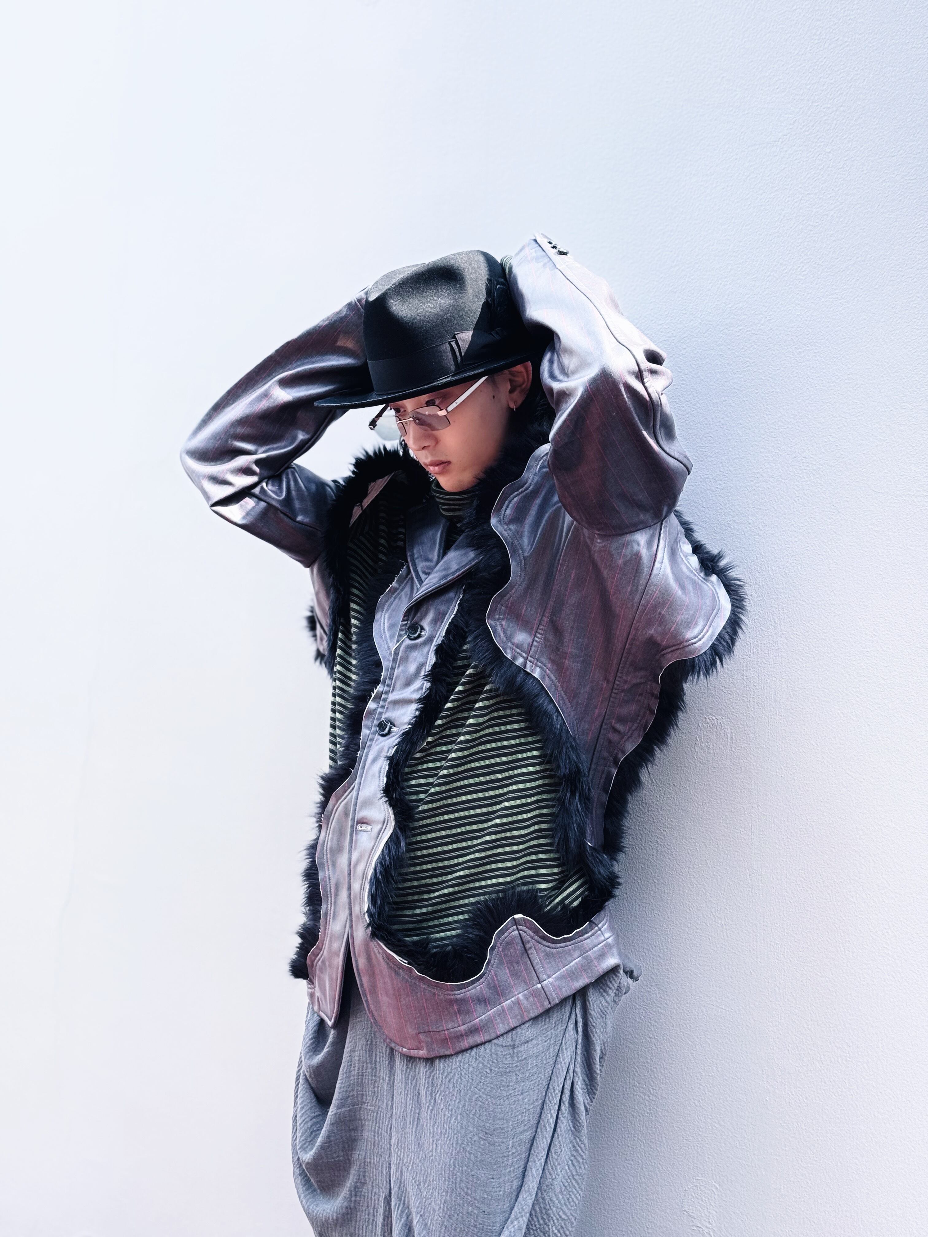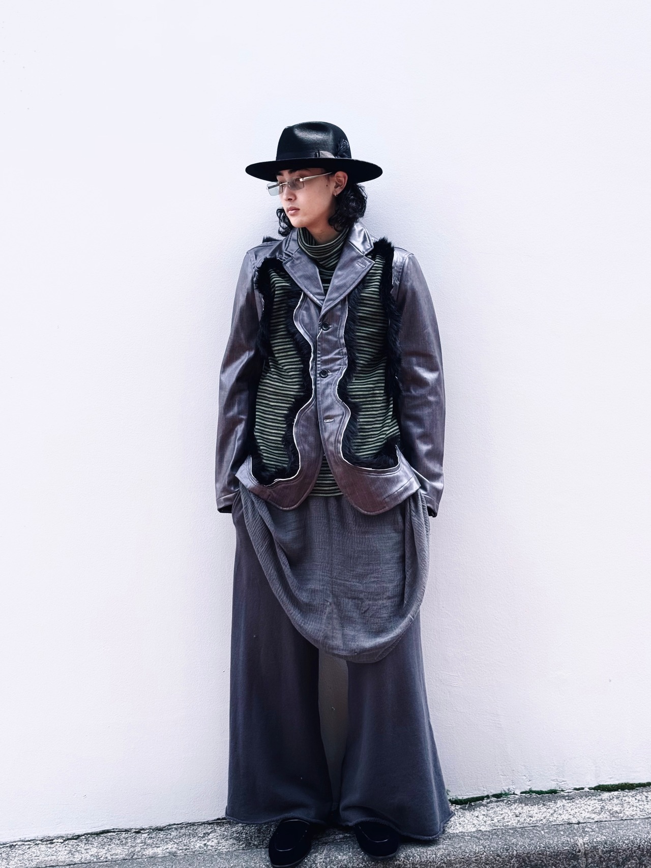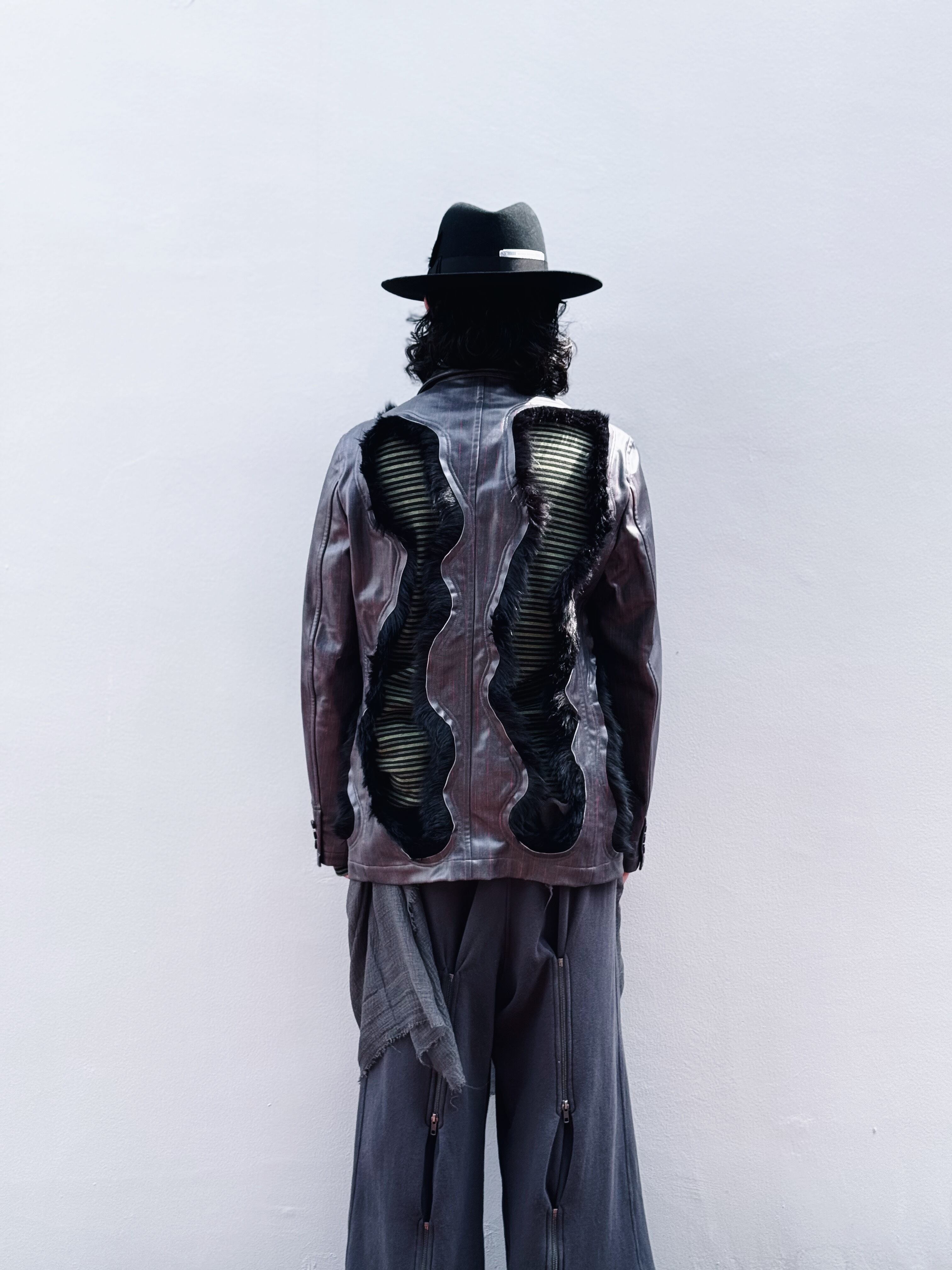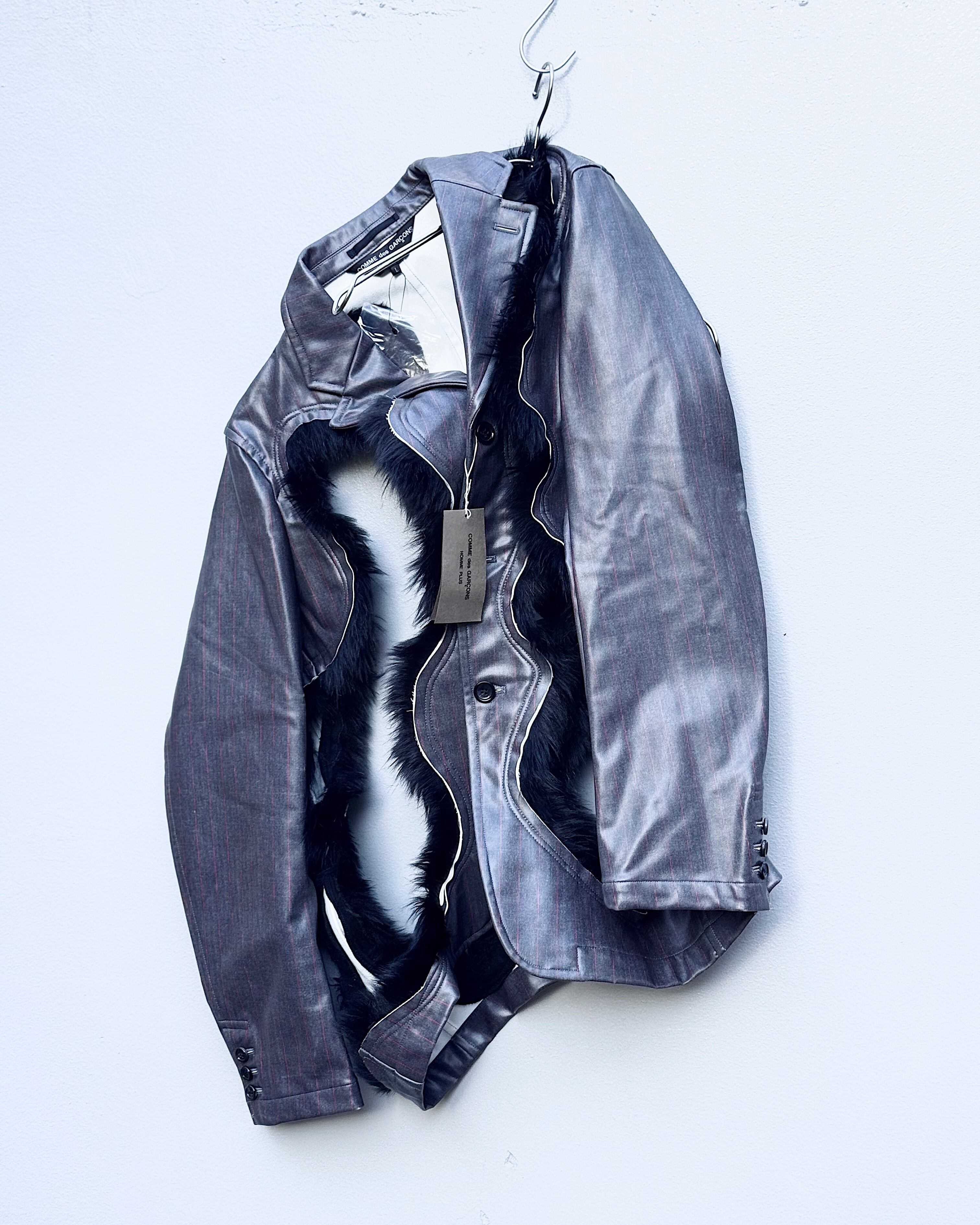 クラシックなジャケットをベースに、大胆な再構築が施された一着。