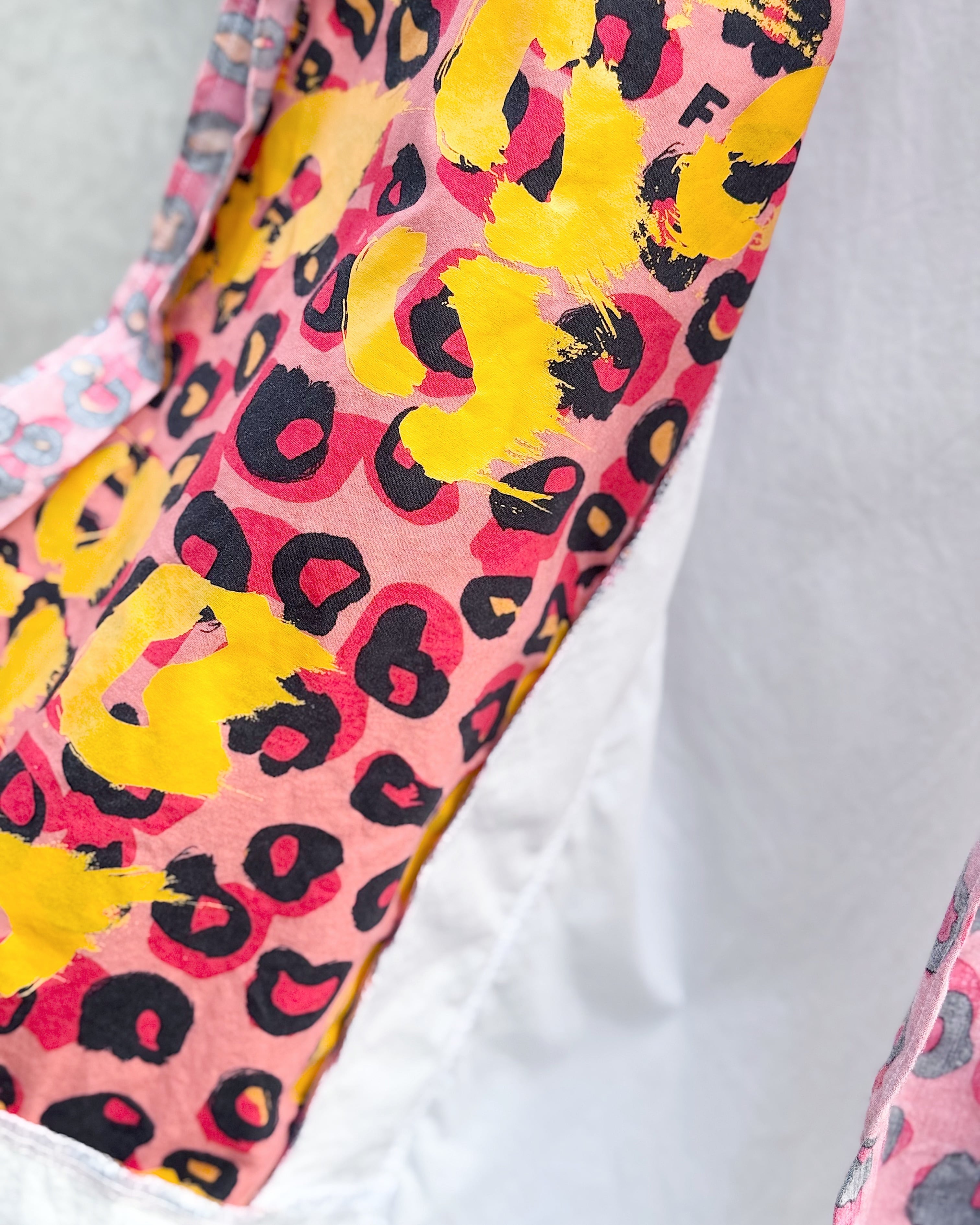 レオパード生地部分は、あえて裏地を表に使用した設計。