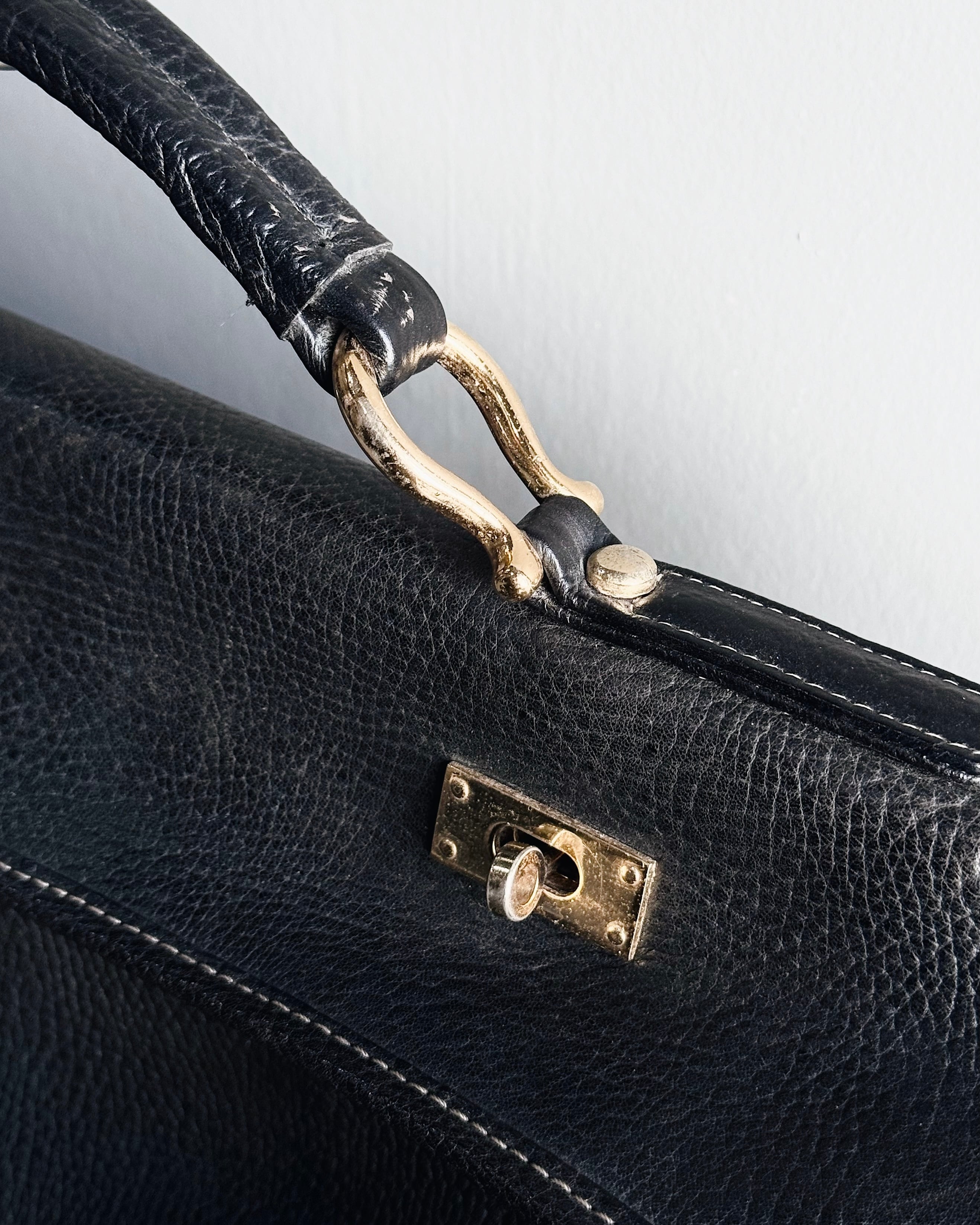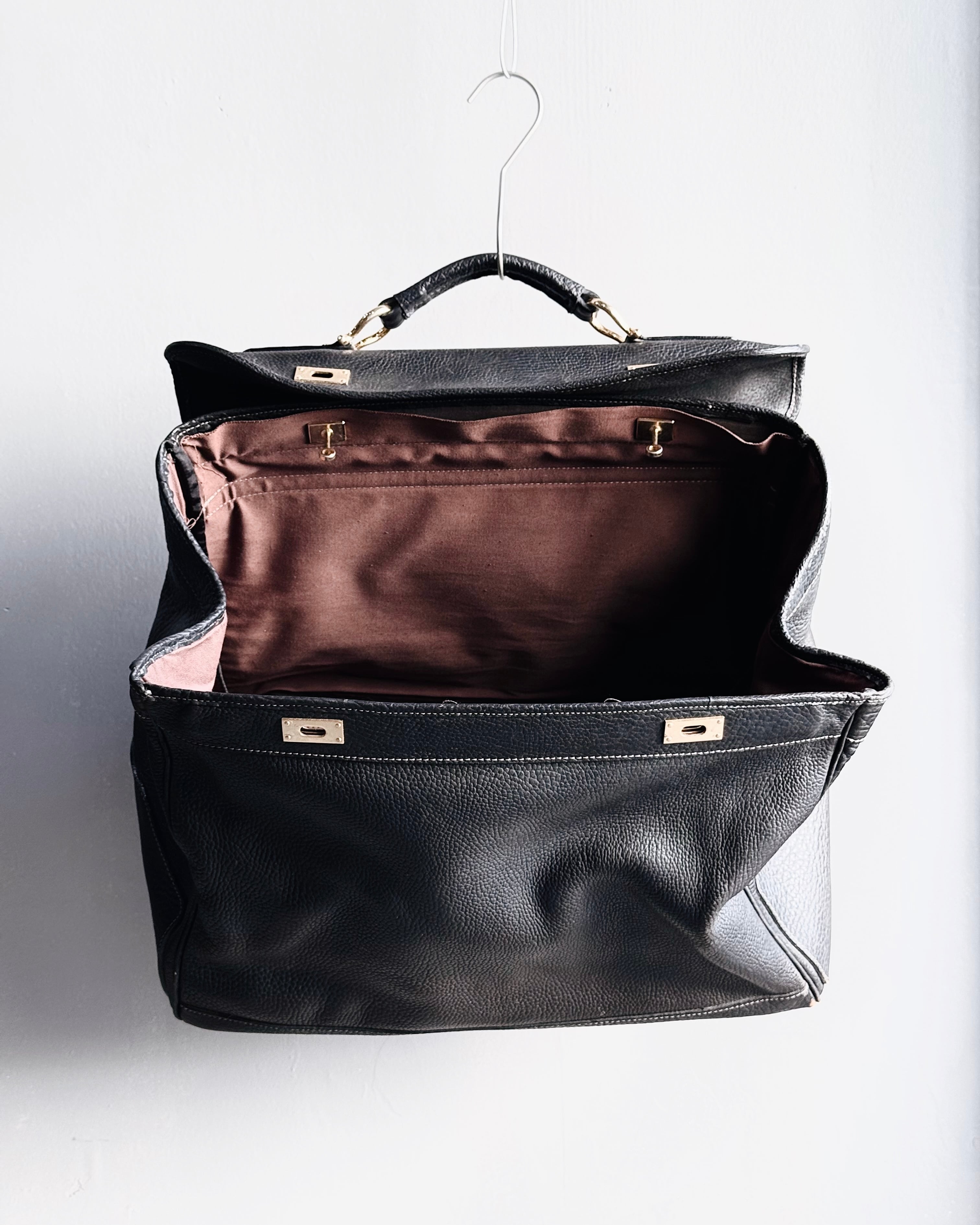 80~90's handmade leather boston bag