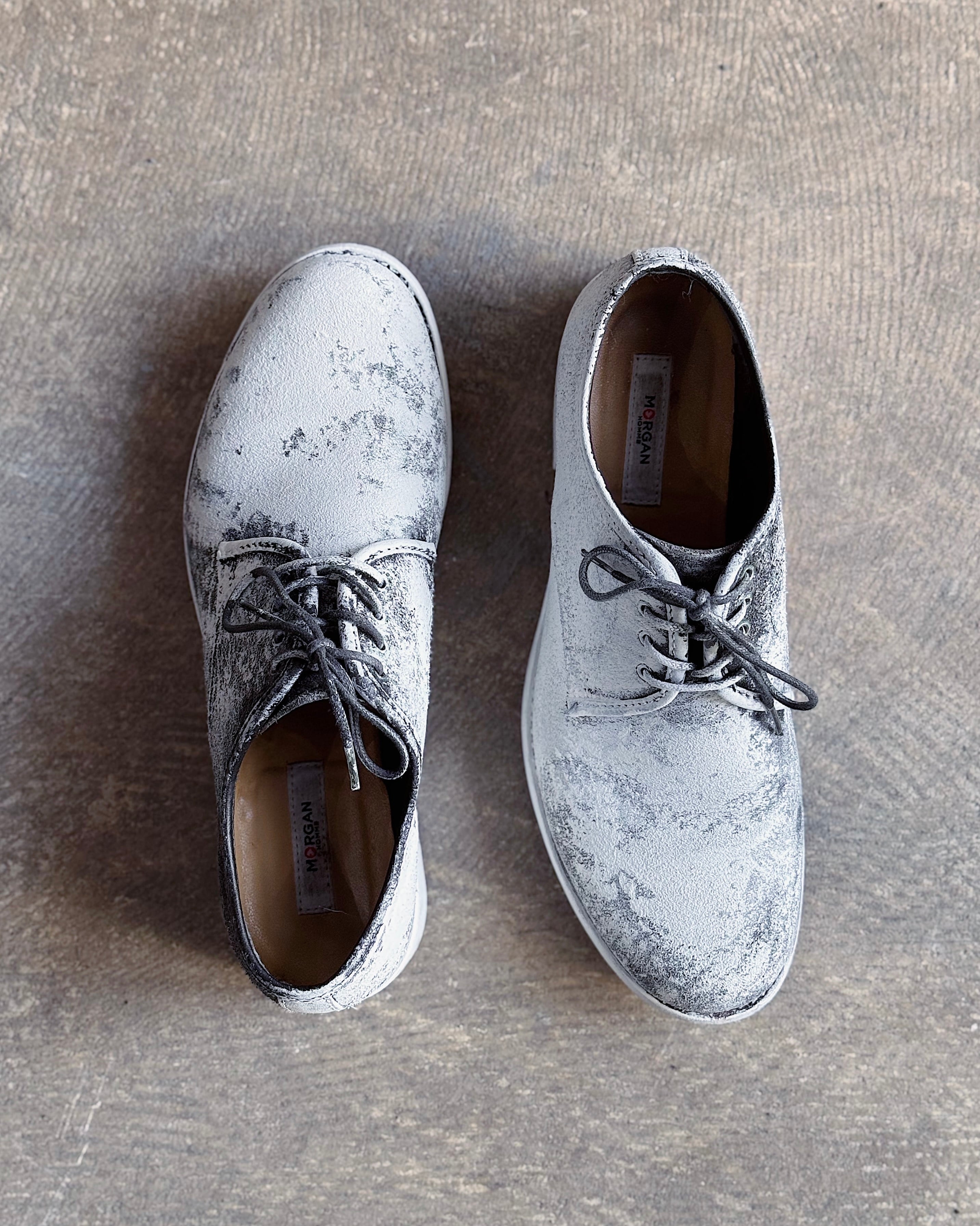 ムラのあるペイントは履き込むことで削れ、時間とともに表情が変化していく仕様となっております。