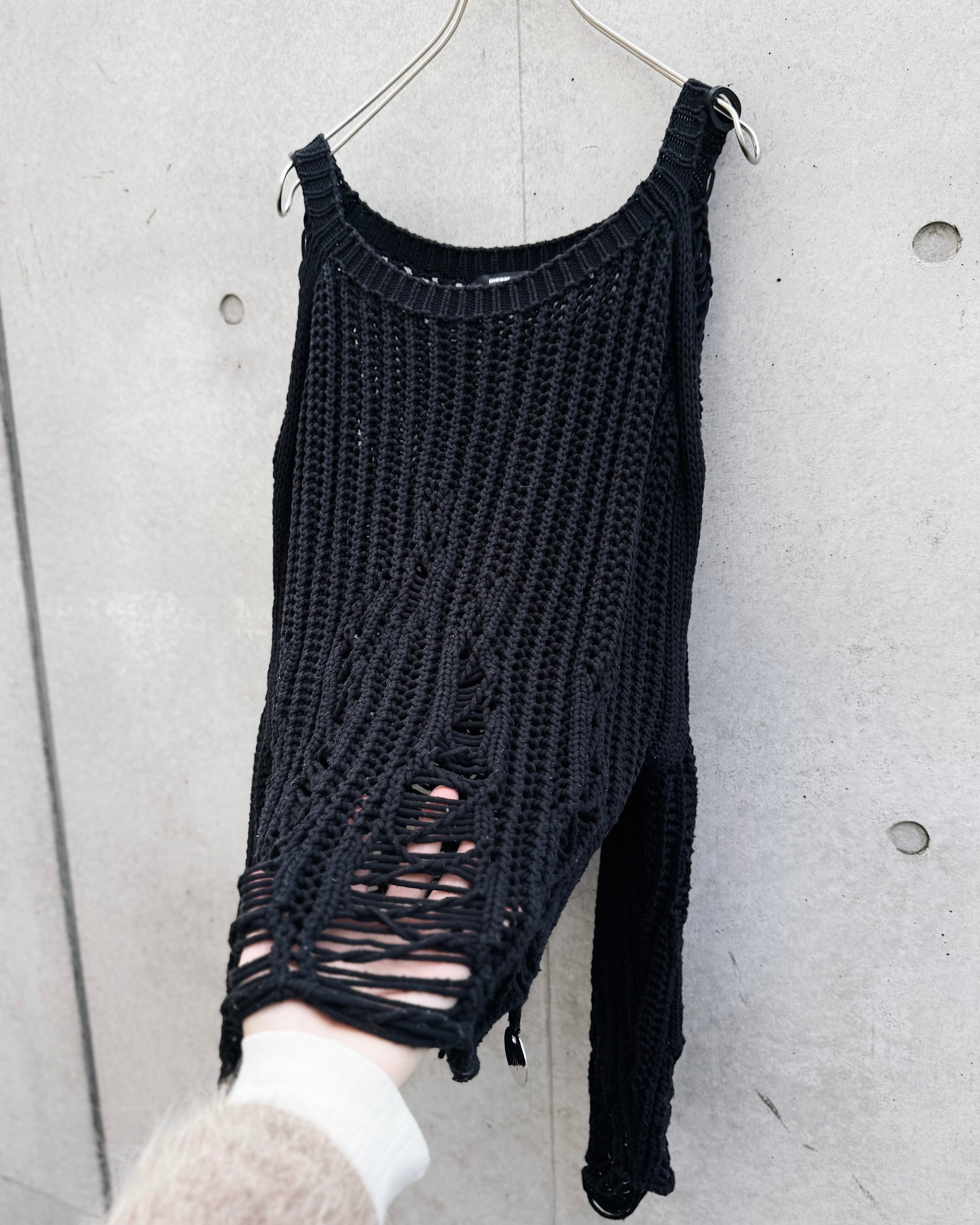 大胆に入るダメージと編みの抜け感が特徴的な一着。